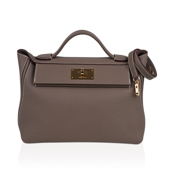 Guaranteed authentic Hermes 24/24 29 bag featured in neutral Etoupe.