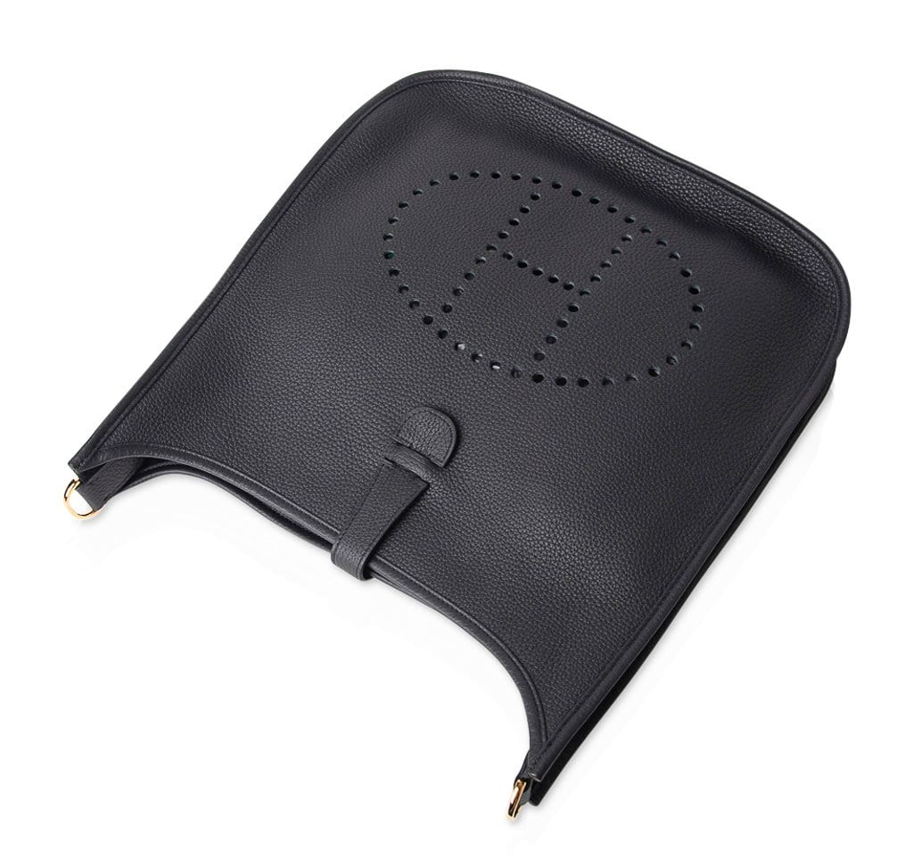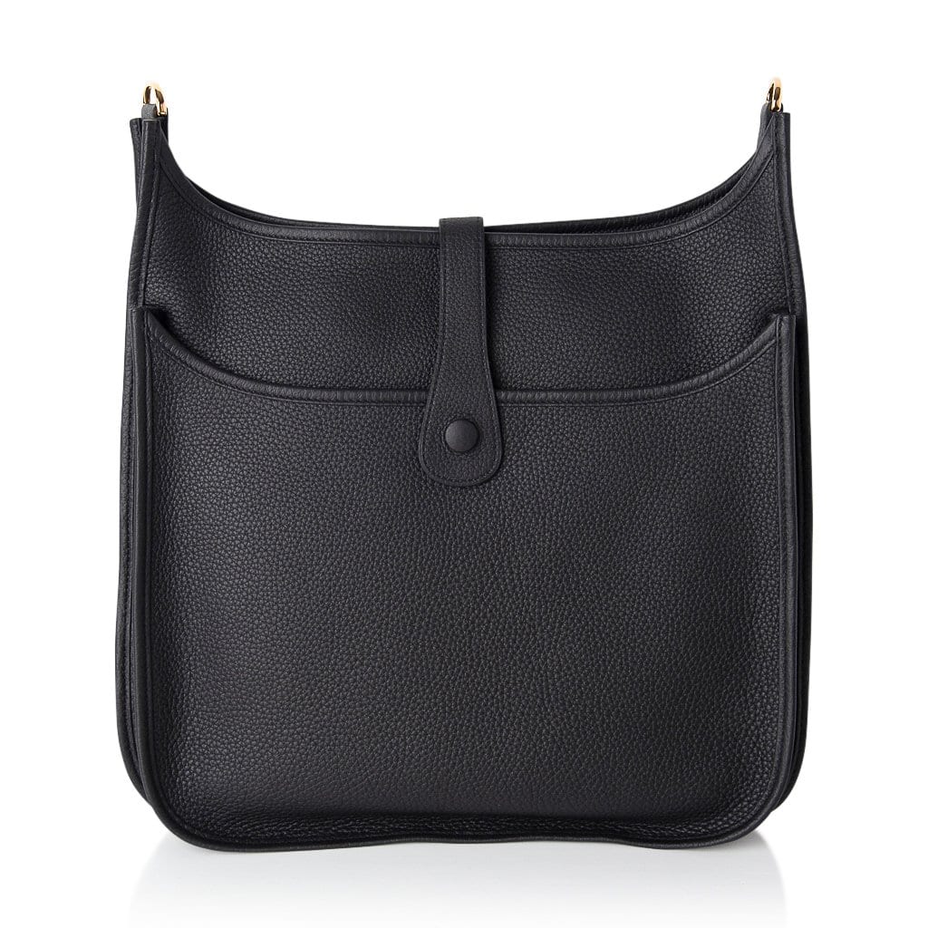 Guaranteed authentic Hermes Evelyne GM featured in Black clemence leather.