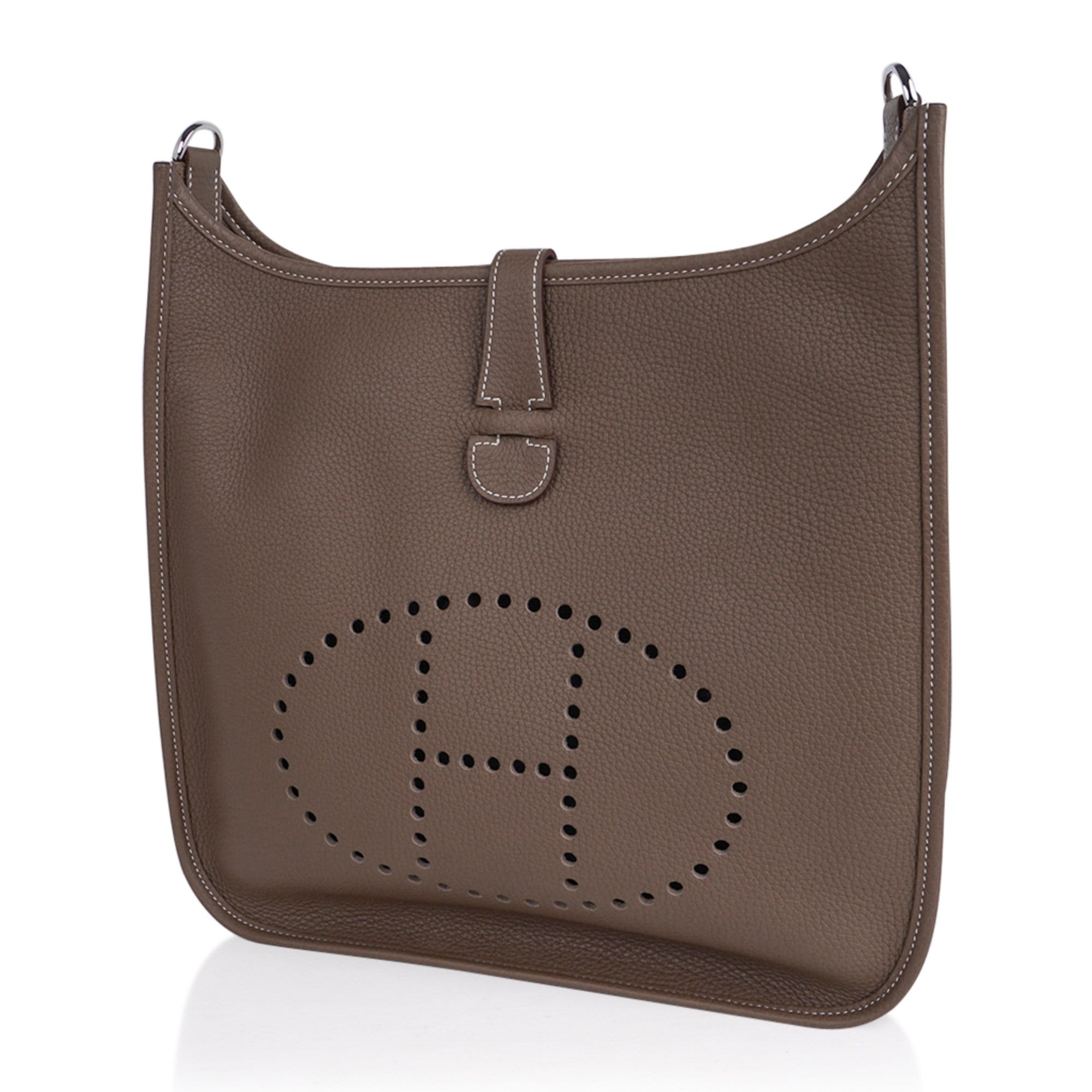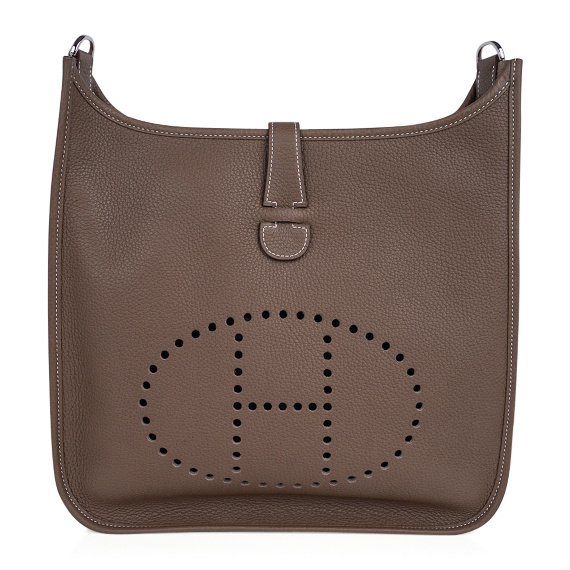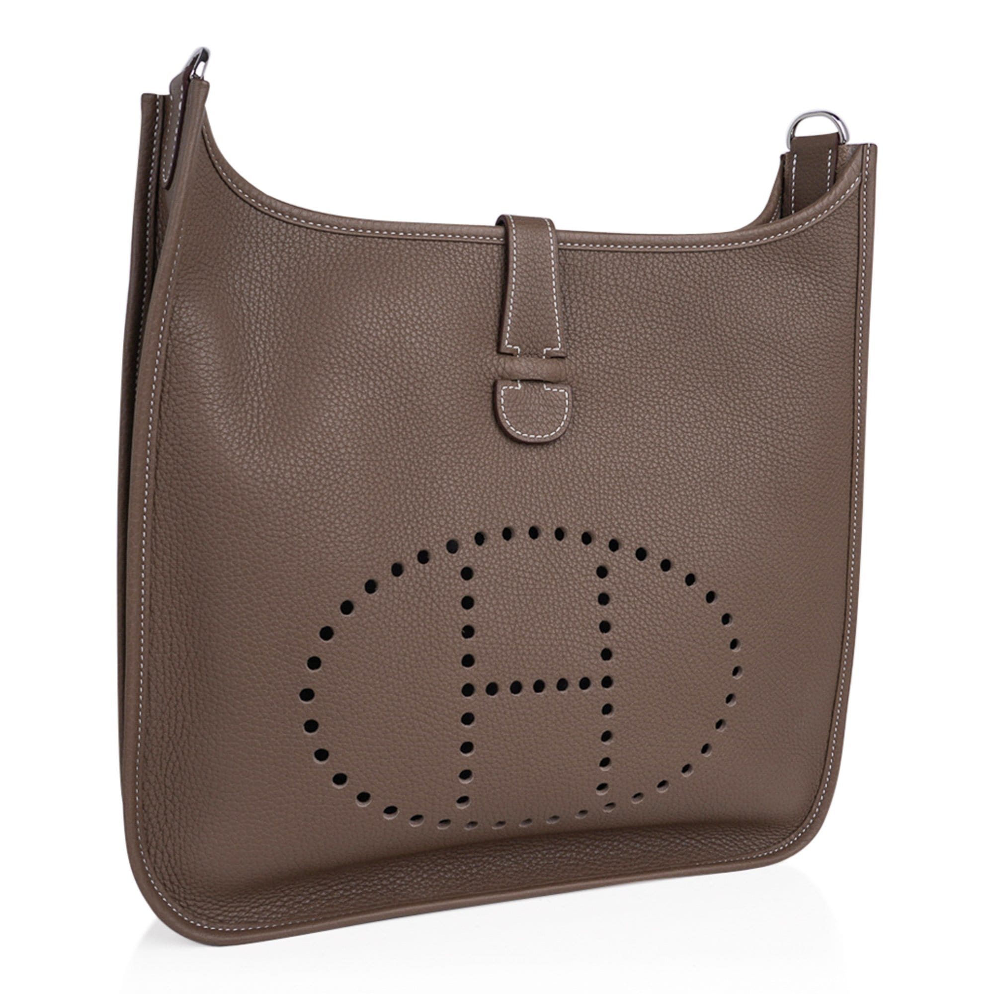 Guaranteed authentic Hermes Evelyne GM featured in neutral Etoupe.