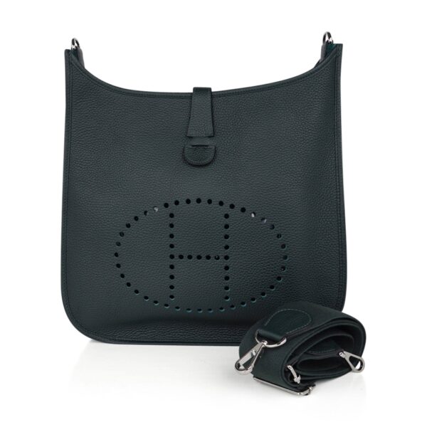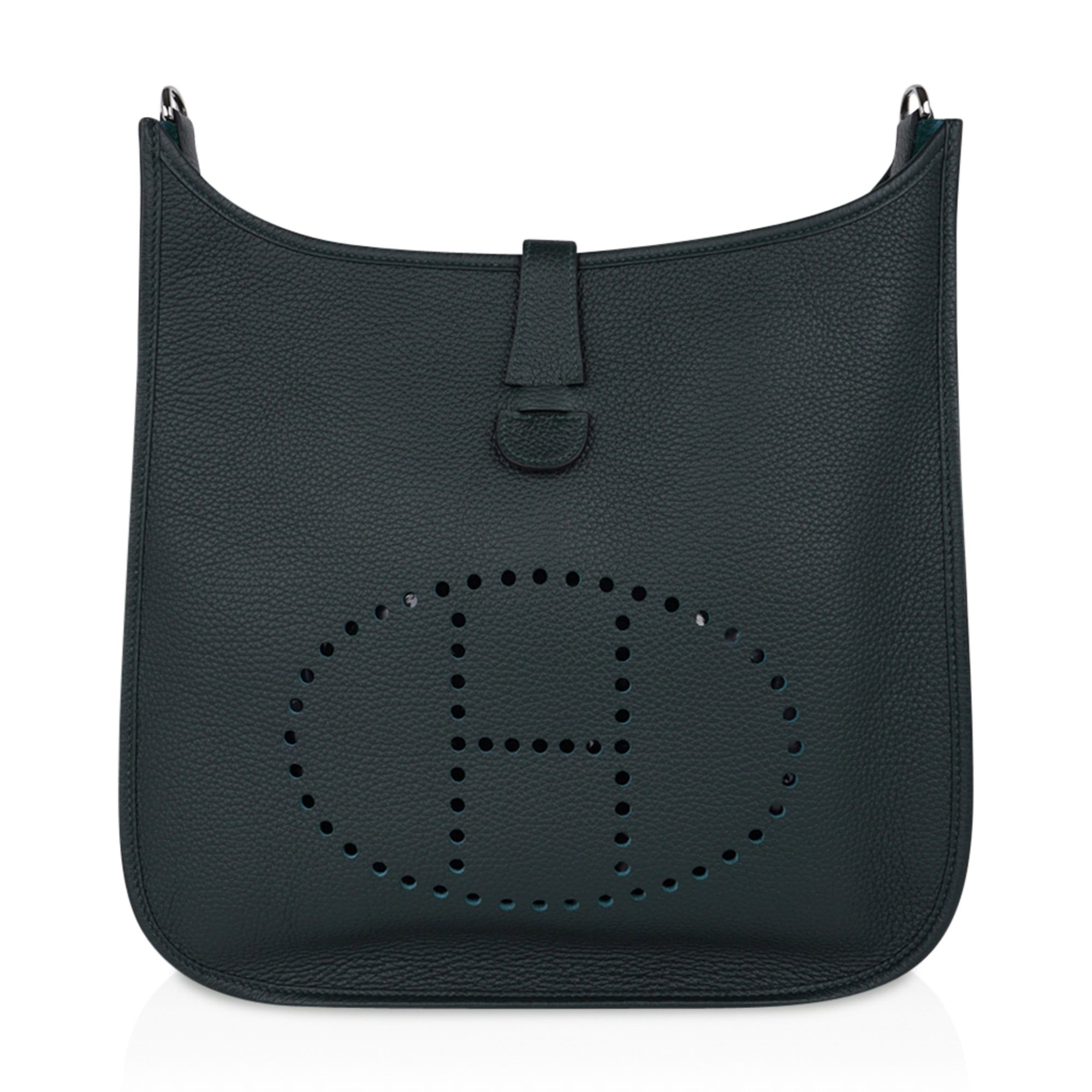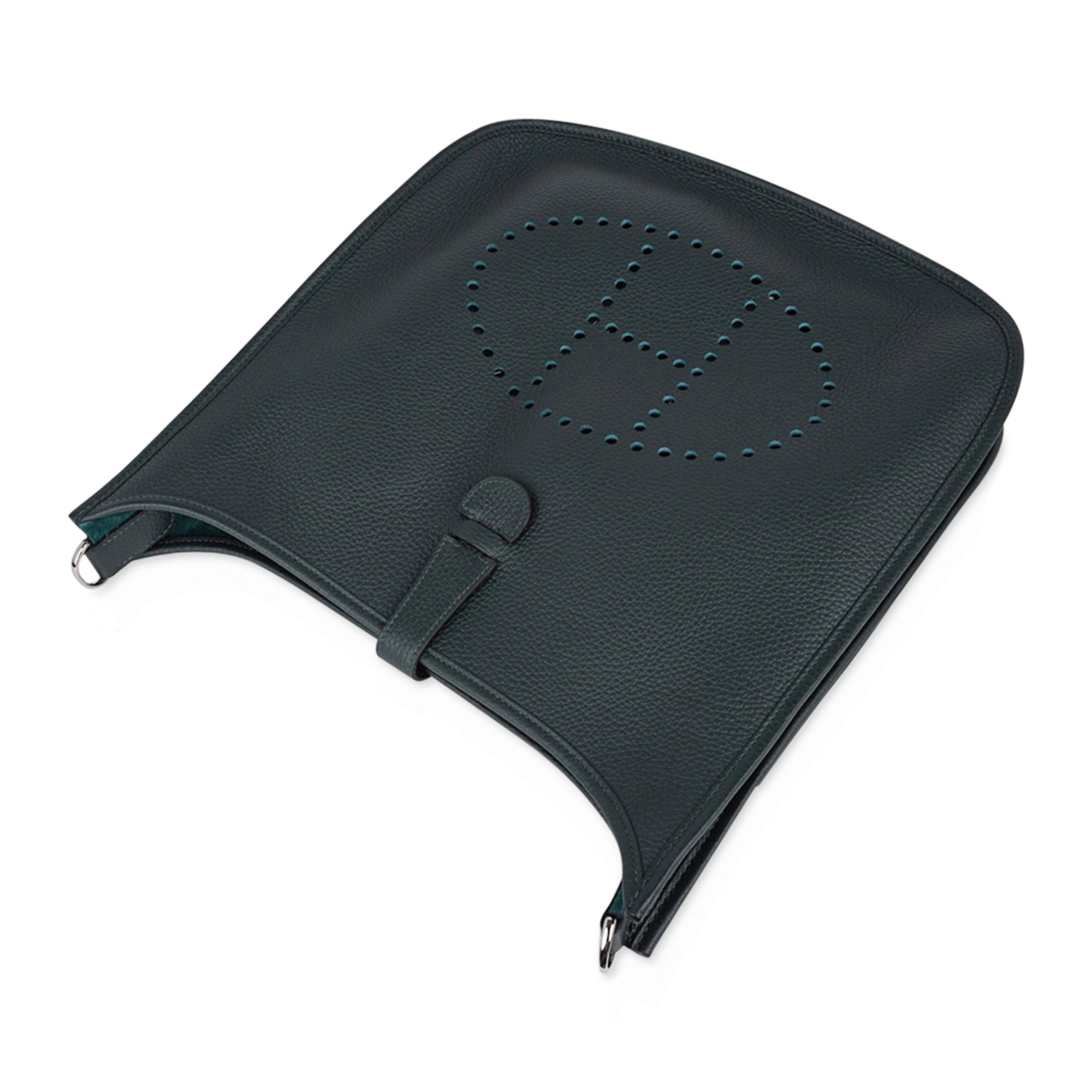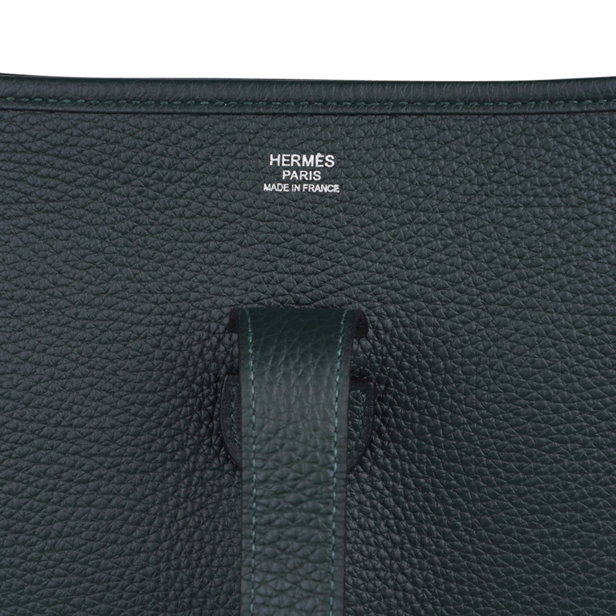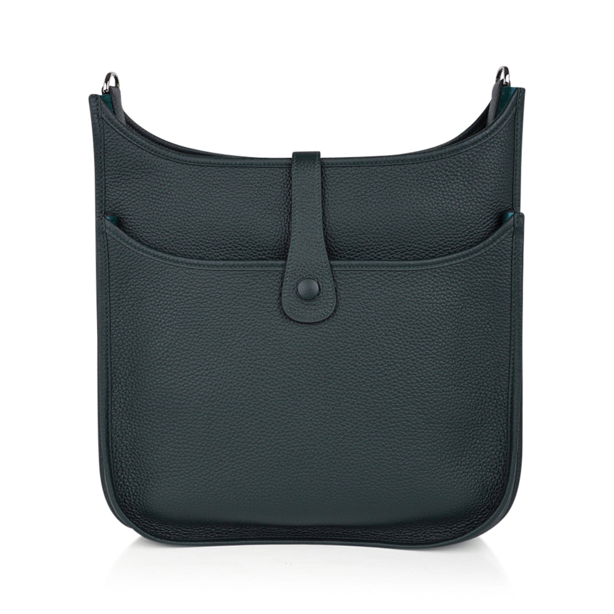 Guaranteed authentic Hermes Evelyne GM featured in rich, saturated Vert Fonce.