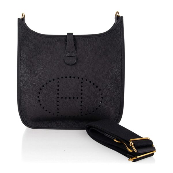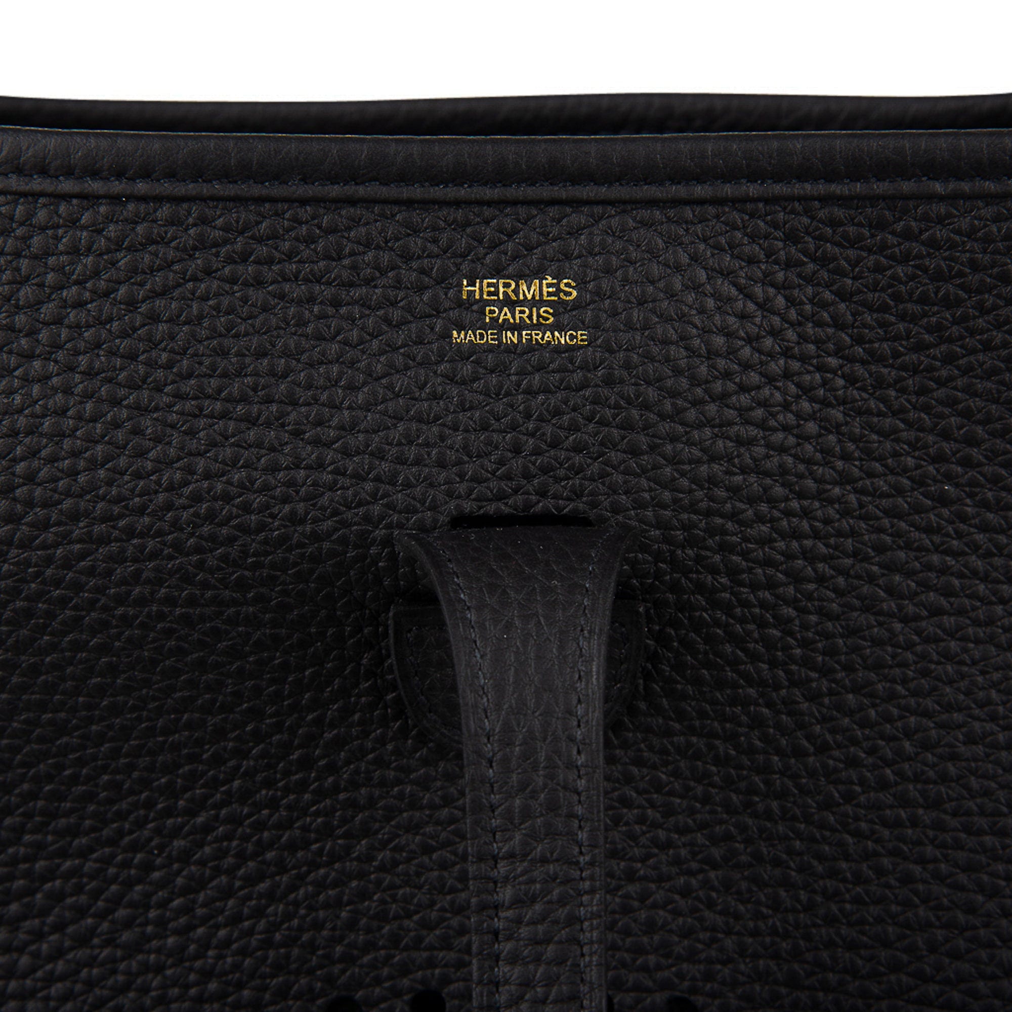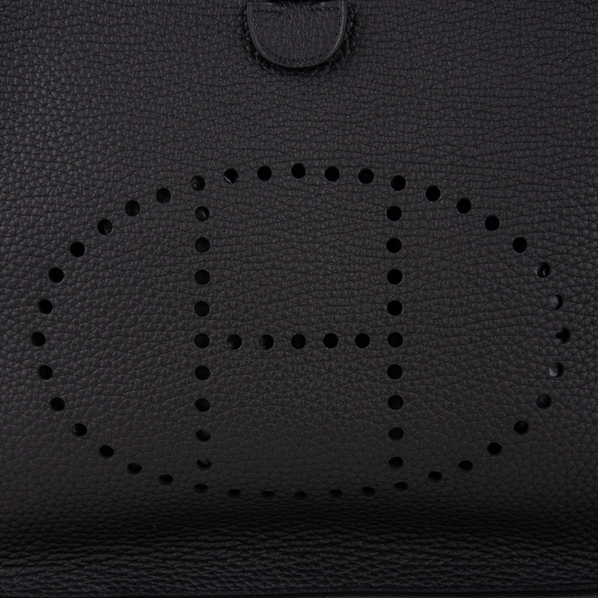 Guaranteed authentic Hermes Evelyne PM featured in Black clemence leather.