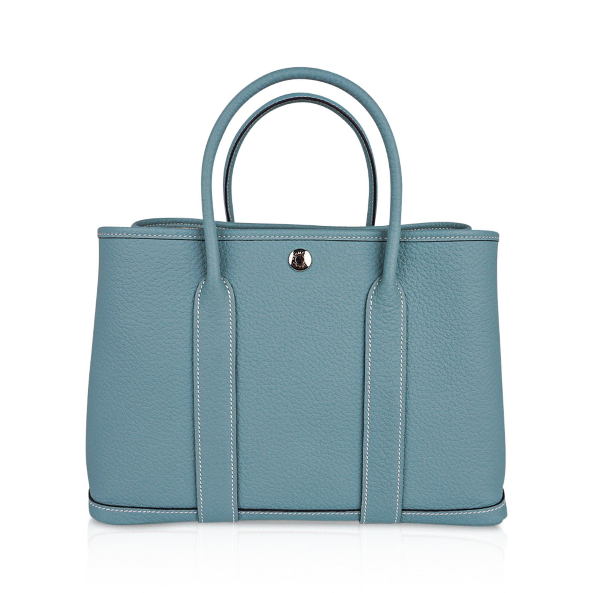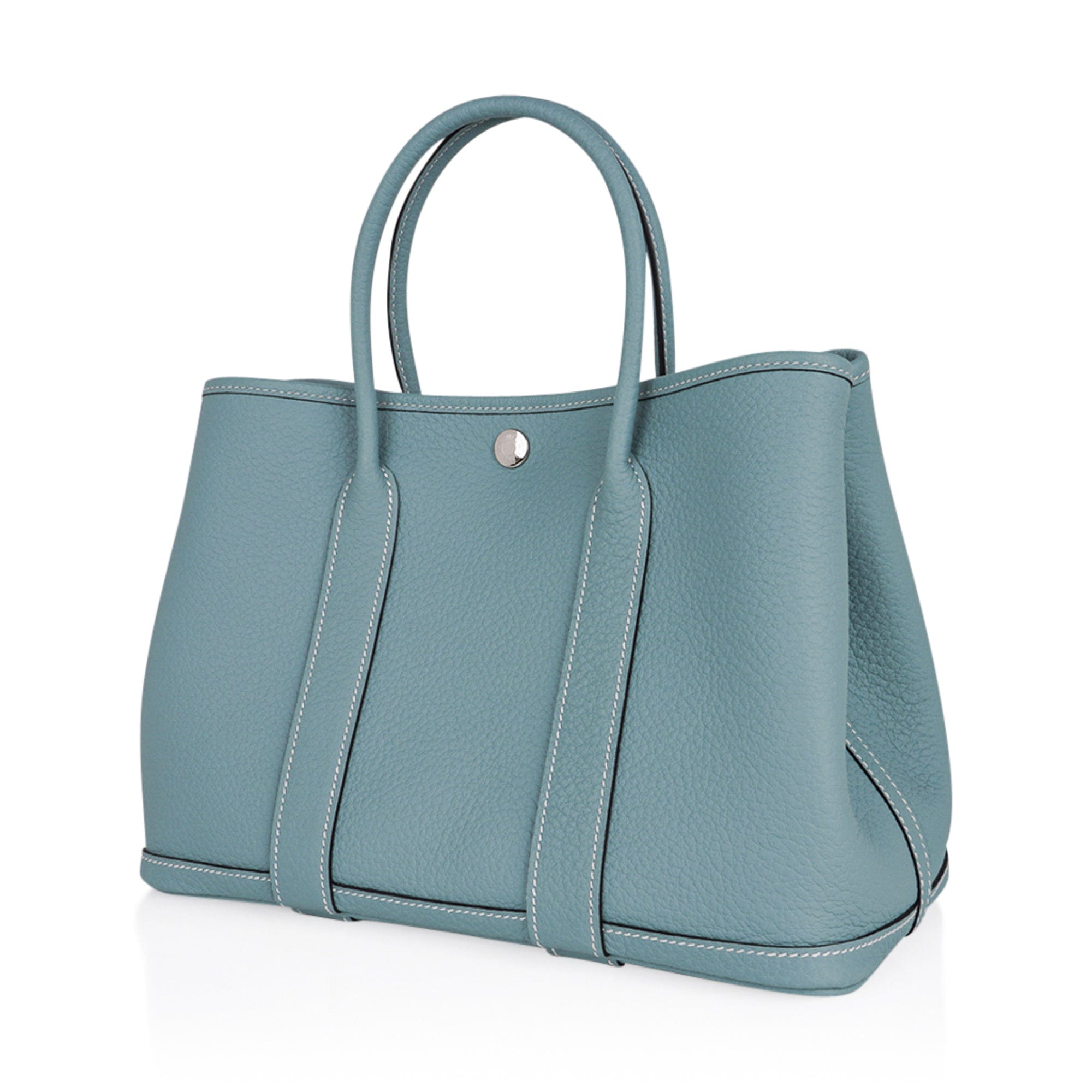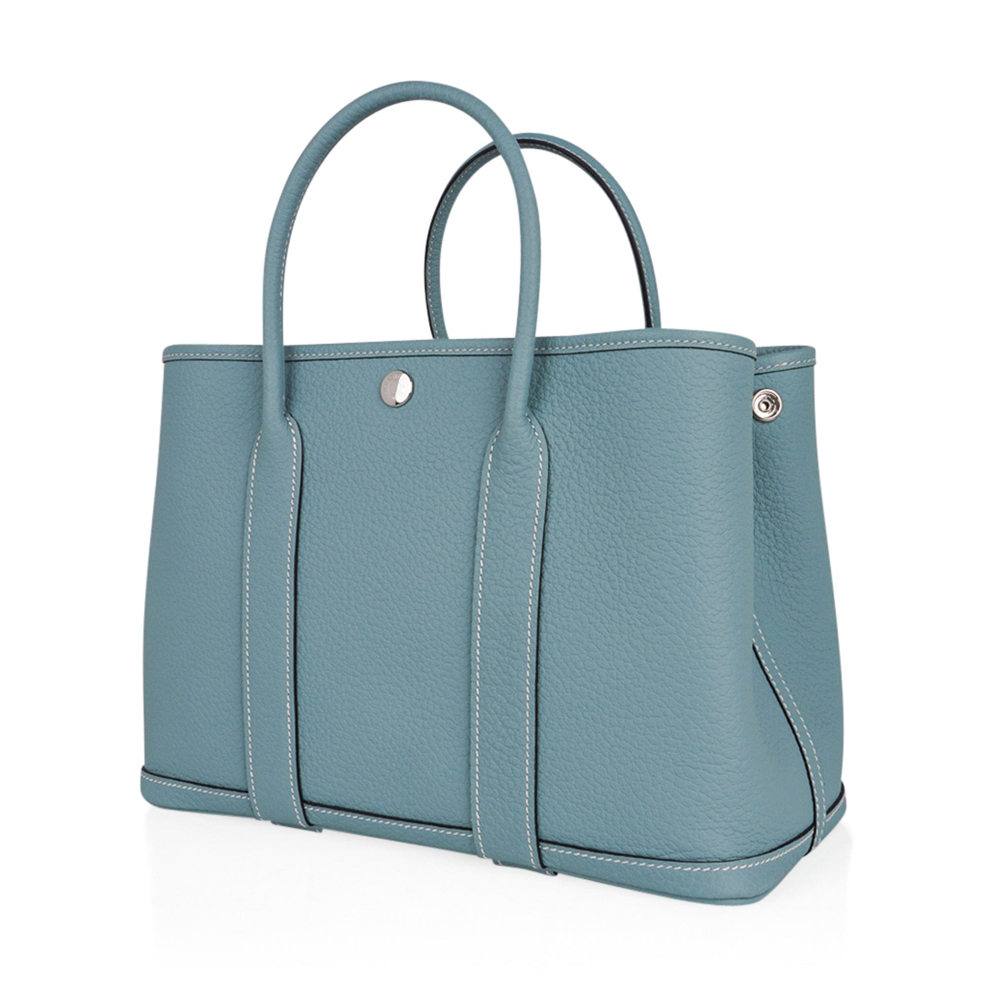 Guaranteed authentic Hermes Garden Party 30 bag featured in Ciel Vache Country Leather.