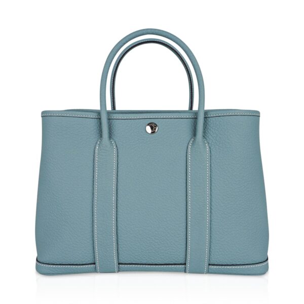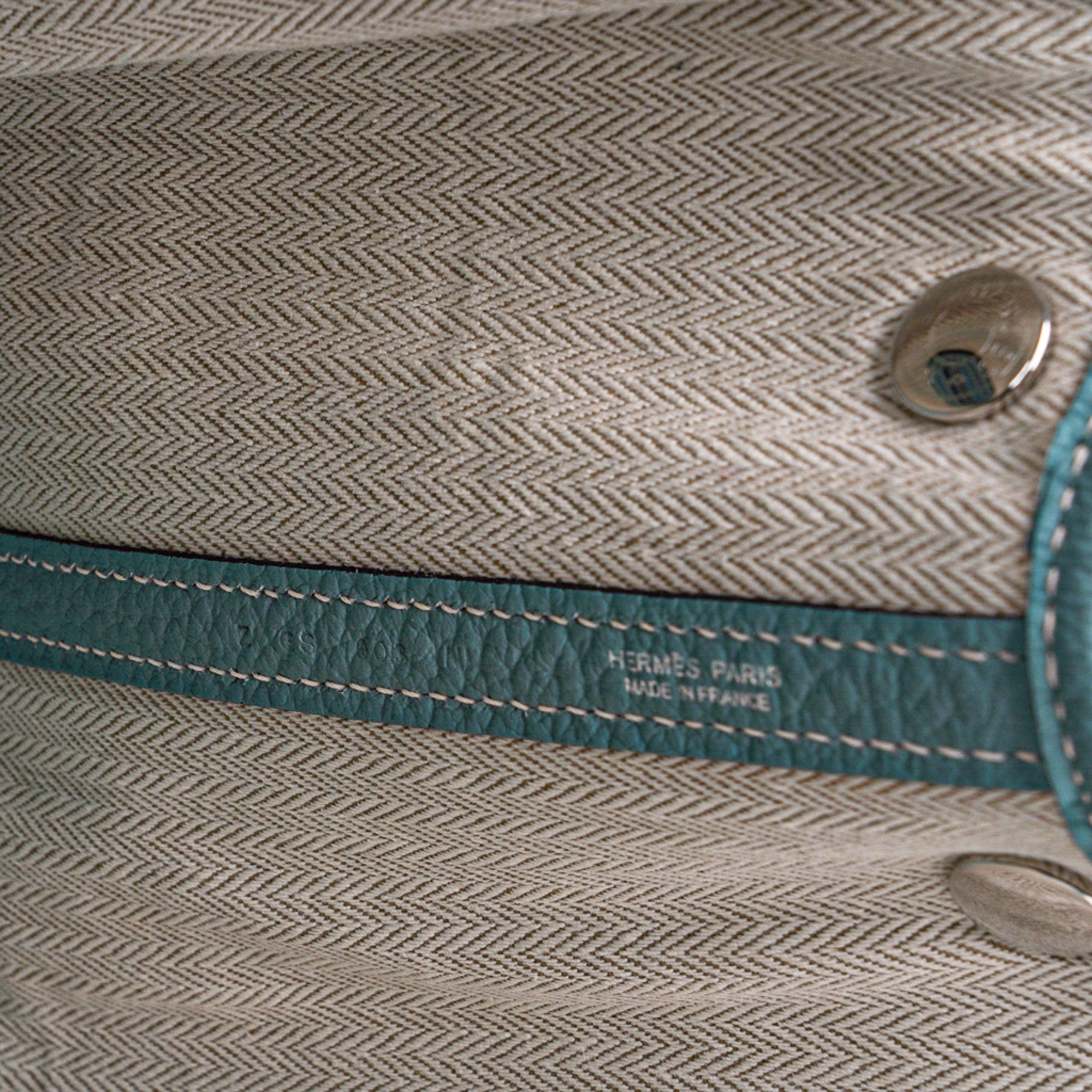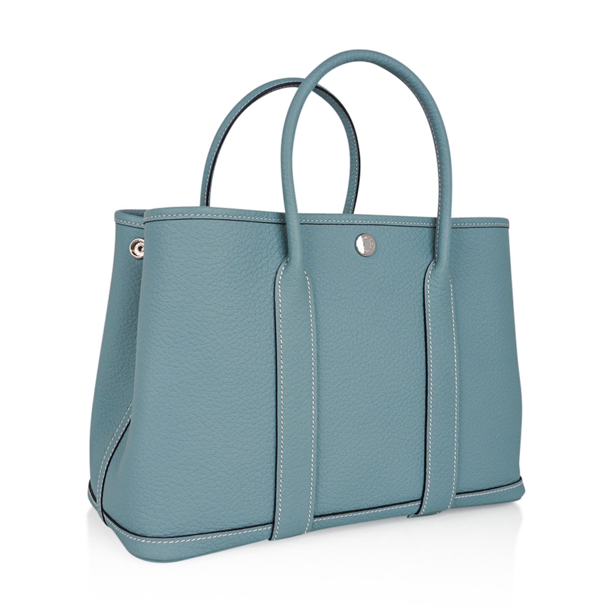 Guaranteed authentic Hermes Garden Party 30 bag featured in Ciel Vache Country Leather.