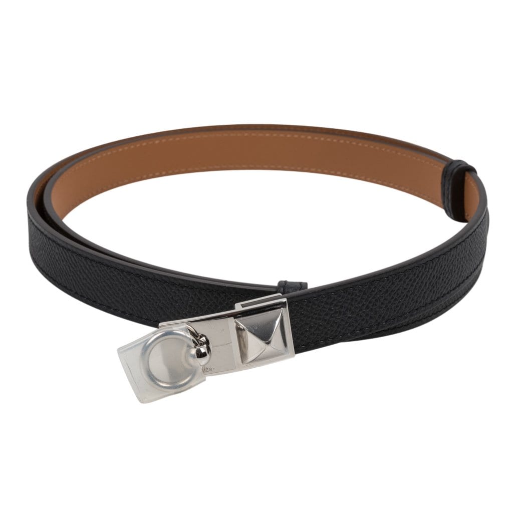 Guaranteed authentic Hermes adjustable Rivale 18 belt features black epsom leather.
