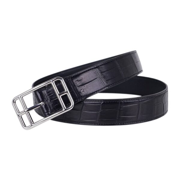 Hermes Cape Cod 32 mm belt featured in Black Matte Porosus Crocodile.