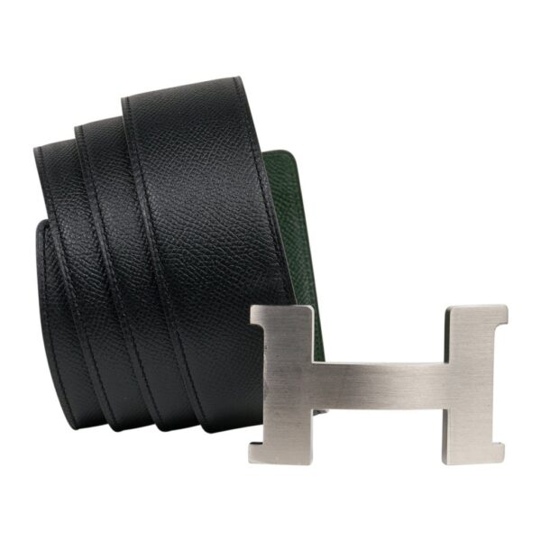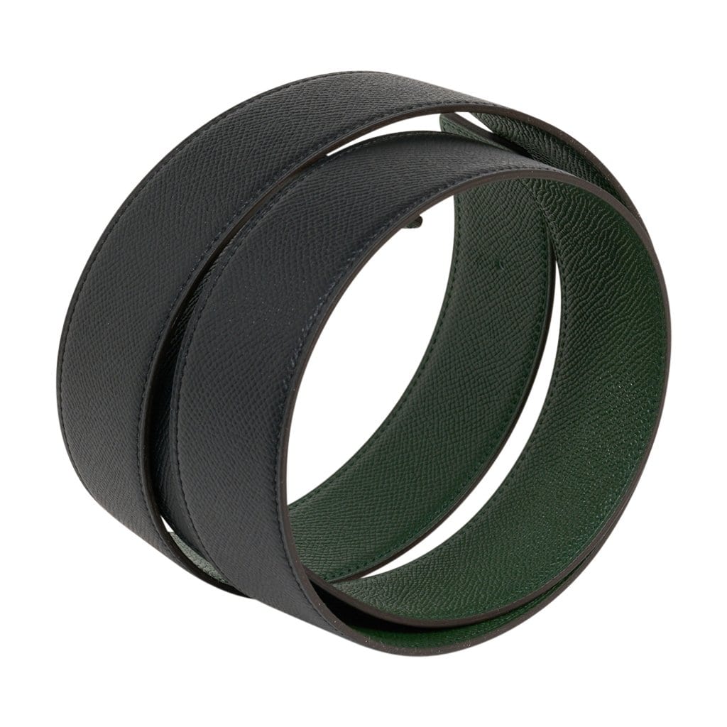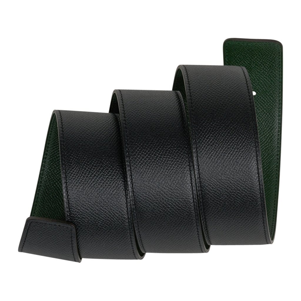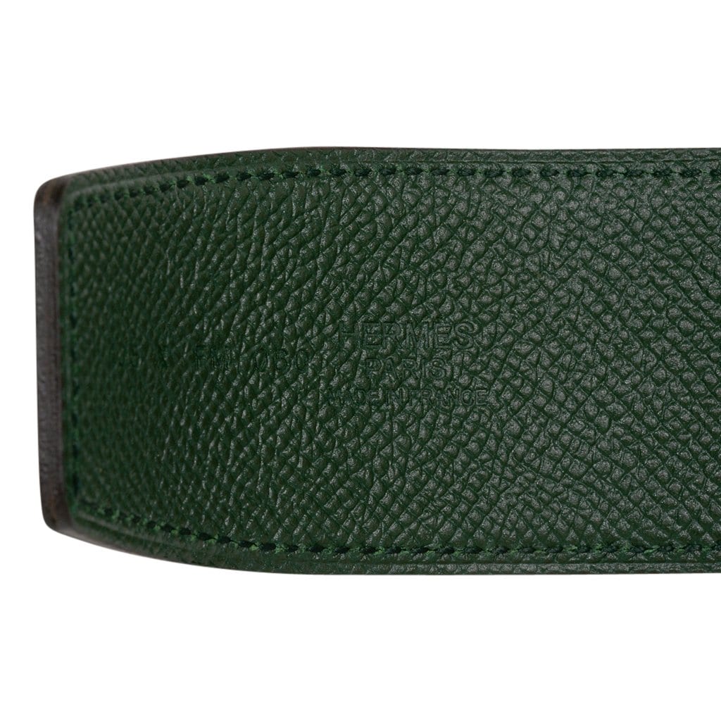 Guaranteed authentic Hermes belt featured in Constance 42mm reversible Black and Vert Anglais in Epsom leather.