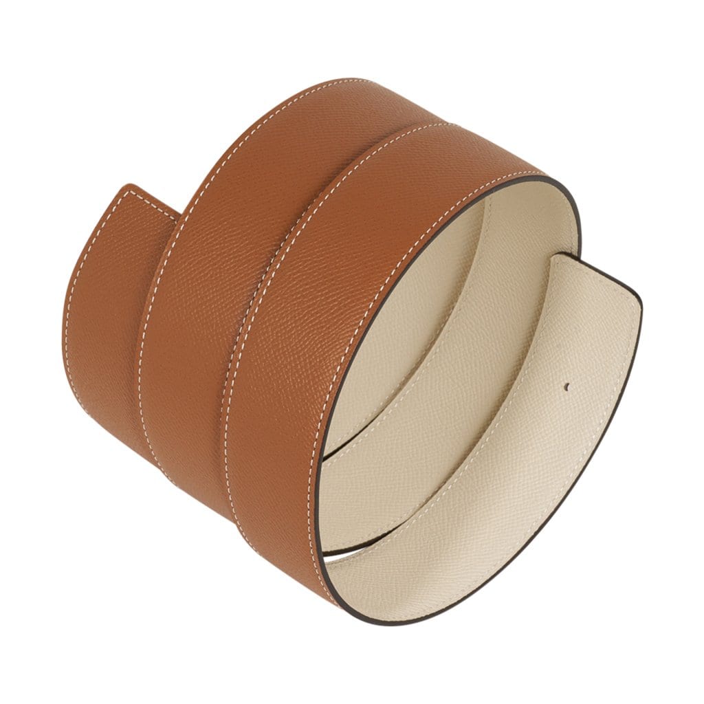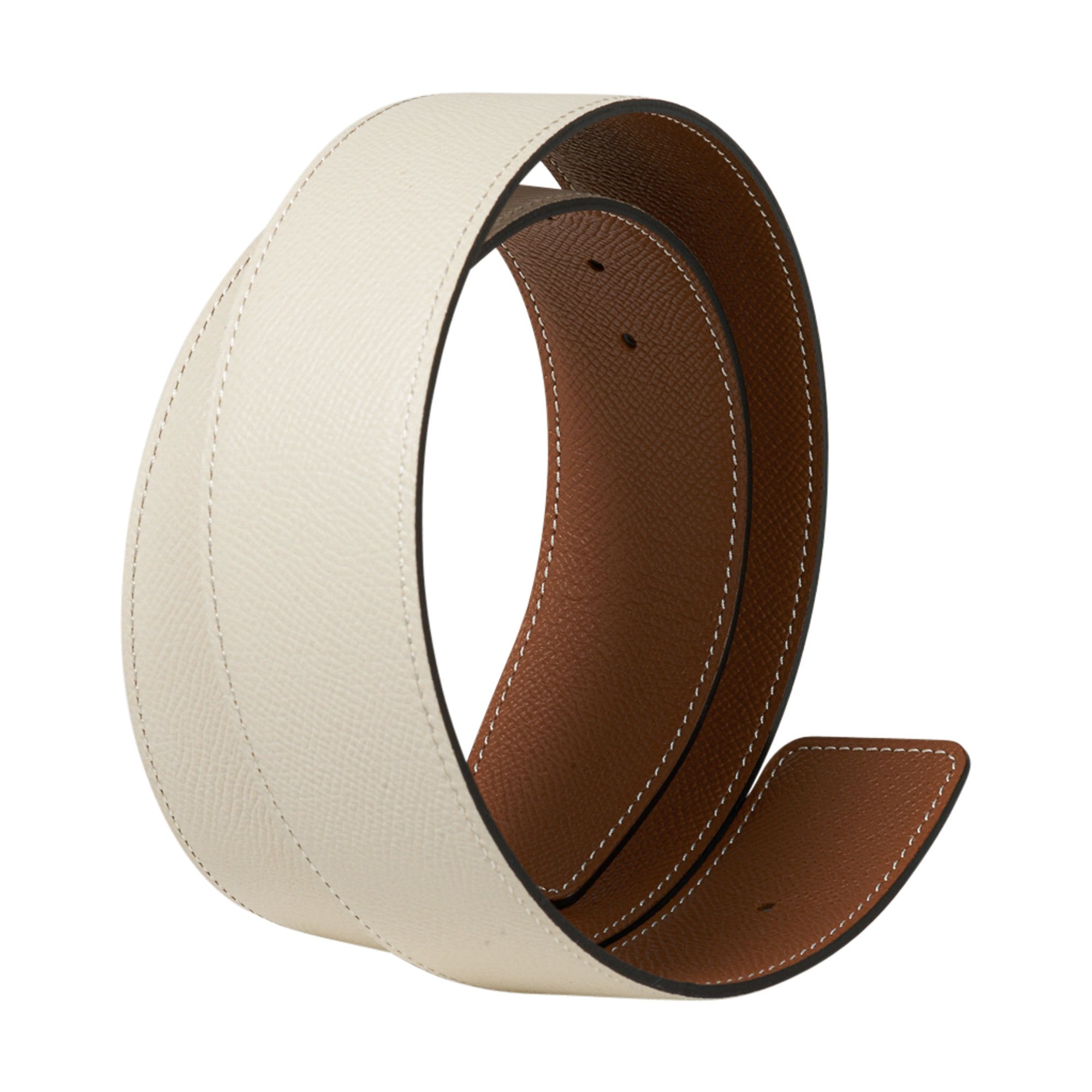 Guaranteed authentic Hermes Constance 42 mm belt features reversible Gold to Craie Epsom Leather.
