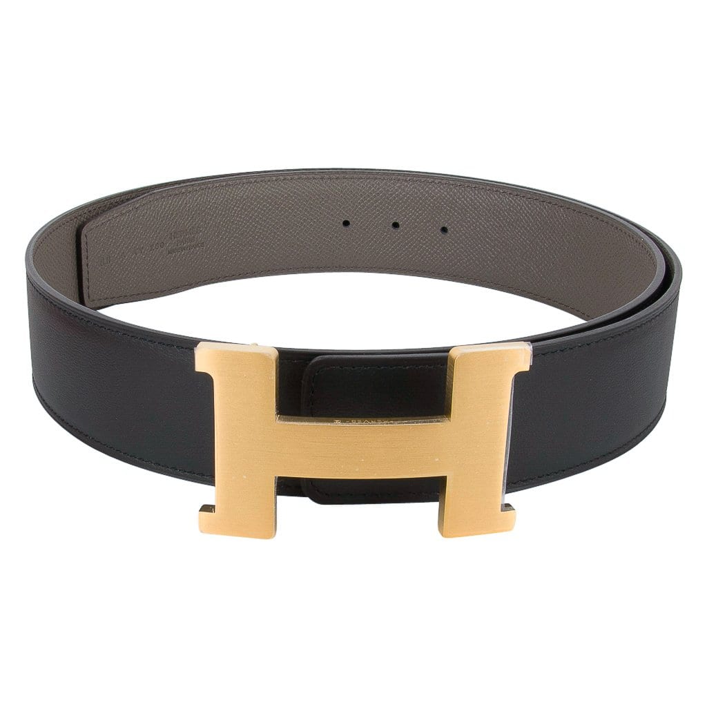 Guaranteed authentic Hermes Constance 42 mm belt featured in reversible Etain Togo to Black Box leathers.