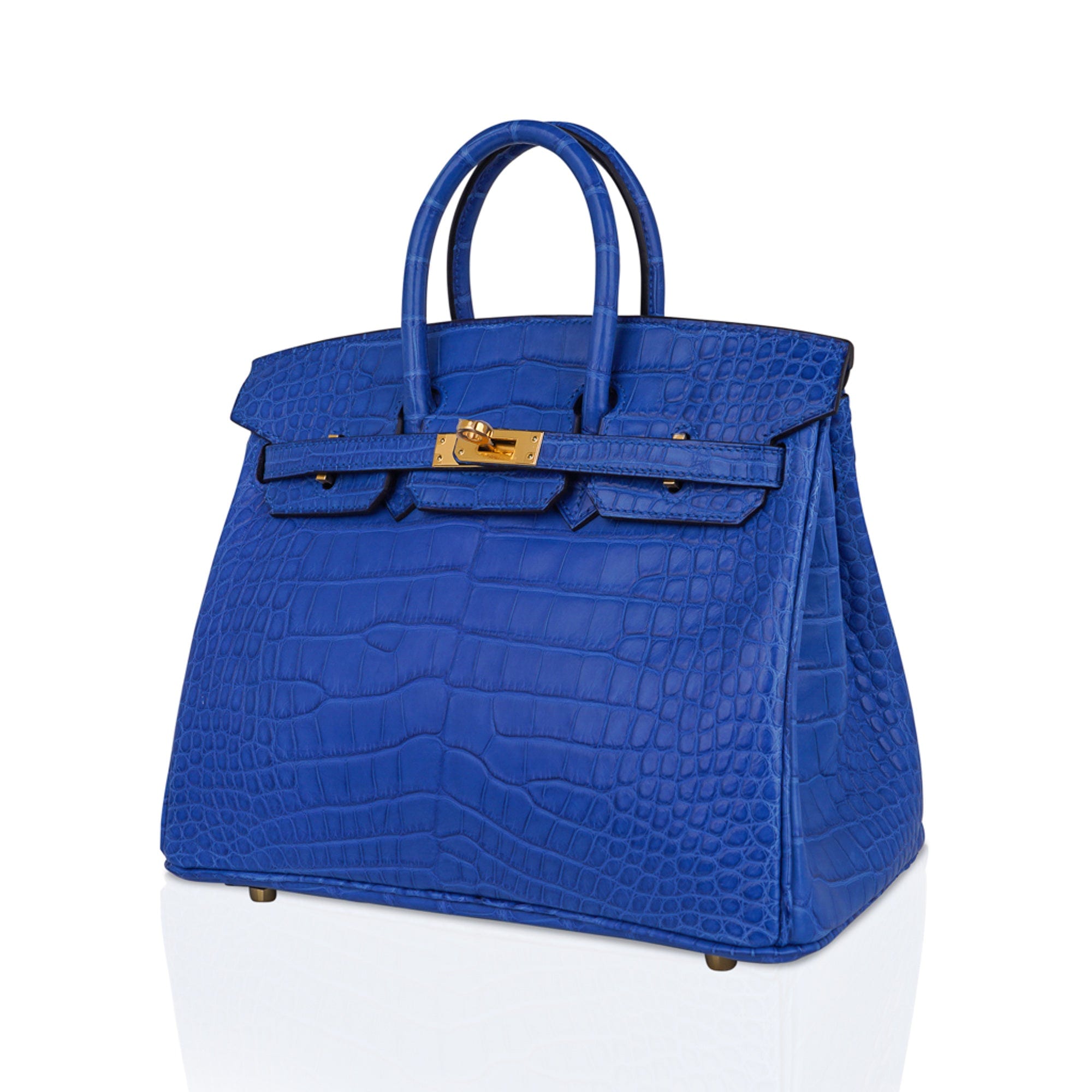 Hermes Birkin 25 Bag Blue Zellige Matte Alligator Gold Hardware
