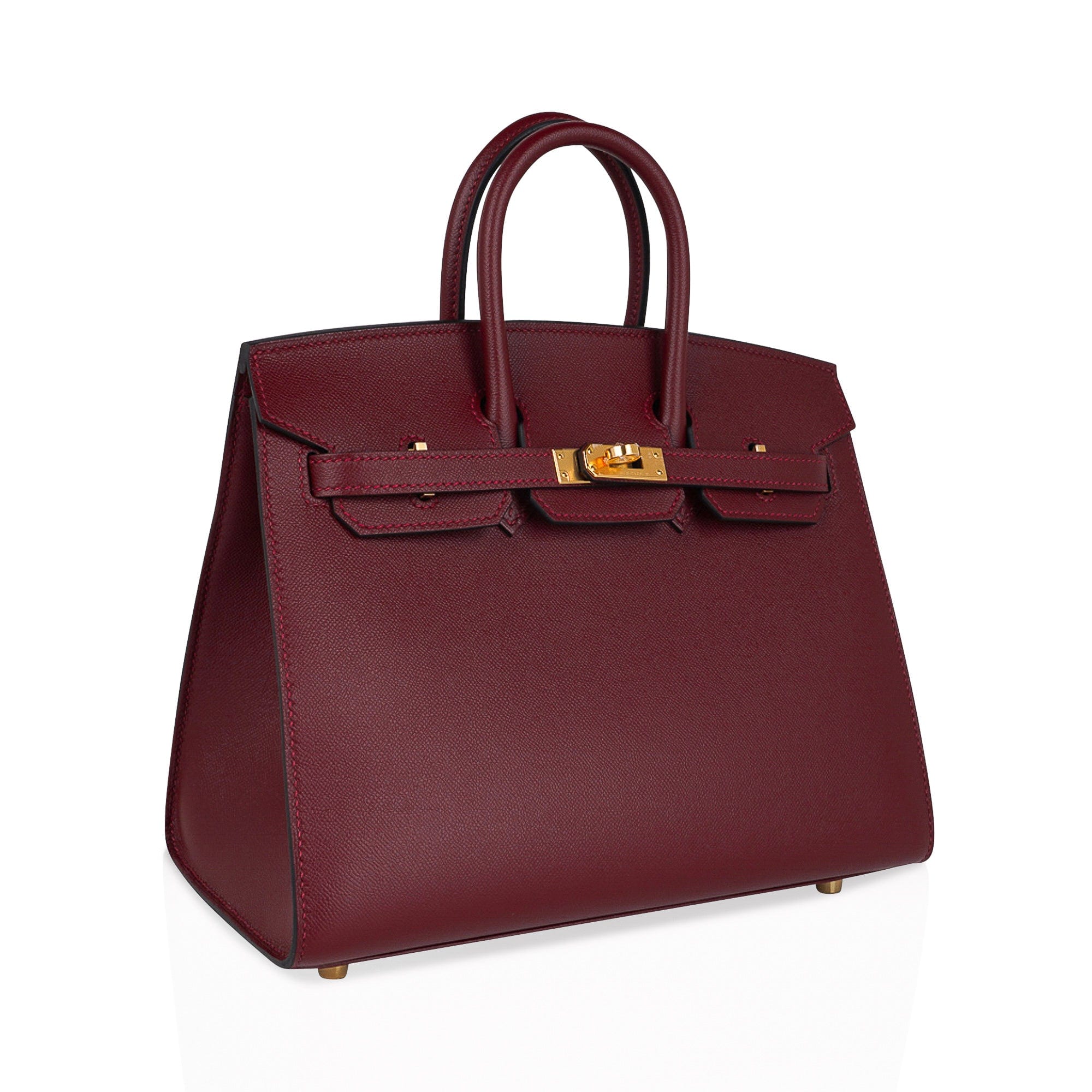 Guaranteed authentic Hermes Birkin Sellier 25 bag featured in rich jewel toned Rouge H.