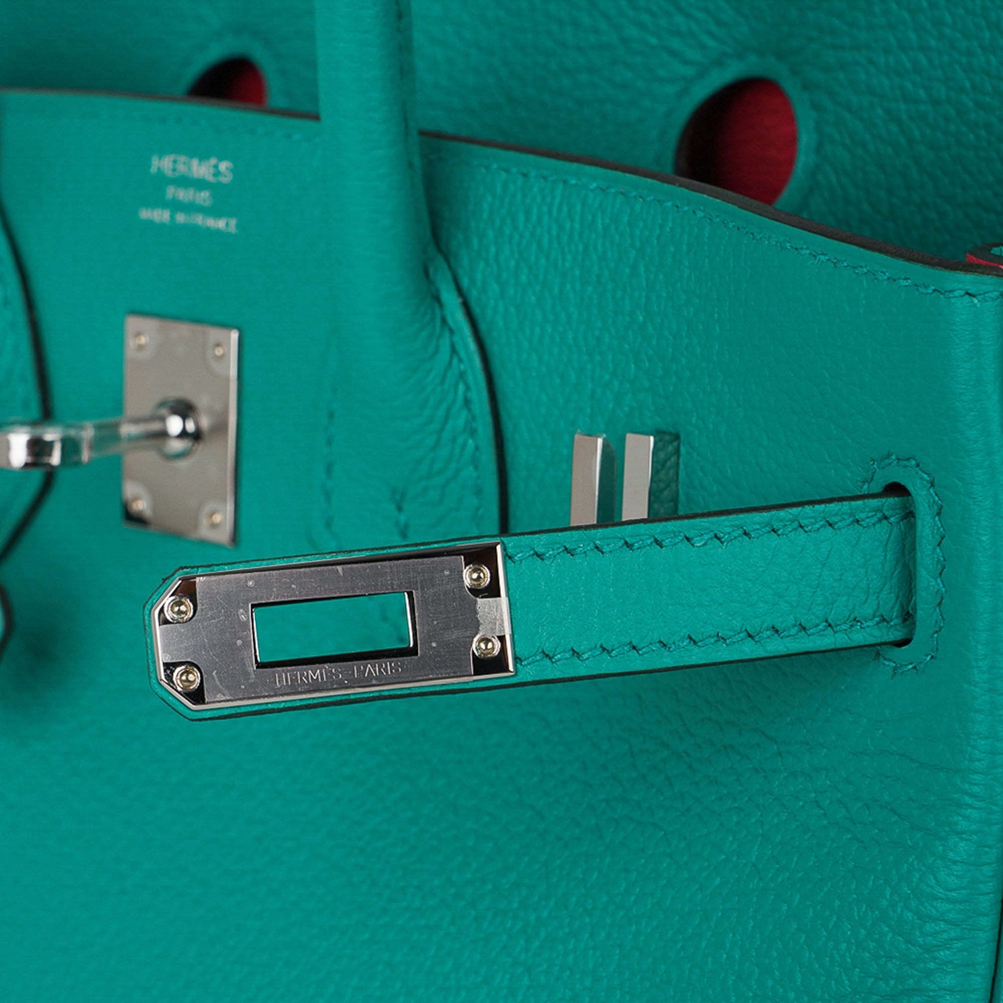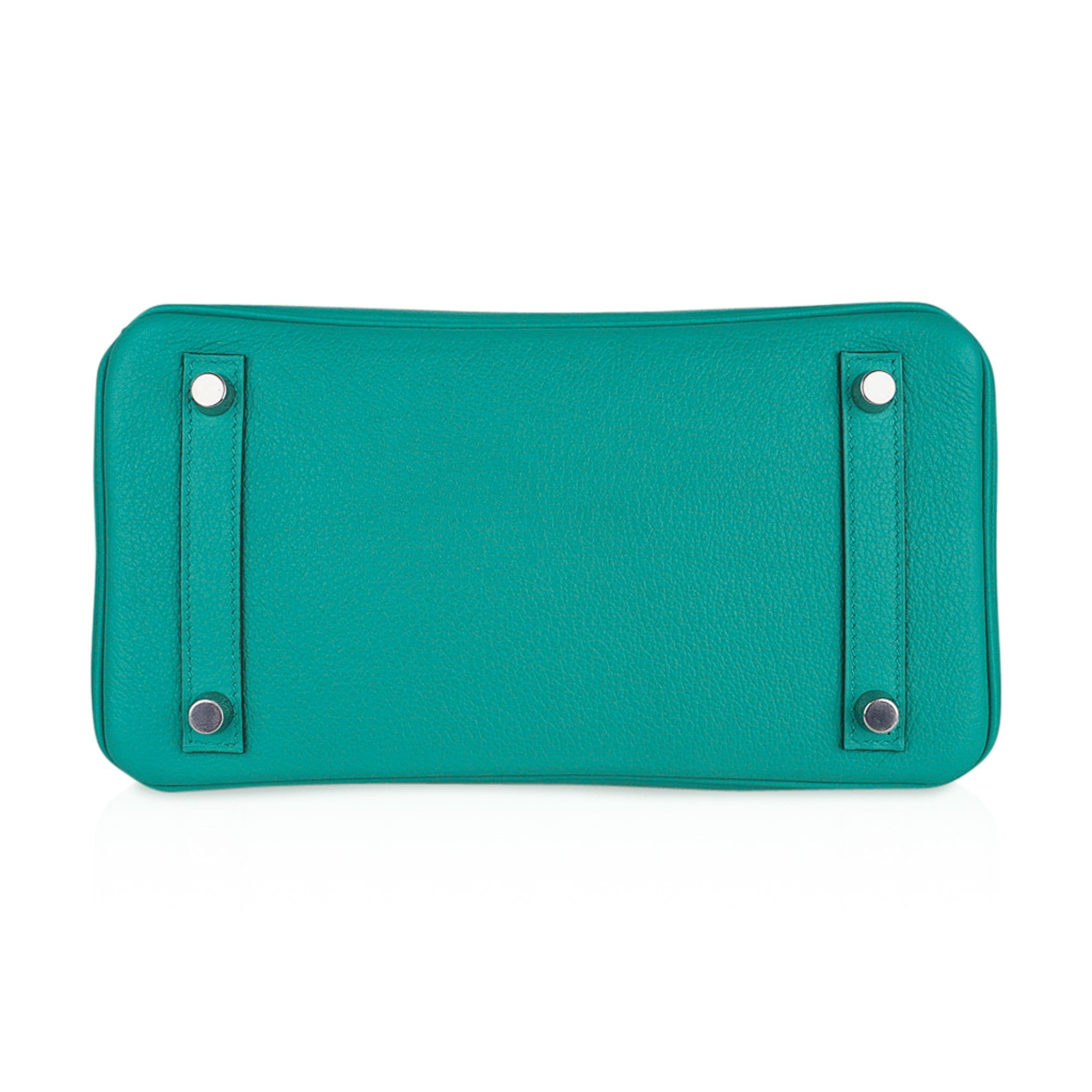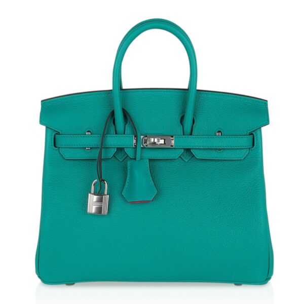 Guaranteed authentic Hermes Birkin Verso 25 bag featured in Vert Verone with Rose Lipstick interior.