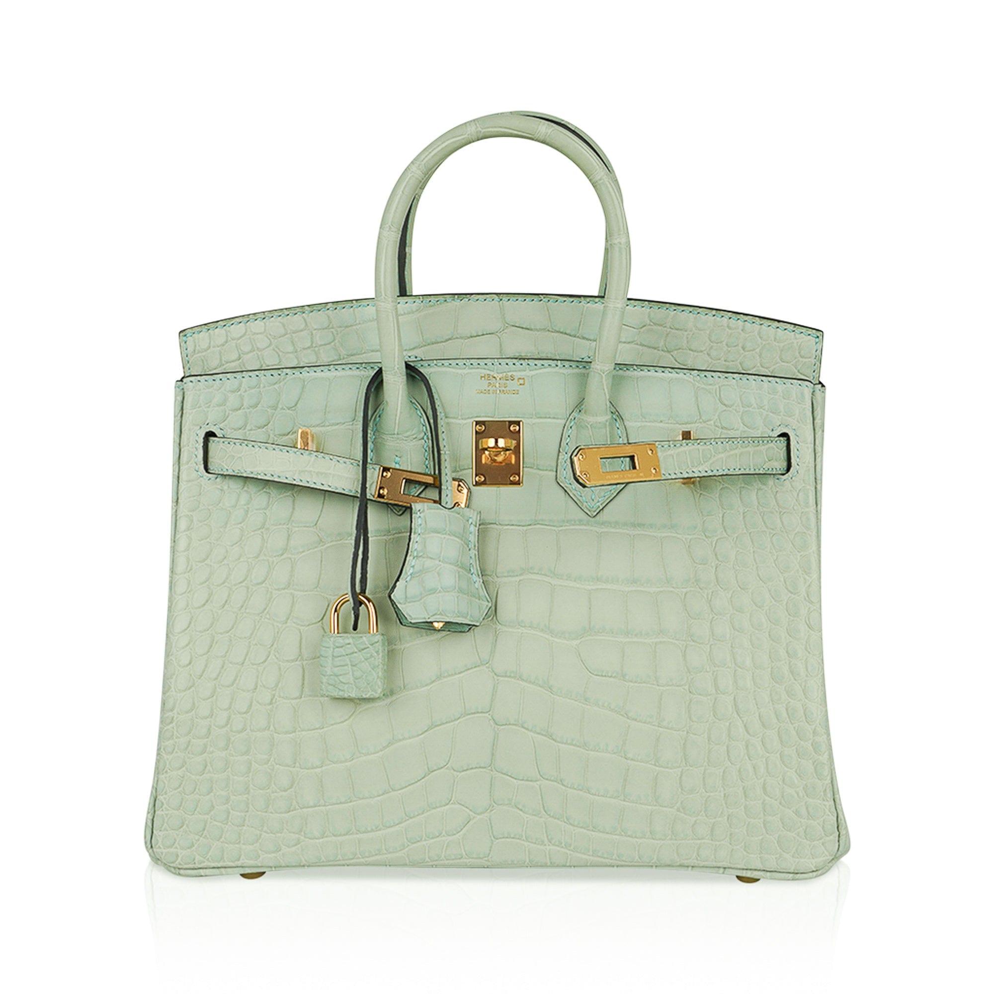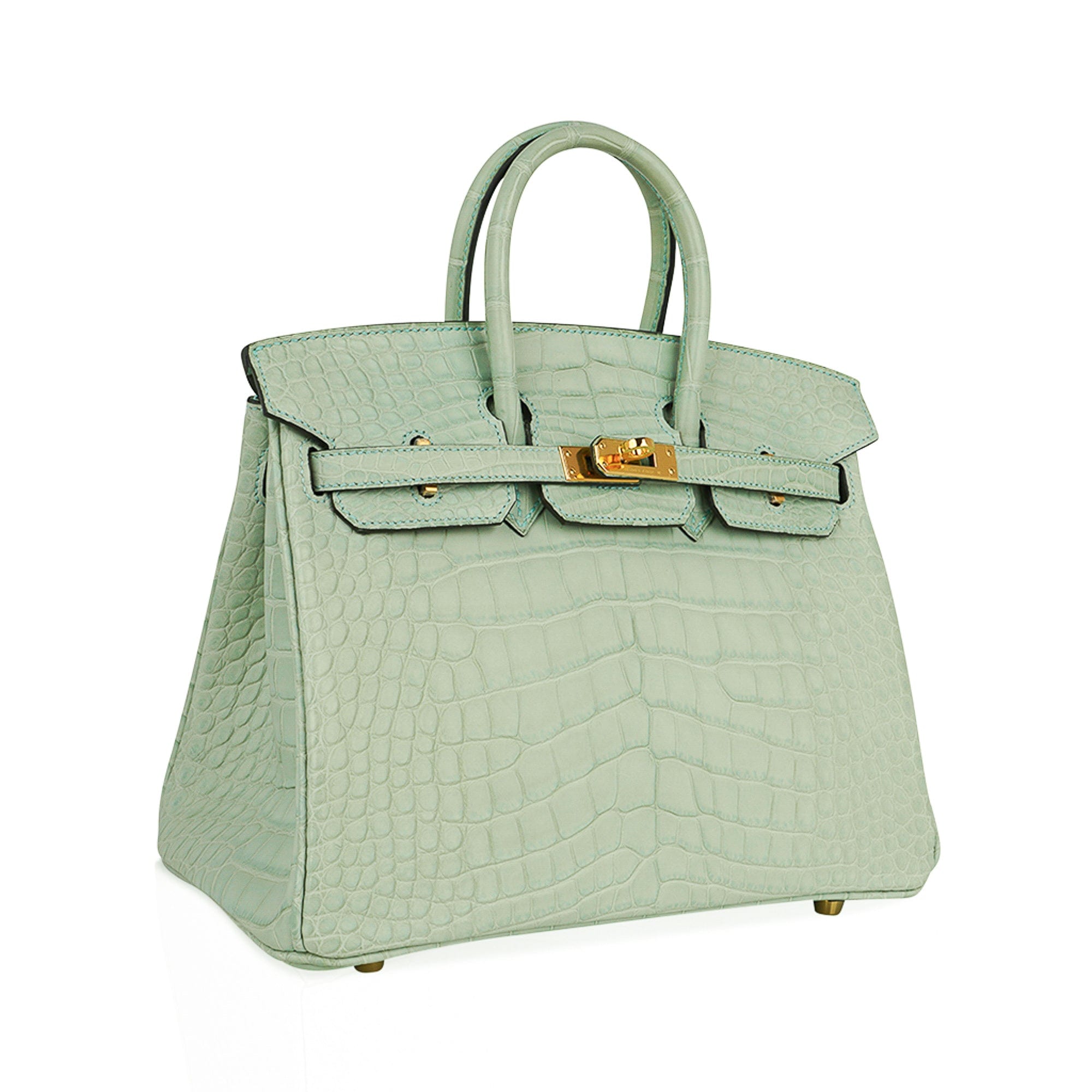 Hermes Birkin 25 bag limited edition Vert D’Eau matte alligator is nothing less than translucent Caribbean water.