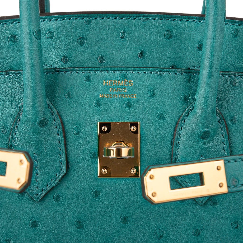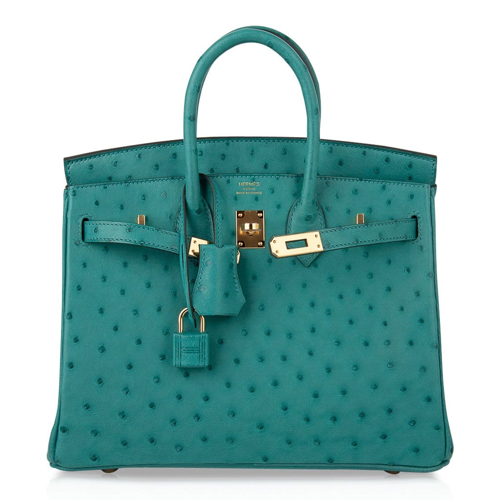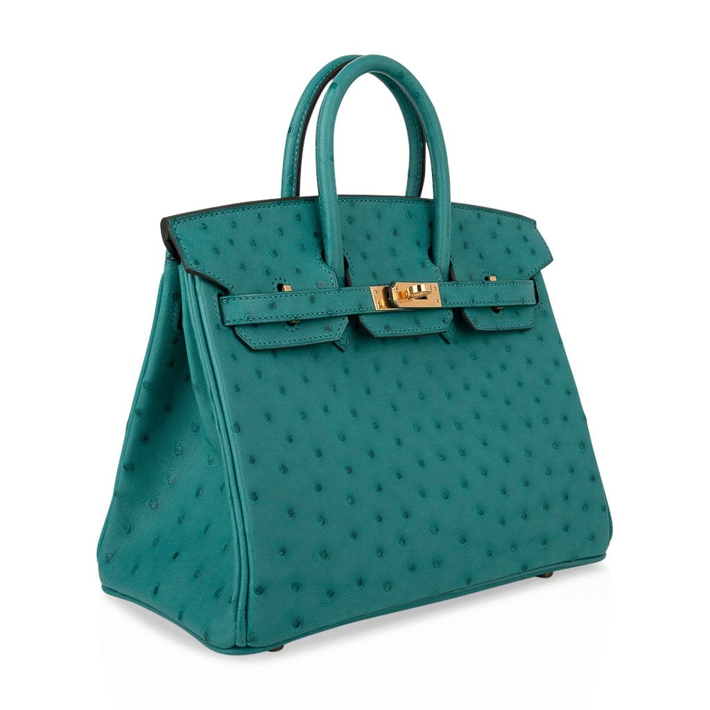 Hermes Birkin 25 Bag Vert Verone Ostrich Gold Hardware