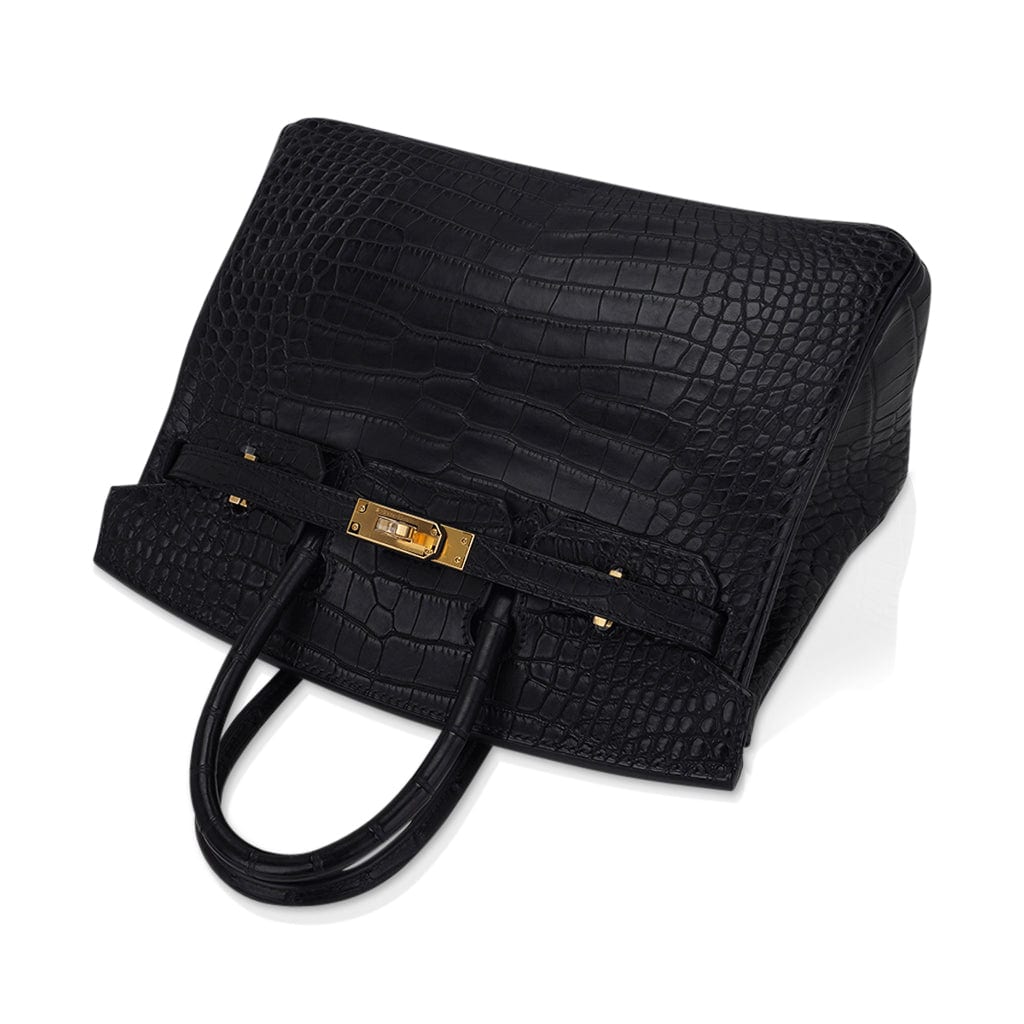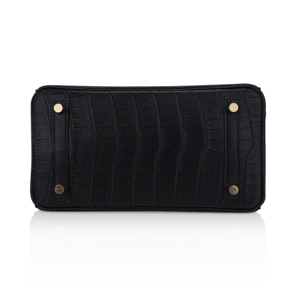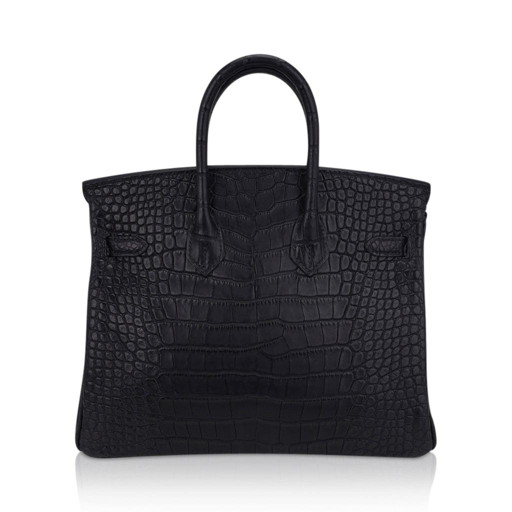Guaranteed authentic Hermes Birkin 25 bag featured in Matte Black Alligator.