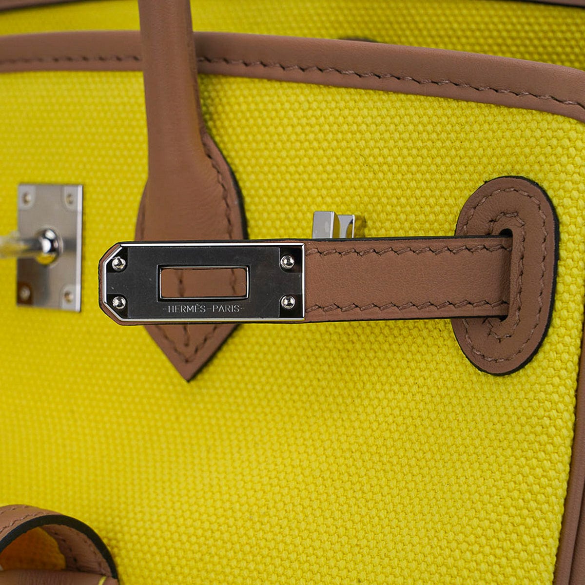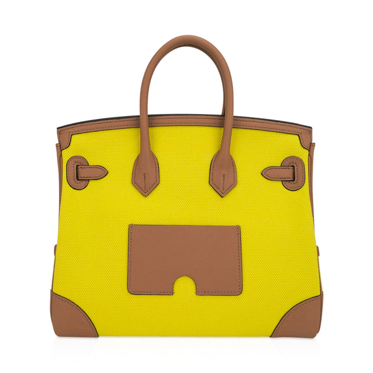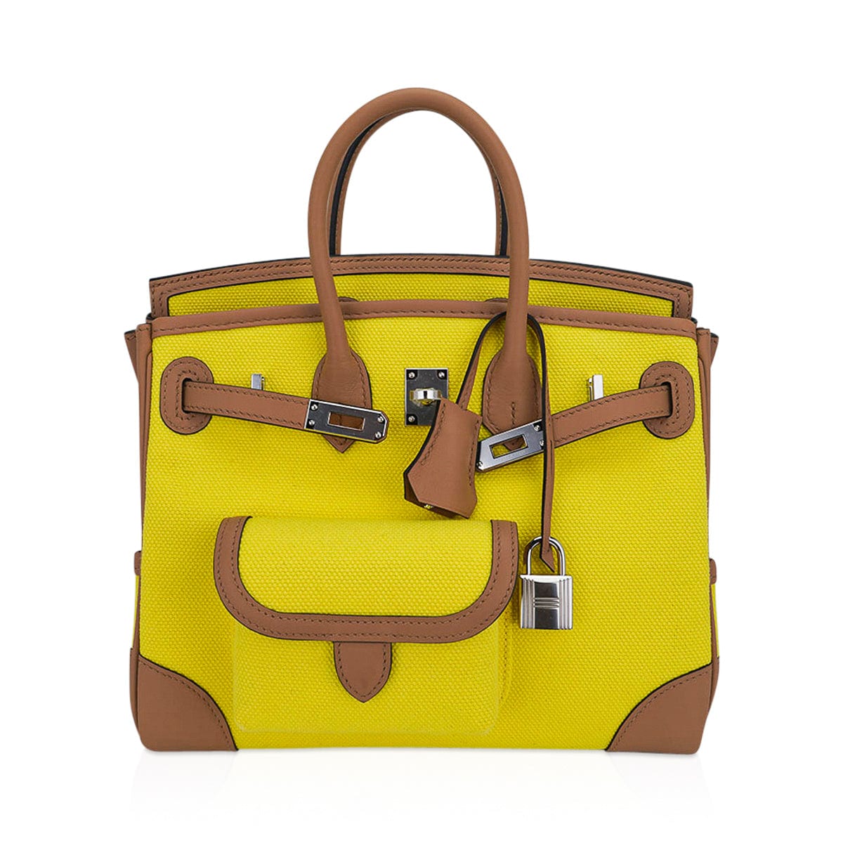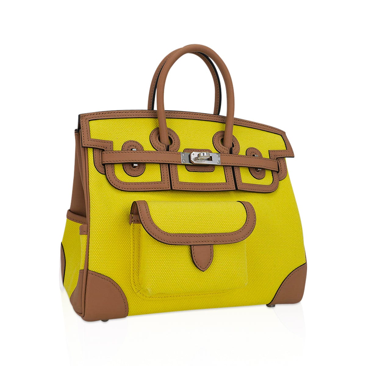 Guaranteed authentic Hermes Cargo Birkin 25 bag featured in Jaune Citron and Chai.