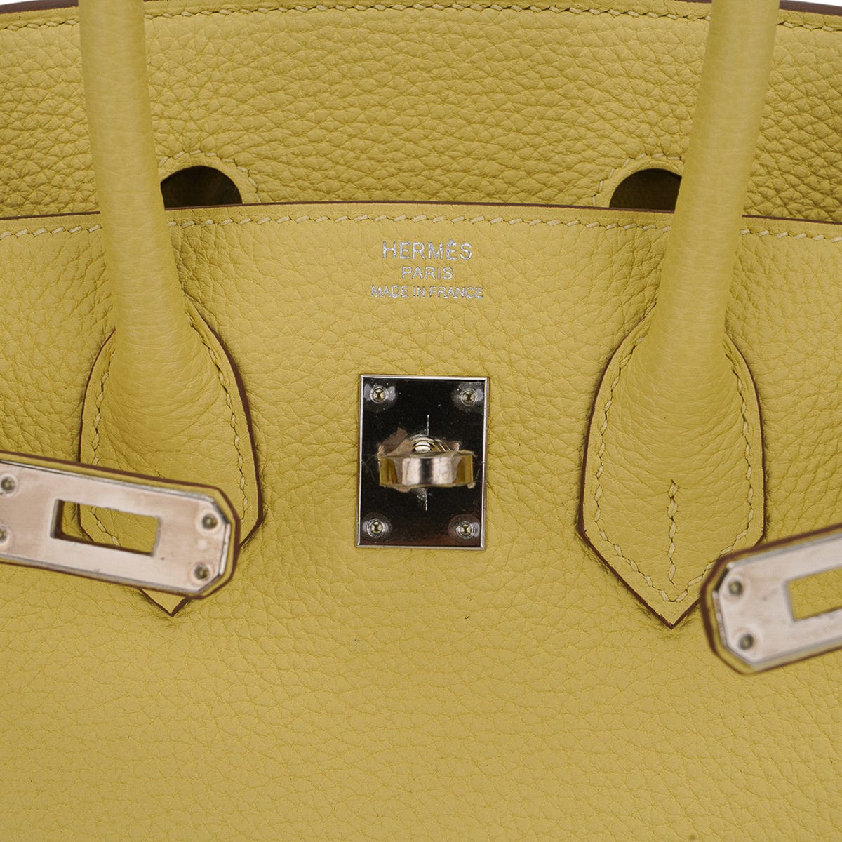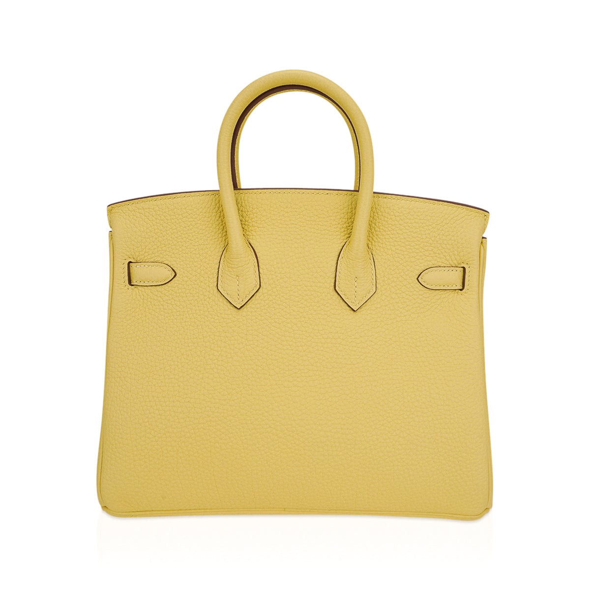 Guaranteed authentic Hermes Birkin 25 bag featured in gorgeous Jaune Poussin.