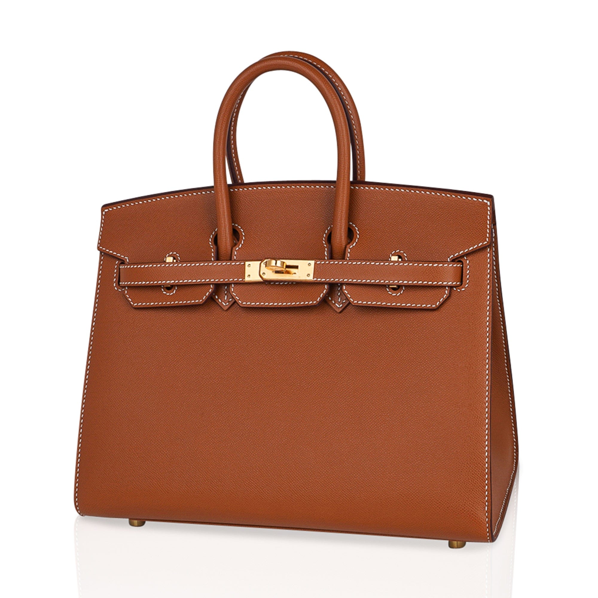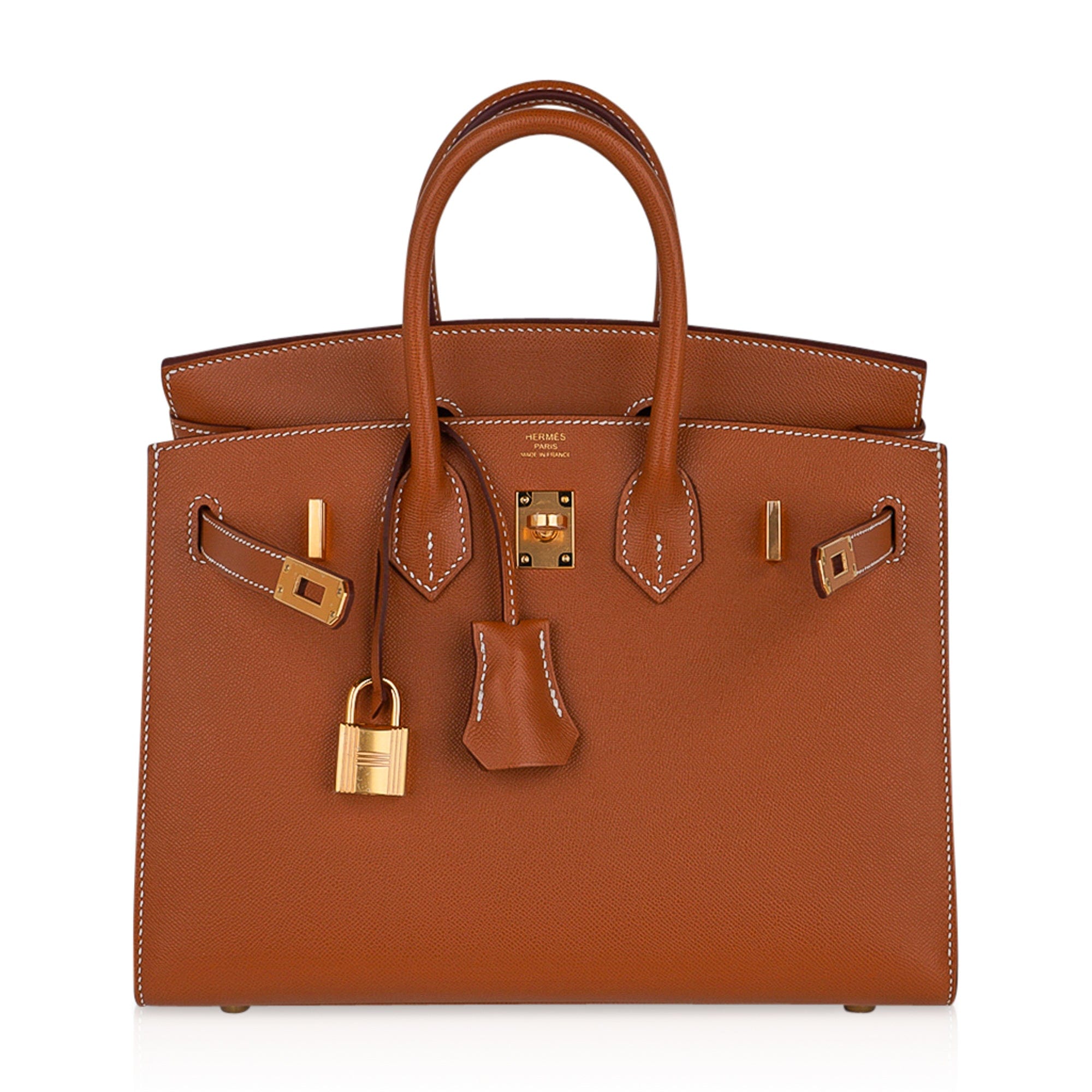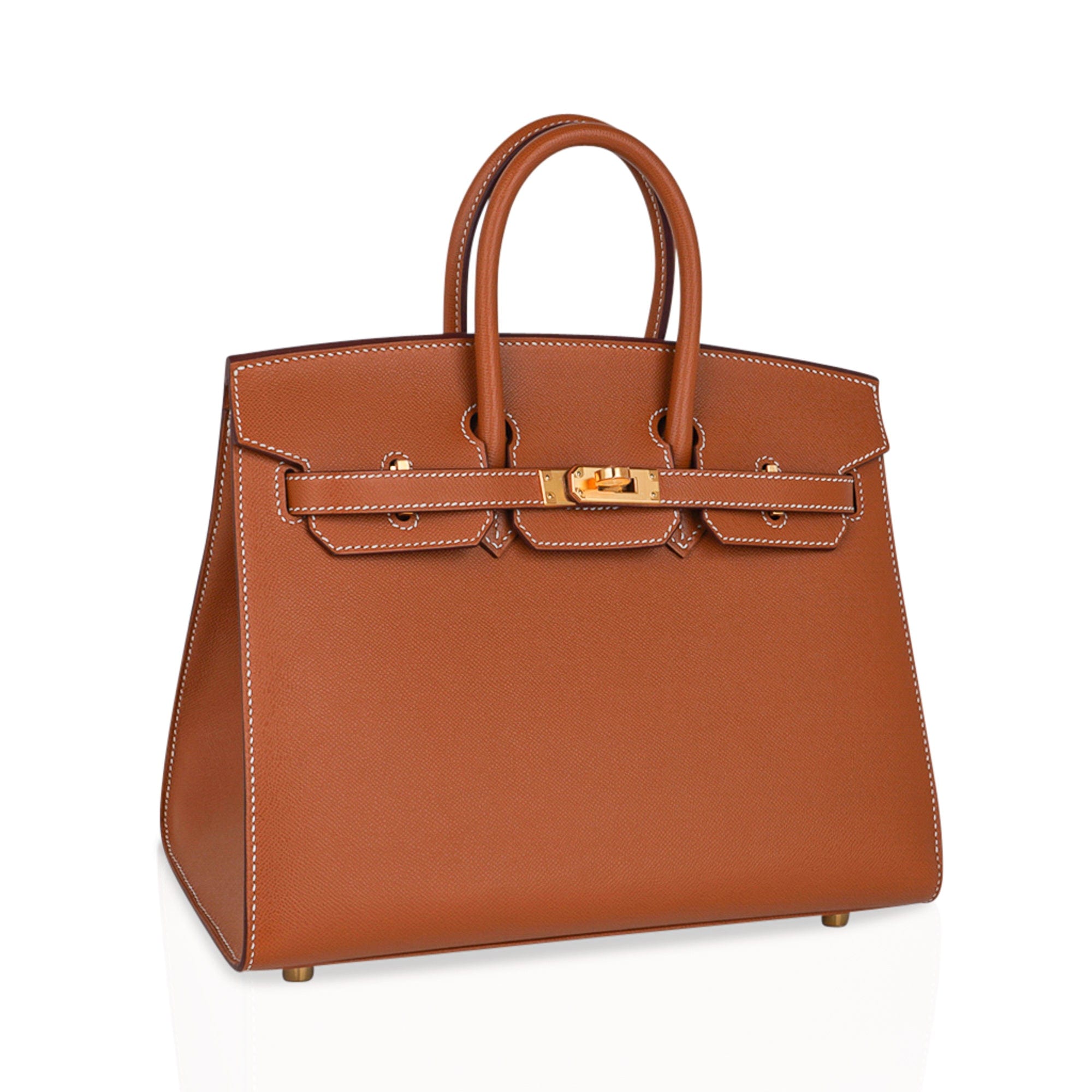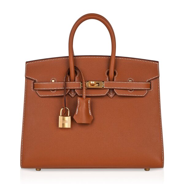 Guaranteed authentic Hermes Birkin Sellier 25 bag featured in iconic Gold.
