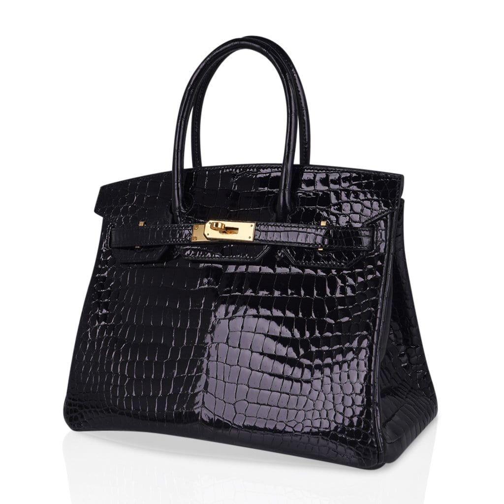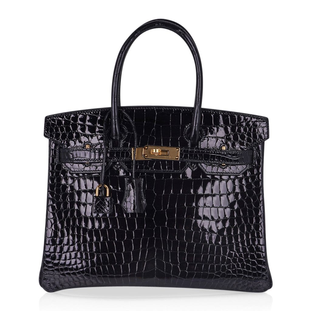 Guaranteed authentic Hermes Birkin 30 bag is featured in classic Black Porosus Crocodile.