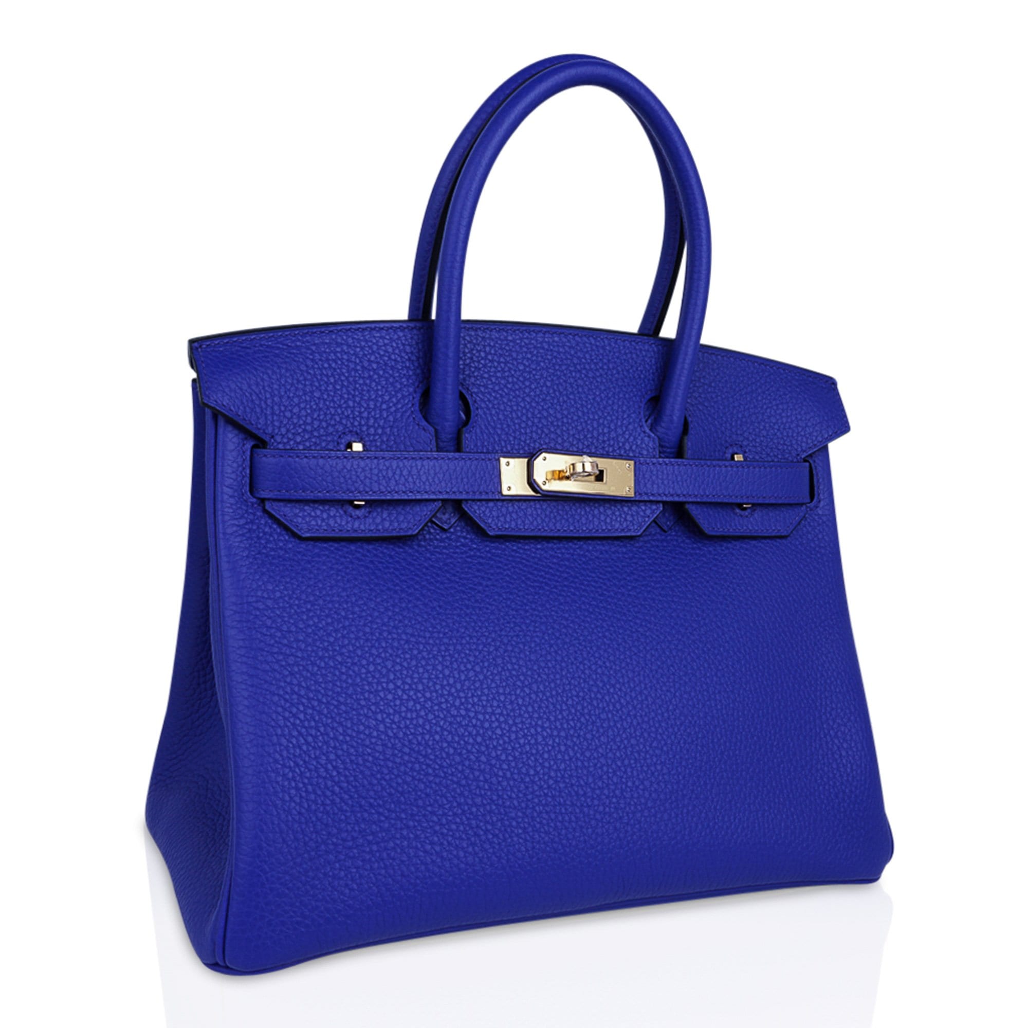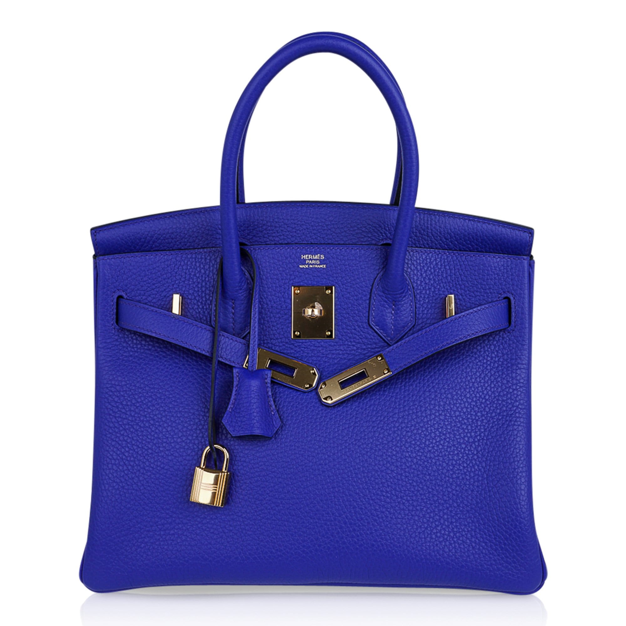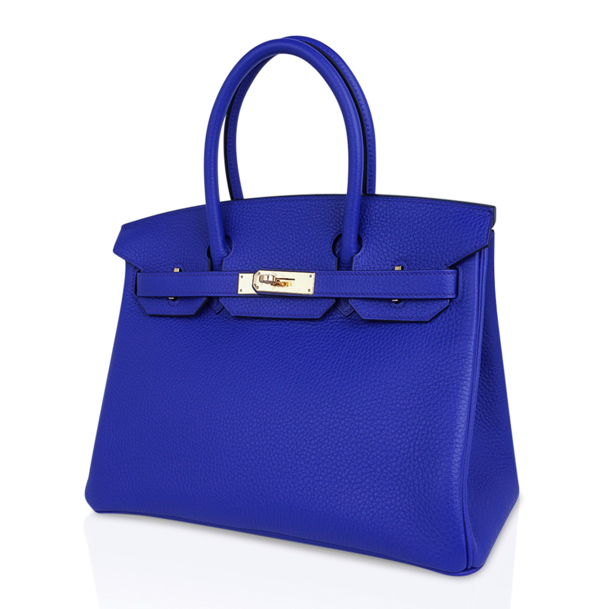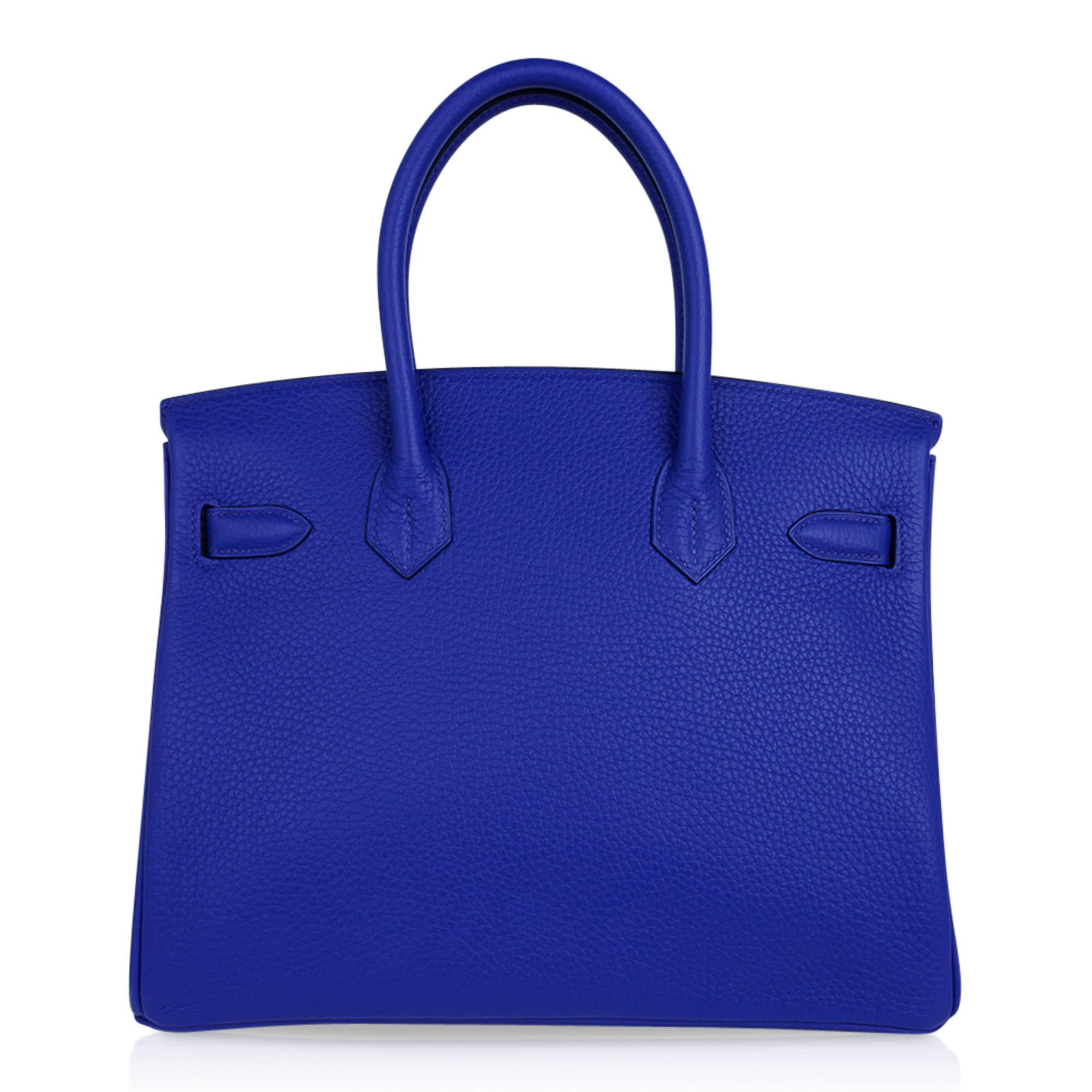 Guaranteed authentic Hermes Birkin 30 bag featured in vivid Blue Electric.