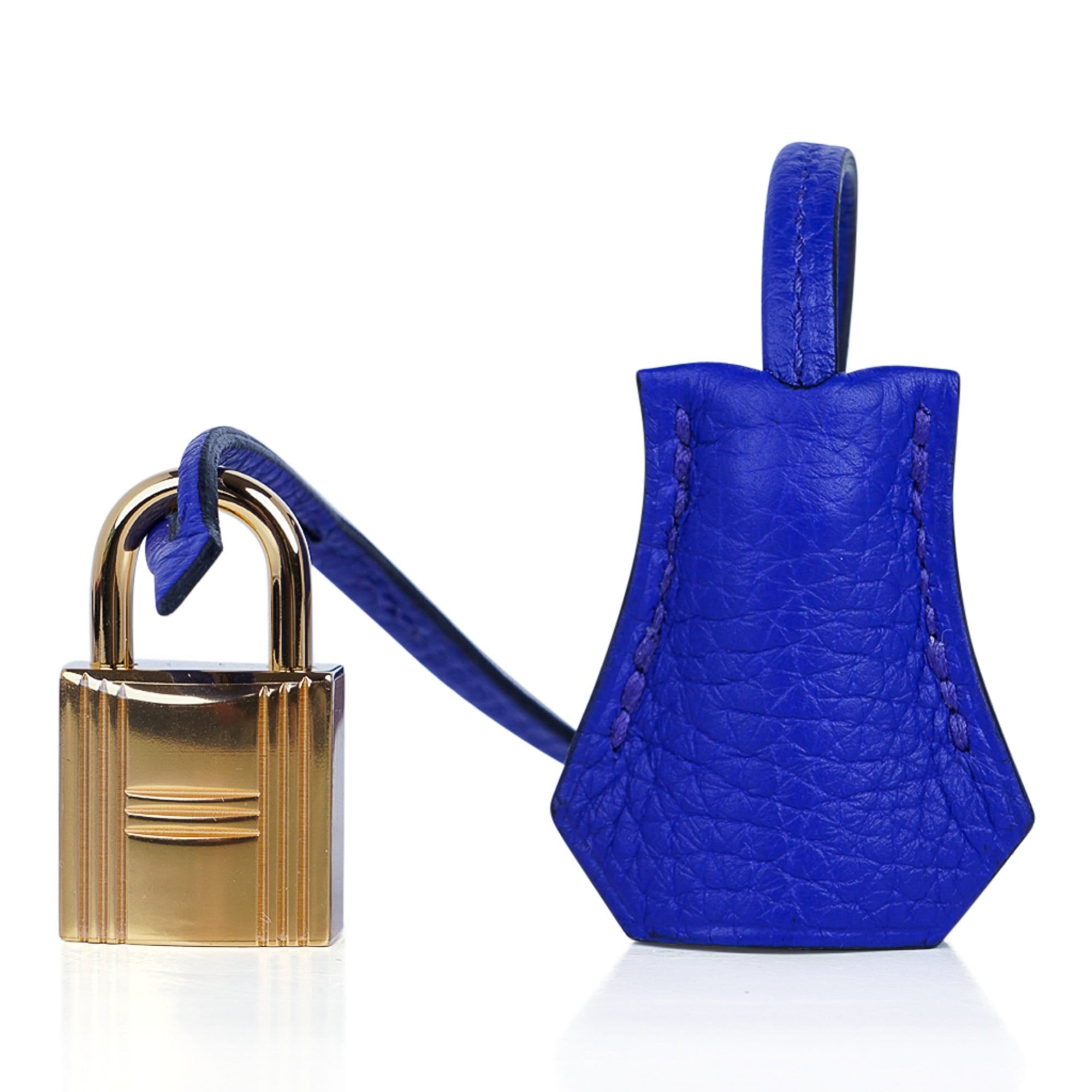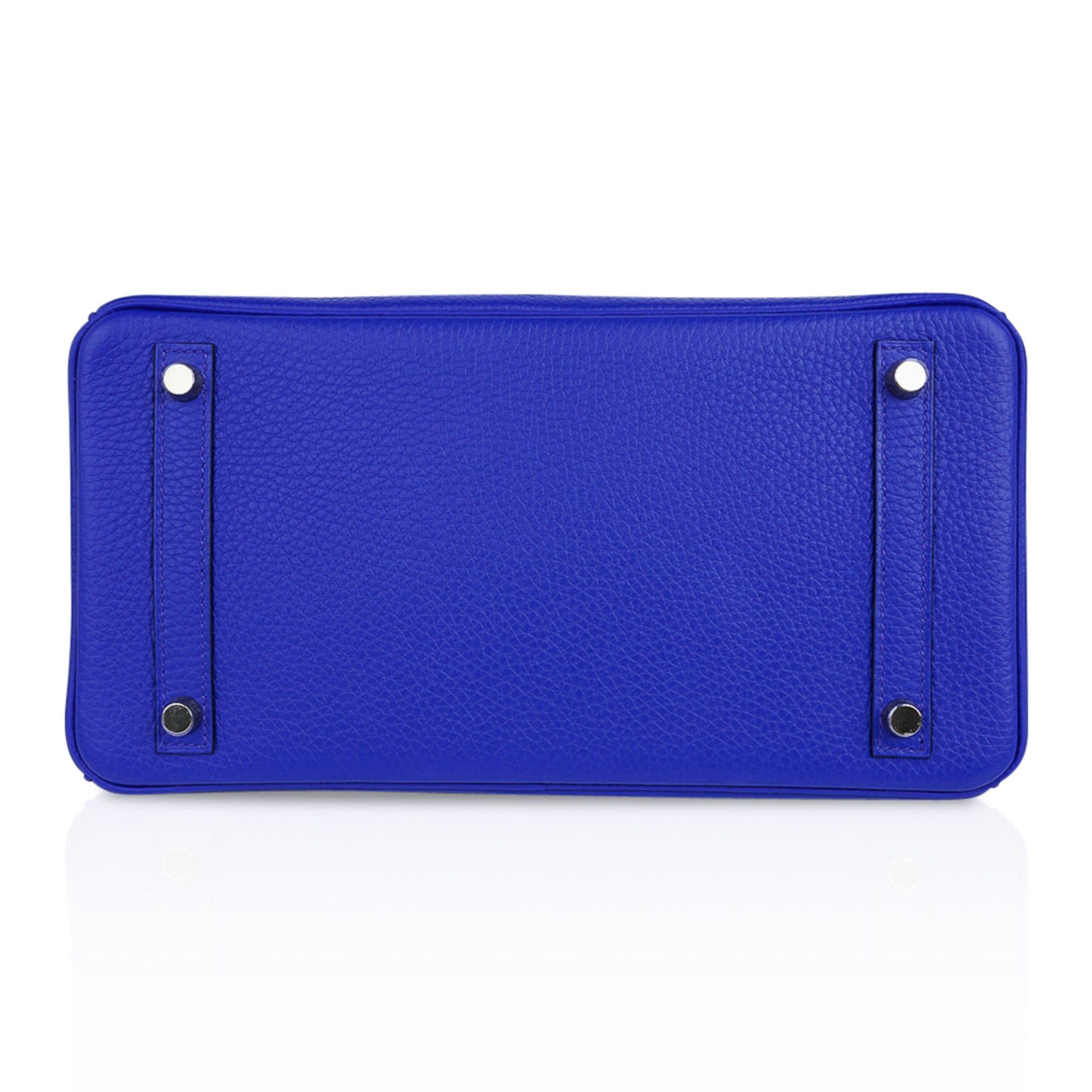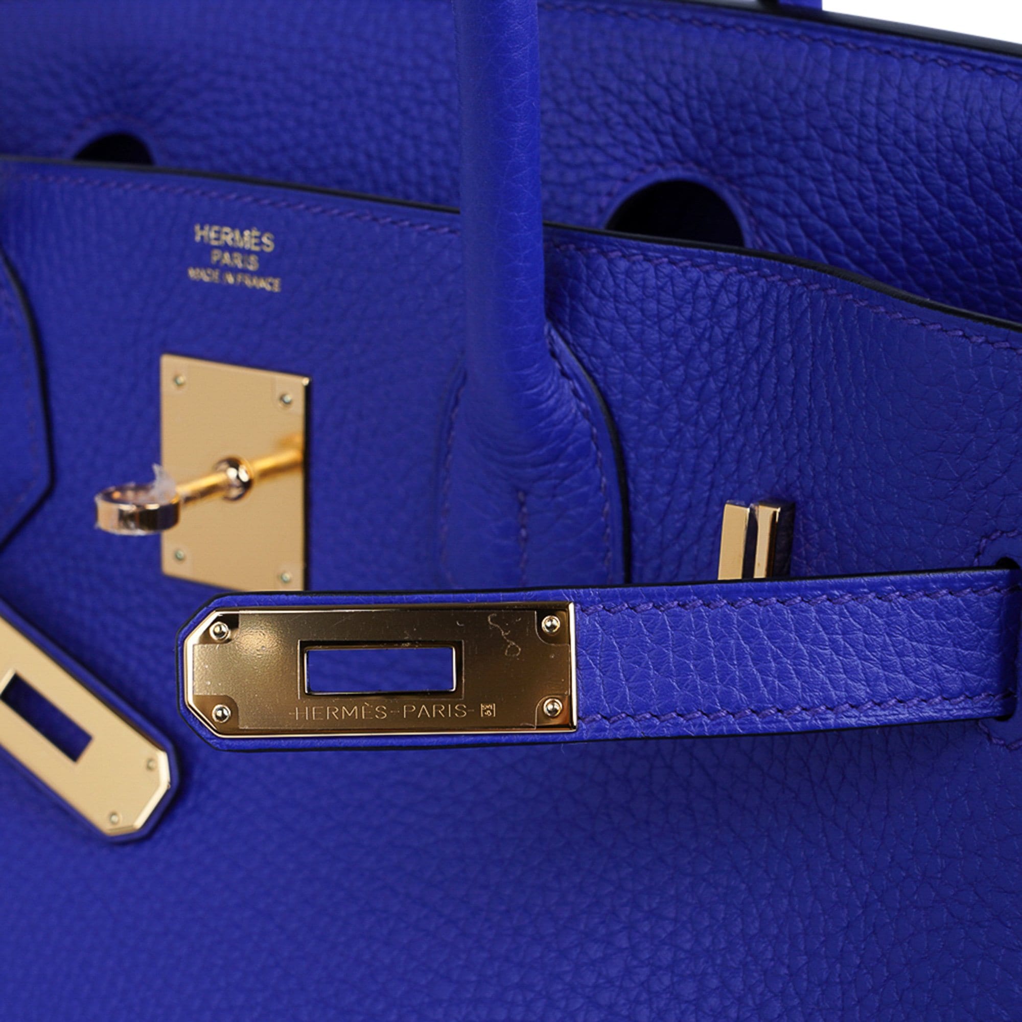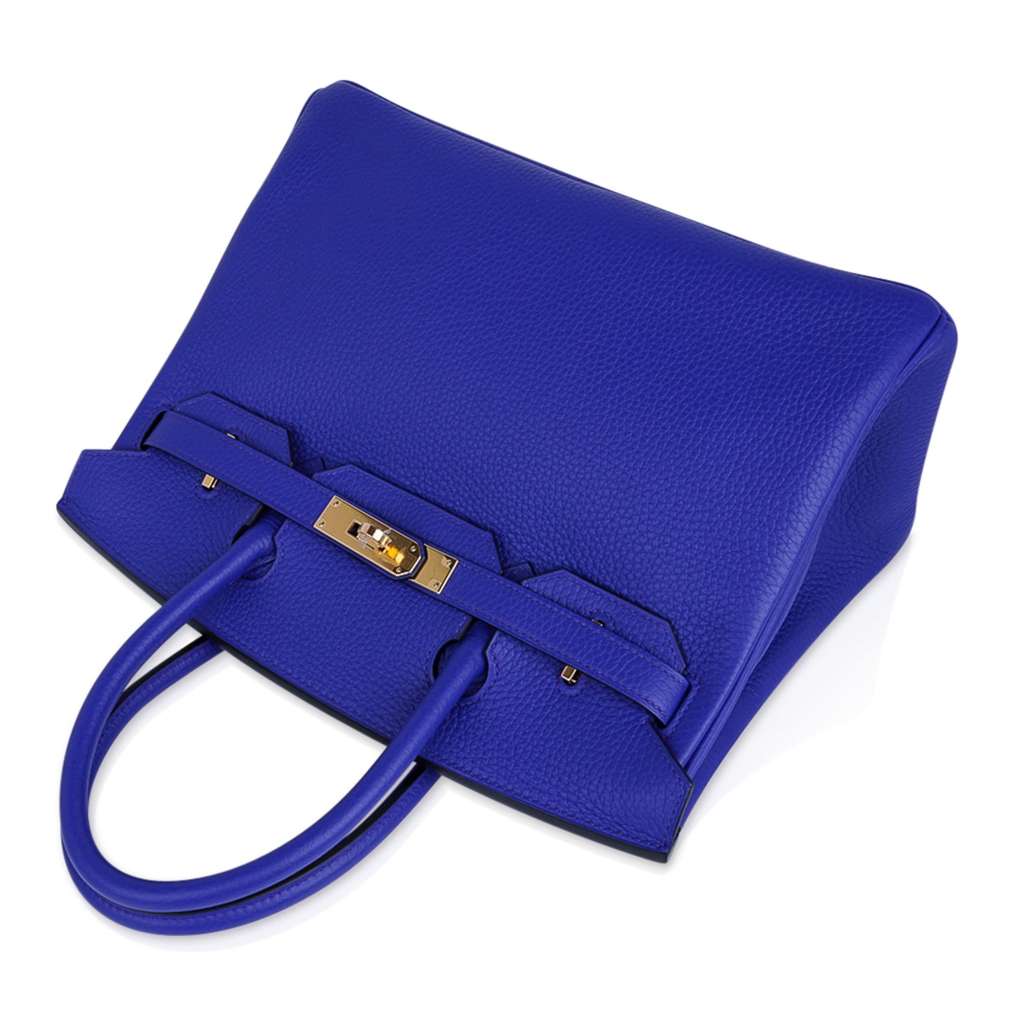 Guaranteed authentic Hermes Birkin 30 bag featured in vivid Blue Electric.