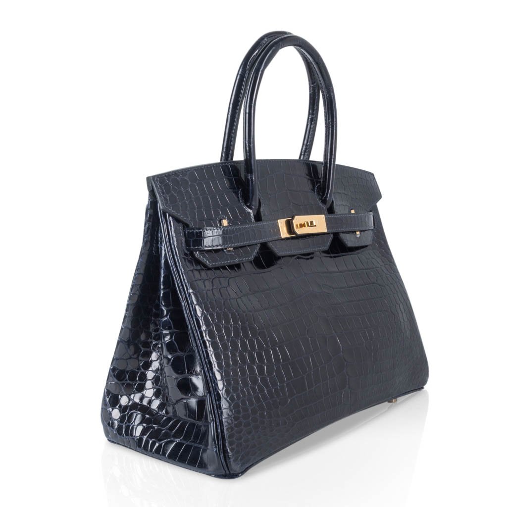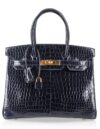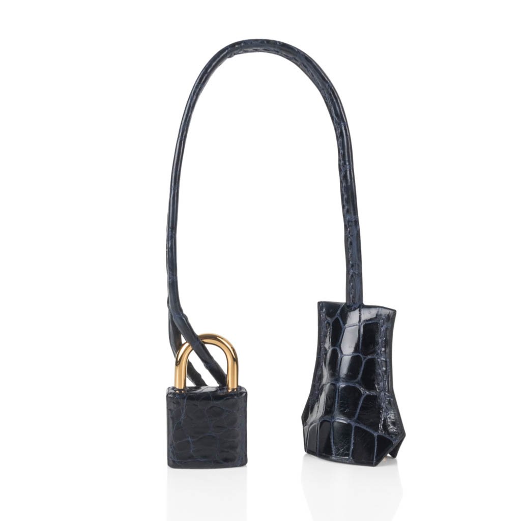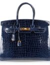 This rich jewel toned blue Hermes Birkin bag in crocodile skin with lush gold Birkin bag hardware is magnificent!