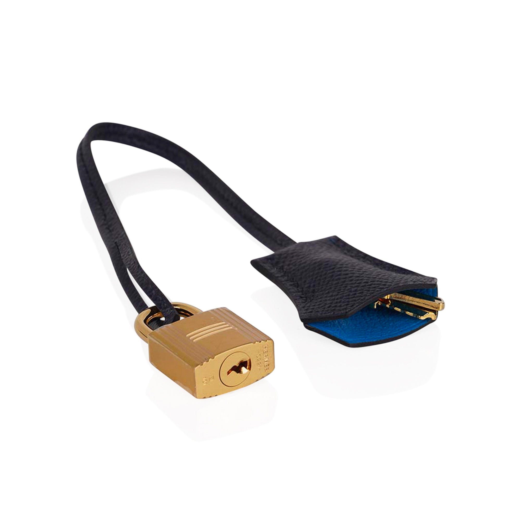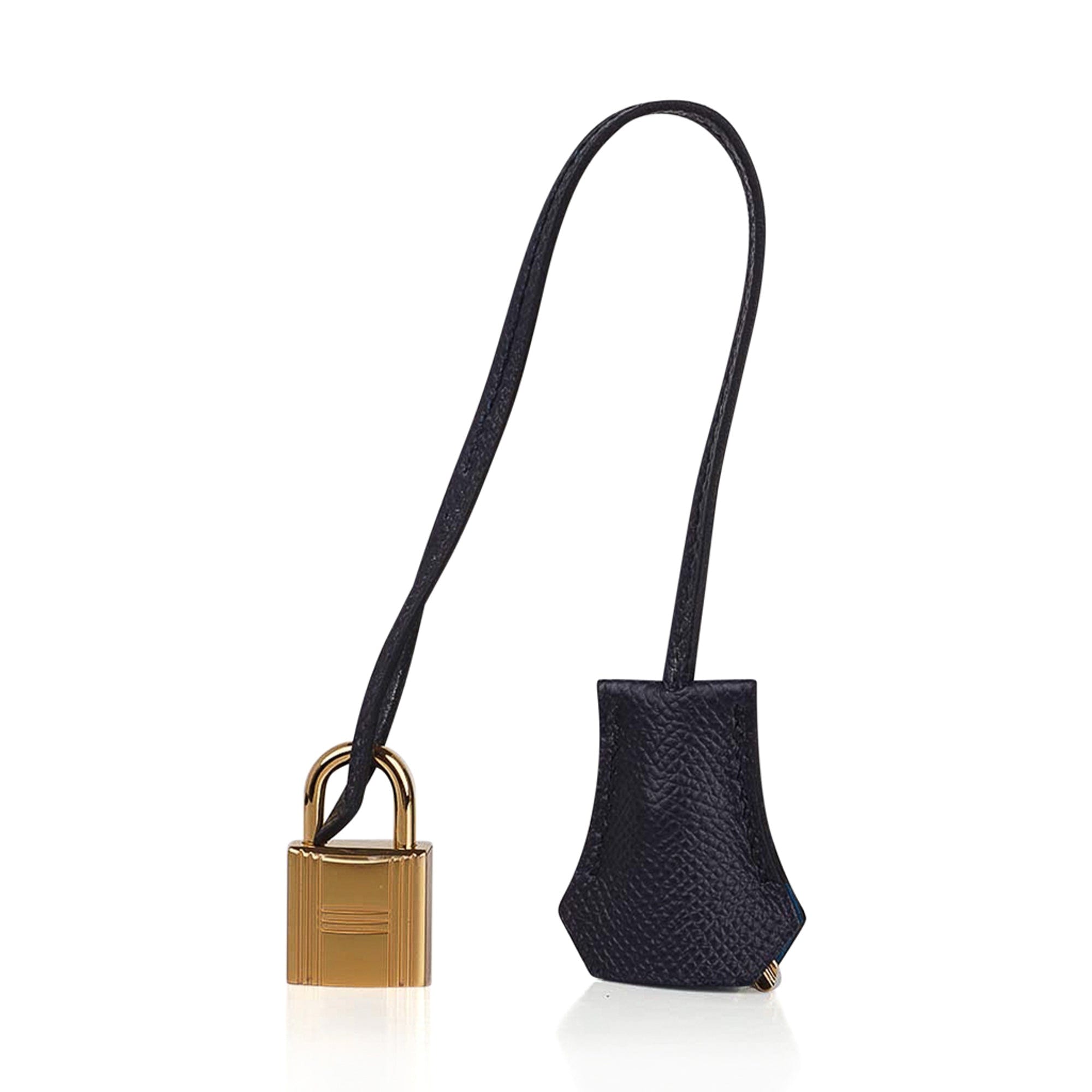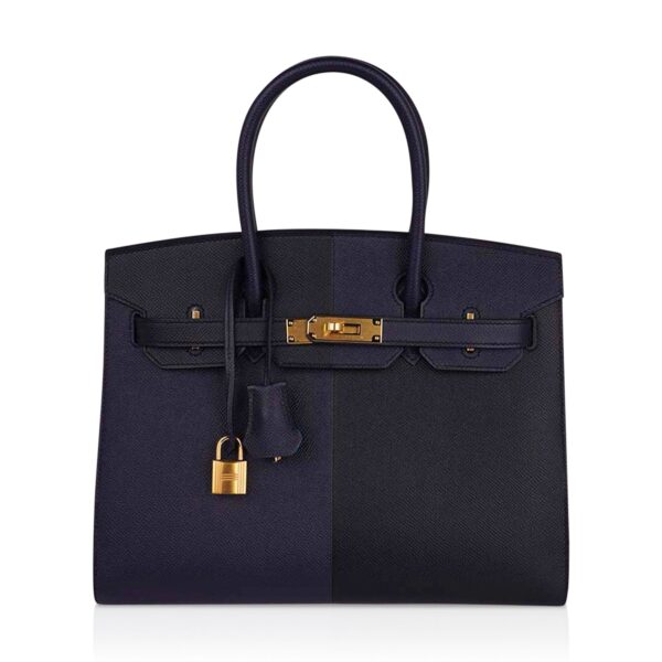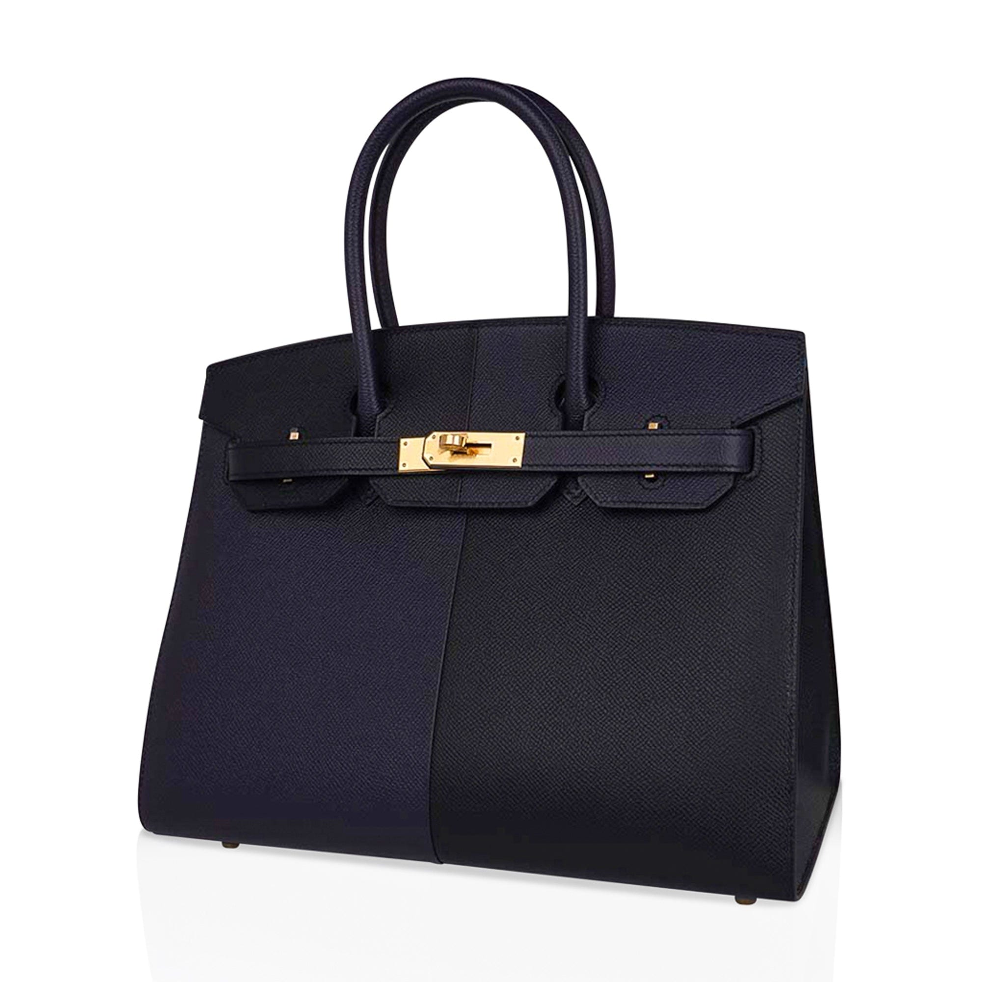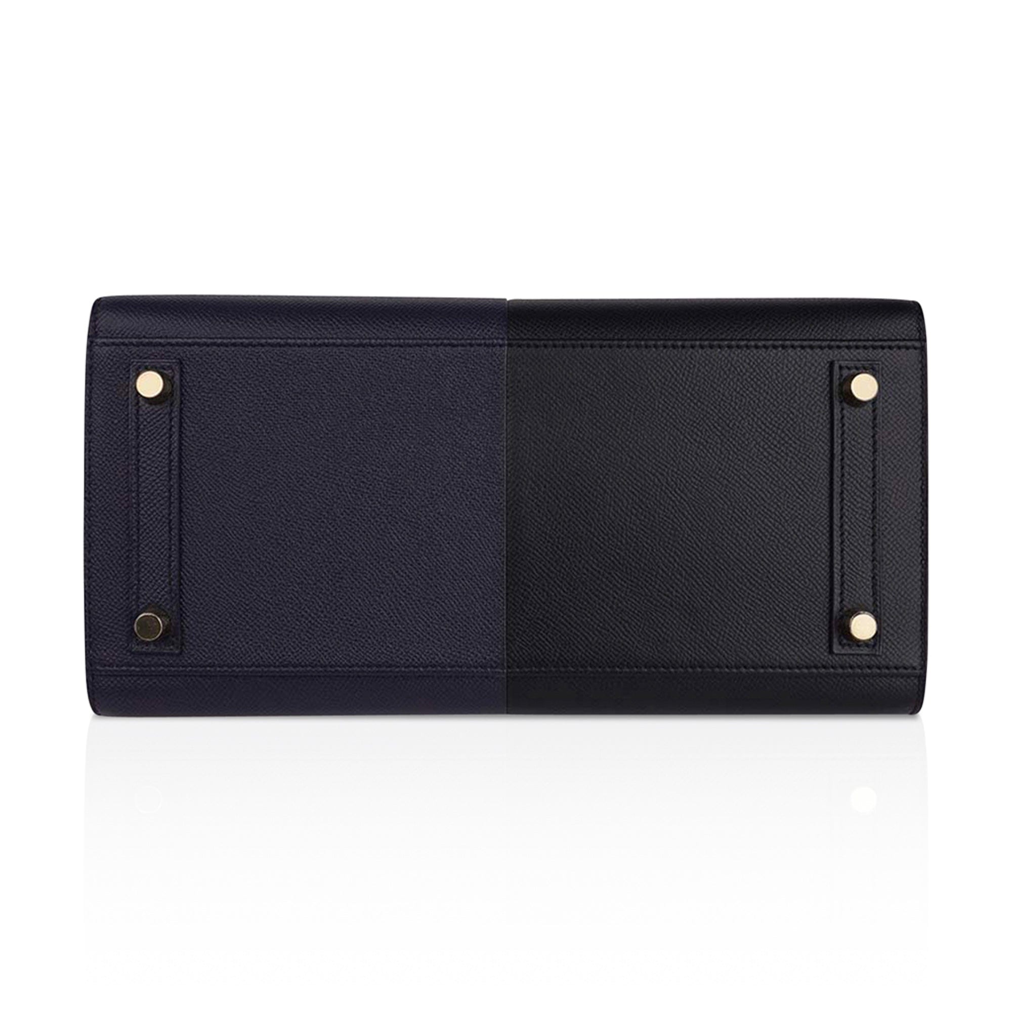 Guaranteed authentic limited edition Hermes Birkin Sellier Casaque 30 tri-colour bag featured in Black and Blue Indigo.