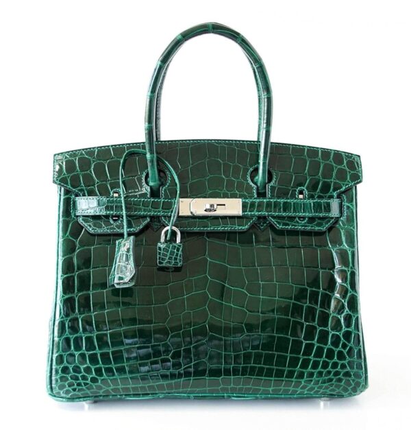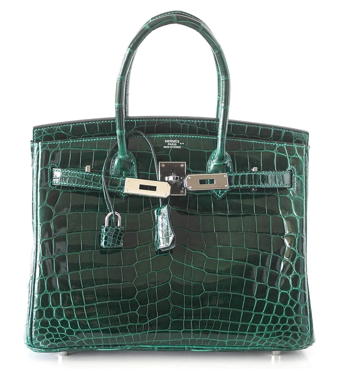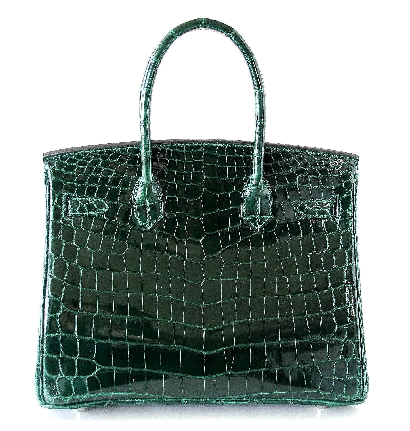 Guaranteed authentic Hermes Birkin 30 rich jewel toned coveted Emeraude (Emerald) Crocodile.