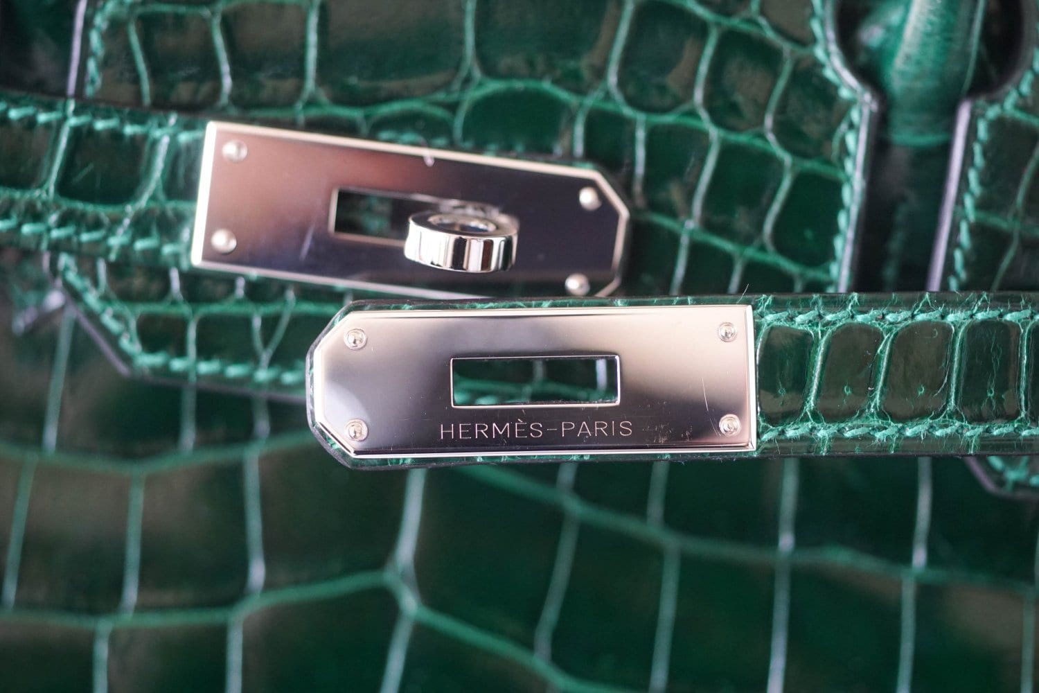 Guaranteed authentic Hermes Birkin 30 rich jewel toned coveted Emeraude (Emerald) Crocodile.