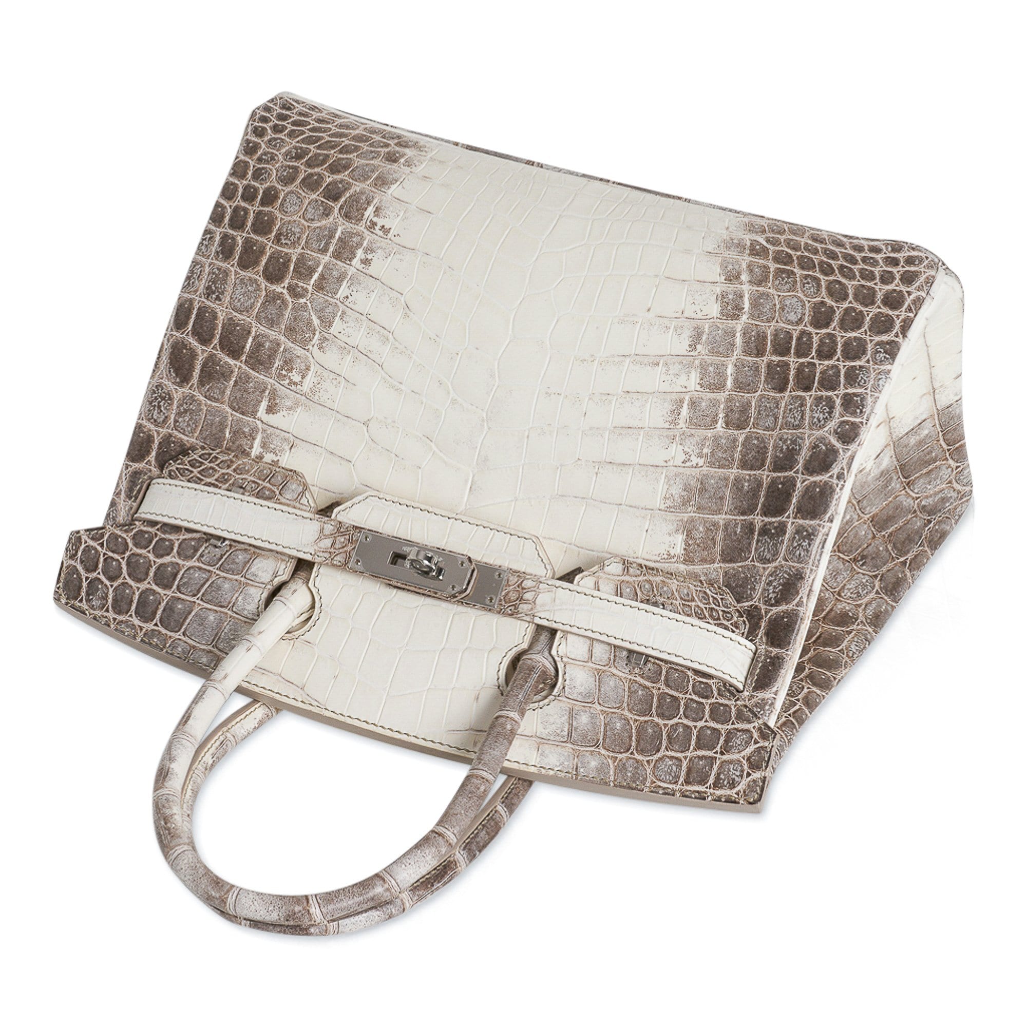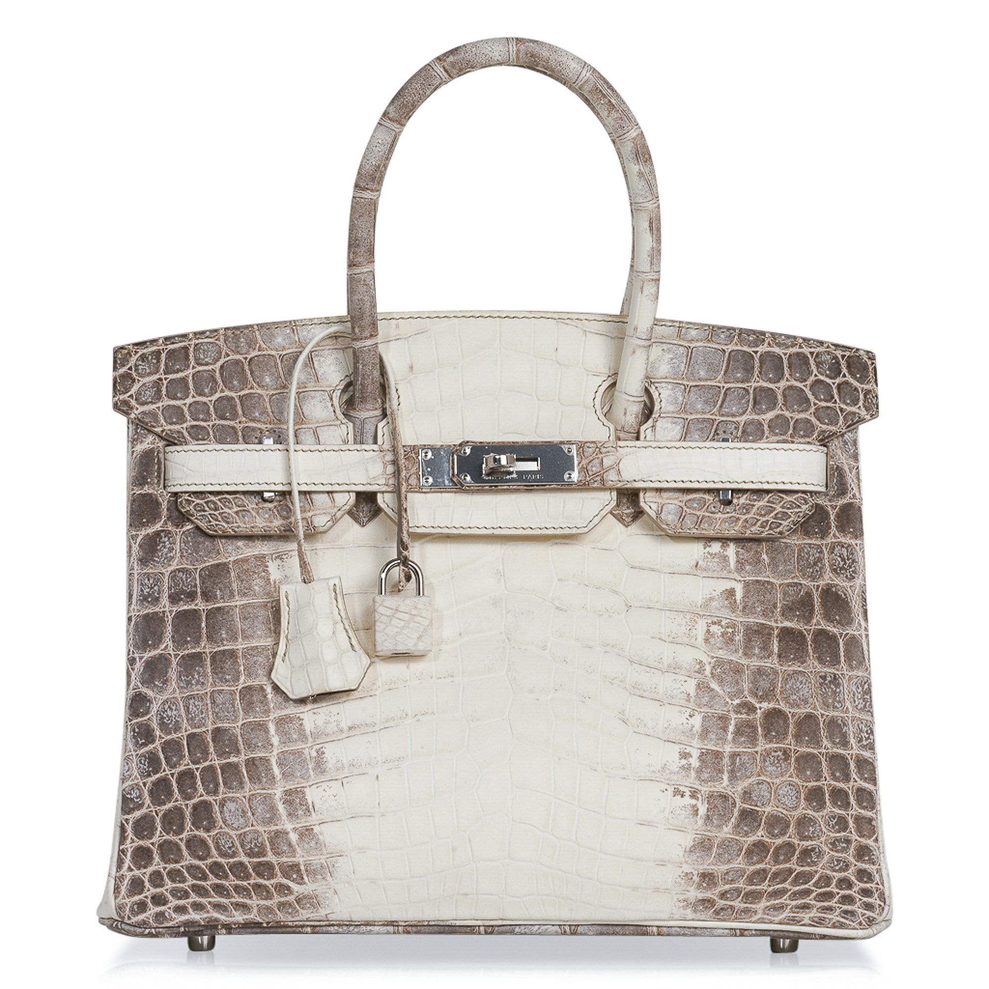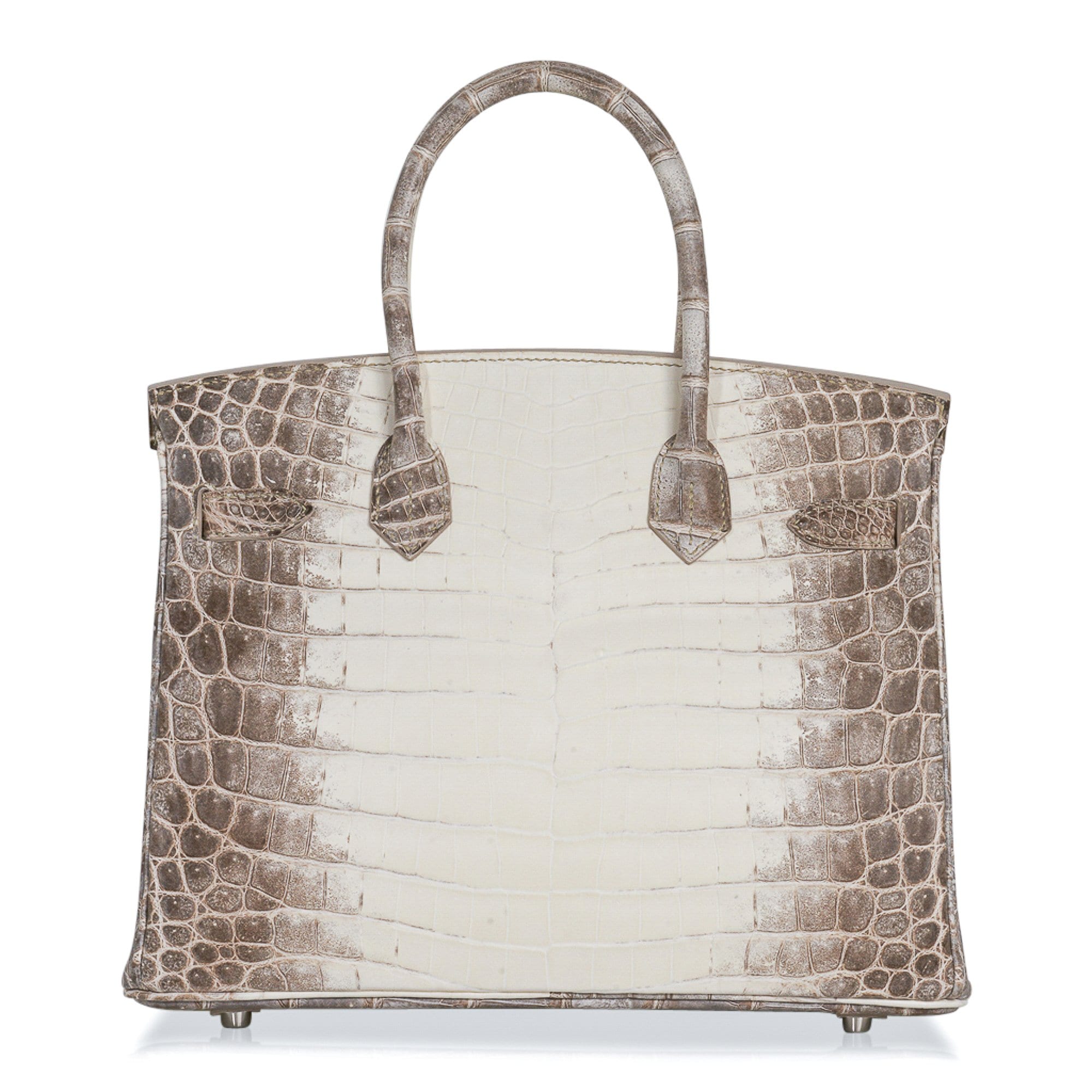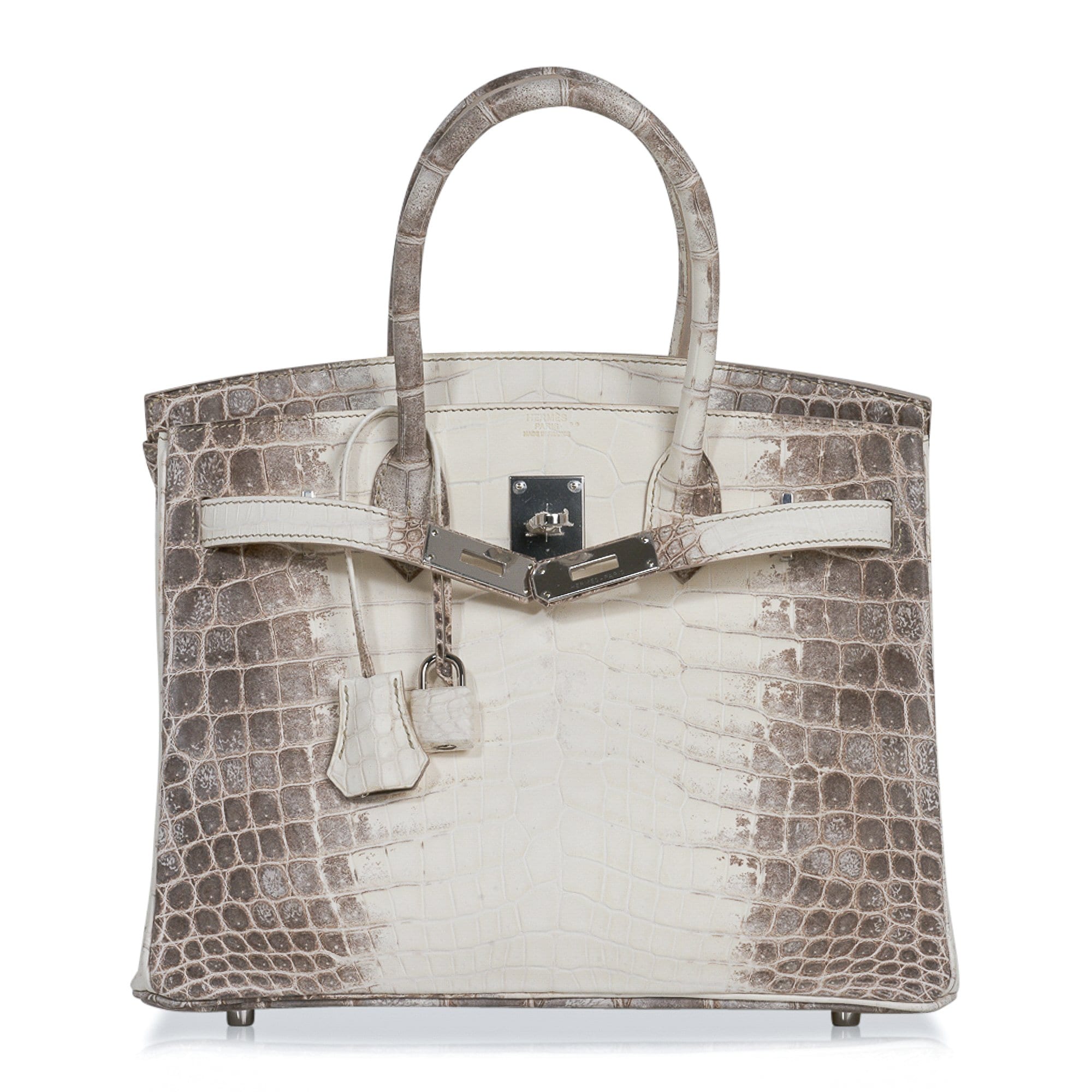 Guaranteed authentic Hermes Birkin 30 bag features the iconic Blanc Himalaya Crocodile.