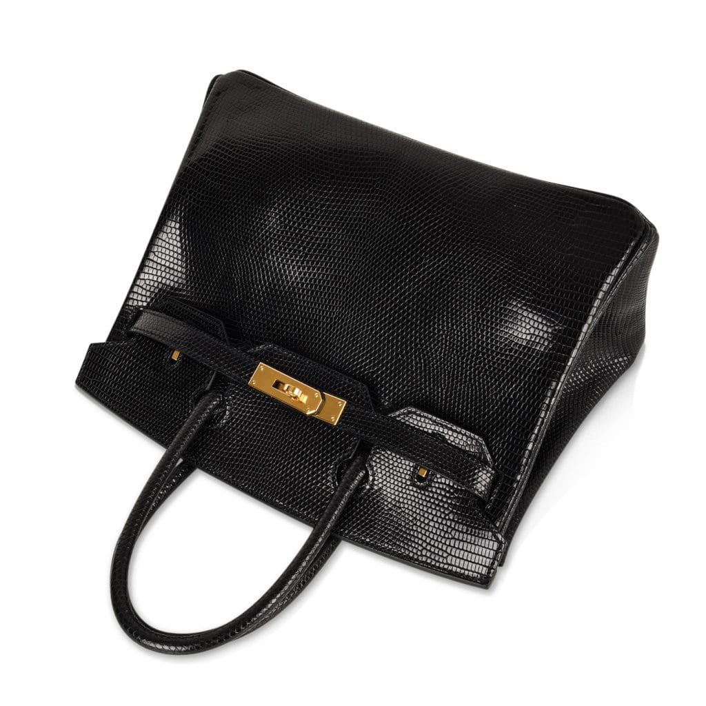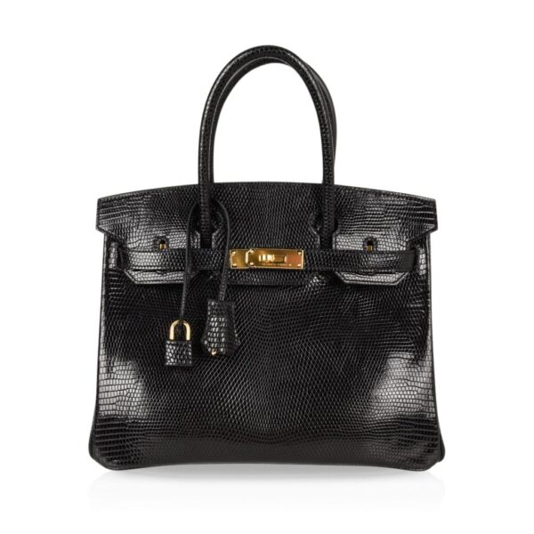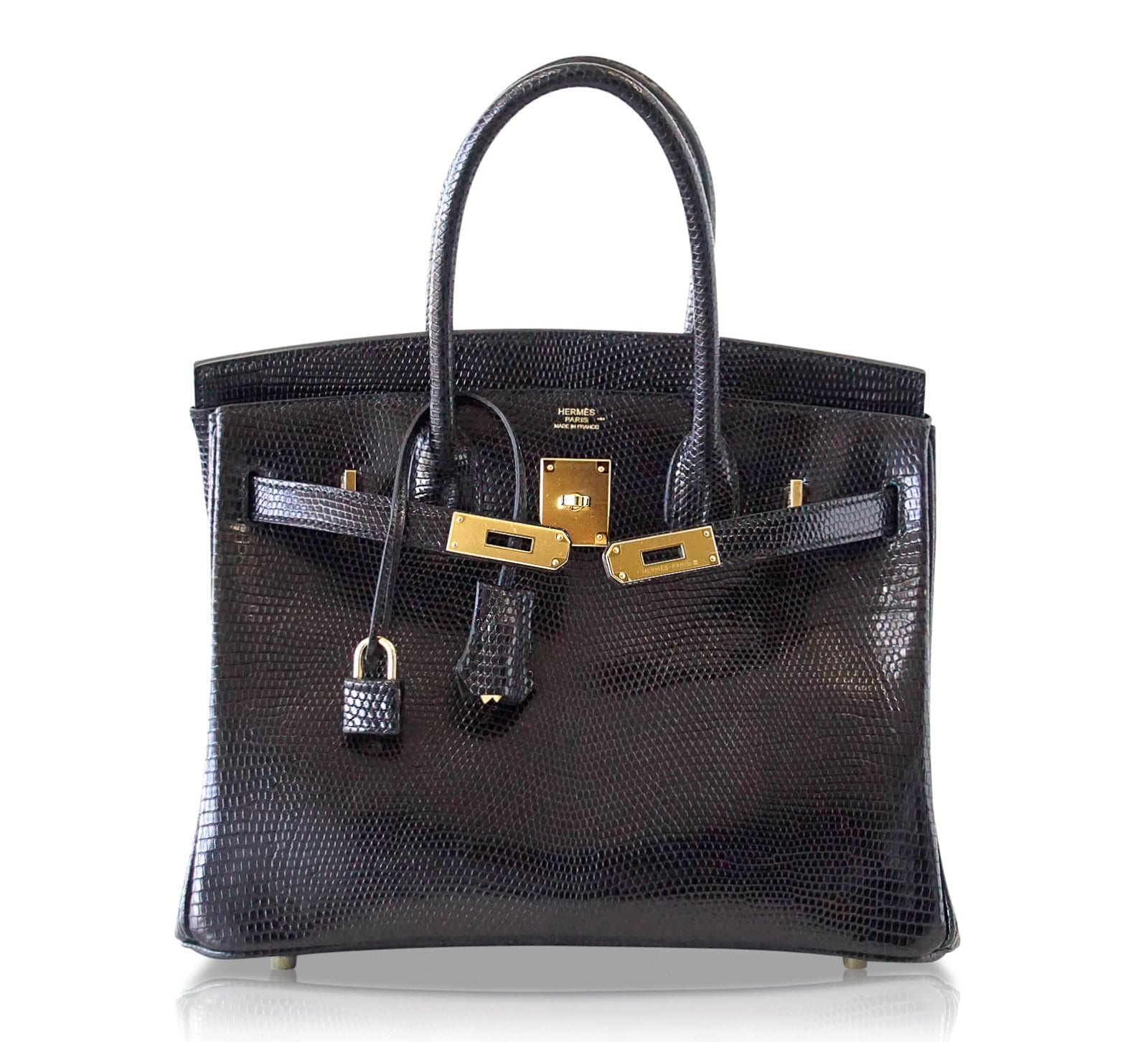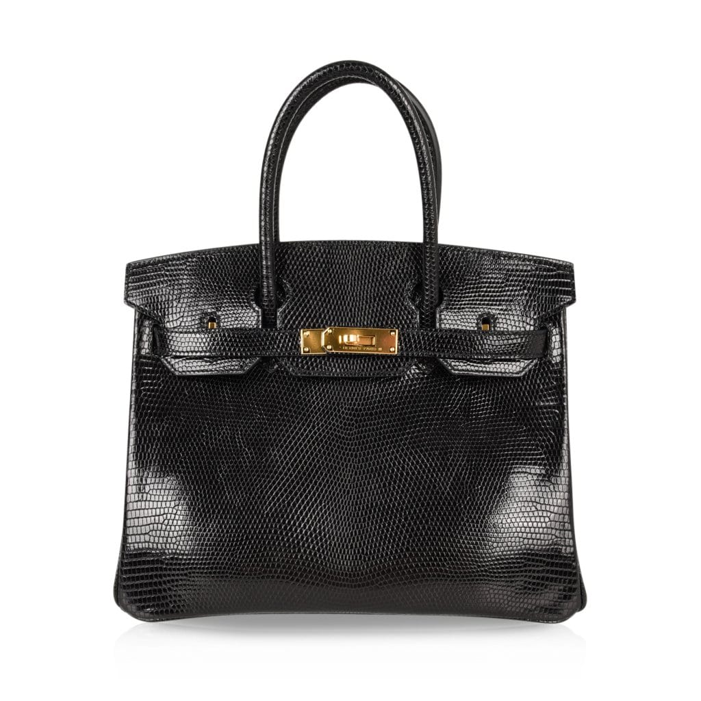 Hermes Birkin 30 Bag Jet Black Lizard Gold Hardware