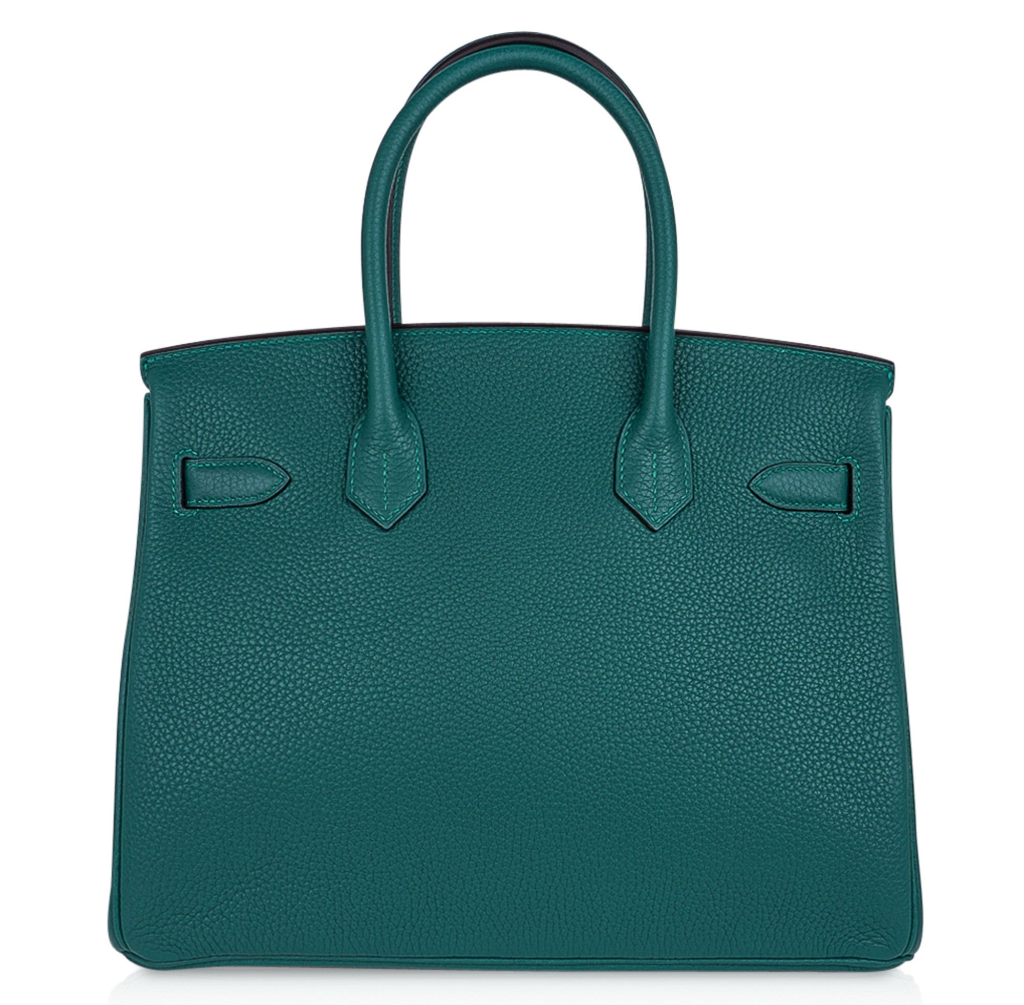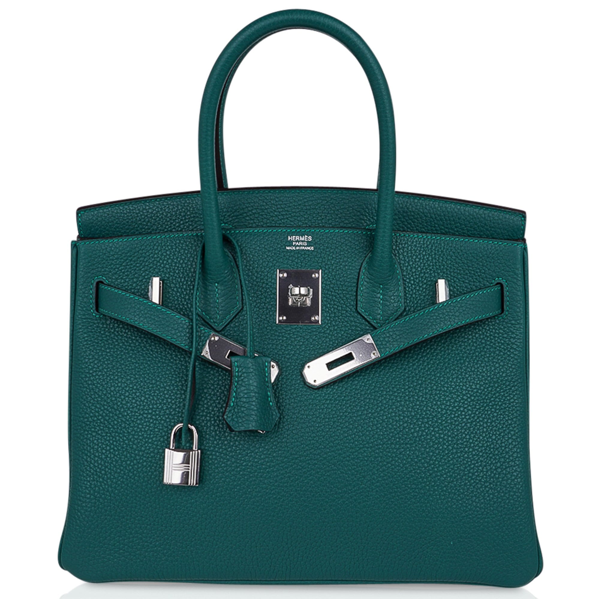 Guaranteed authentic Hermes Birkin 30 bag featured in Malachite.