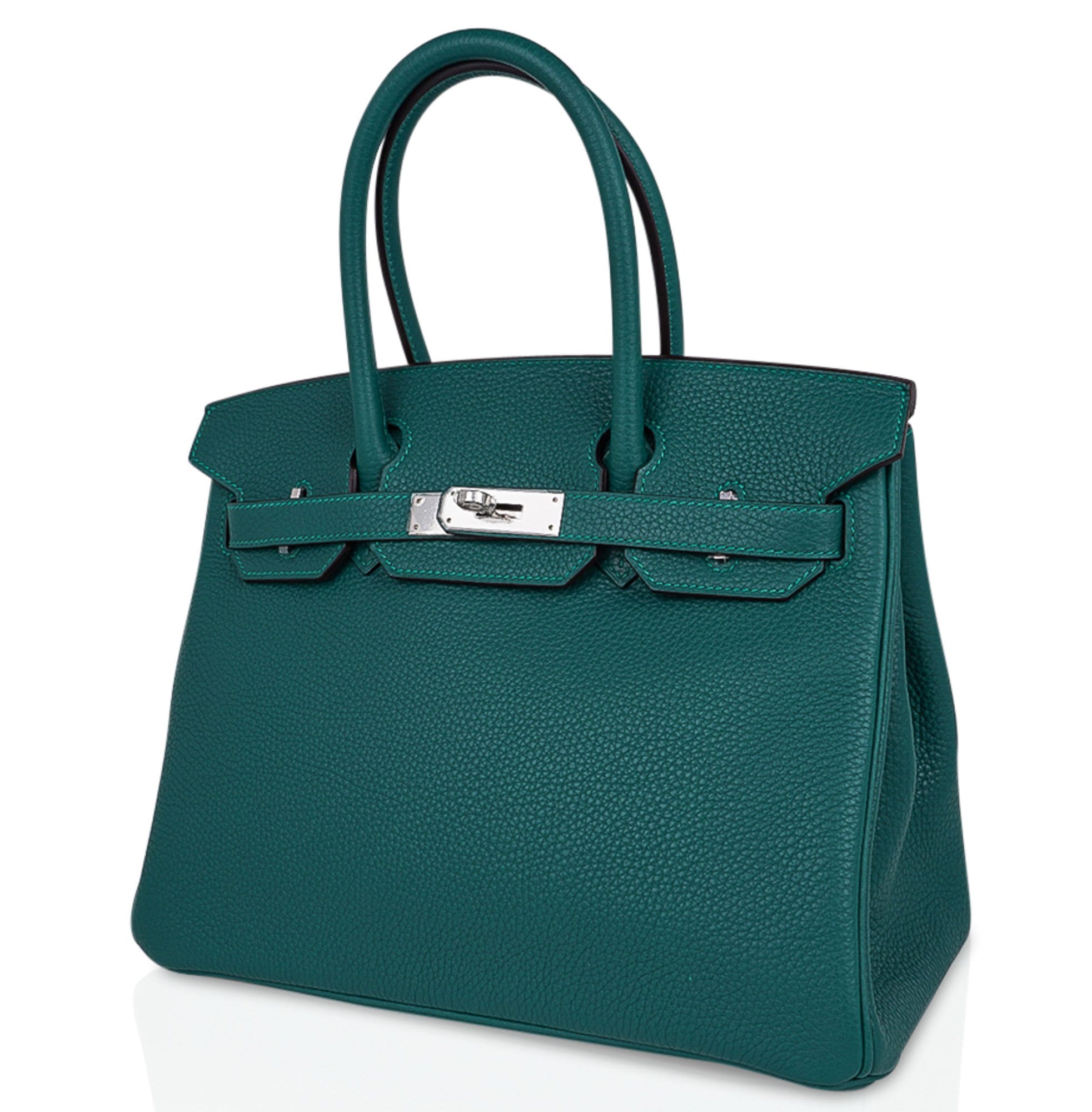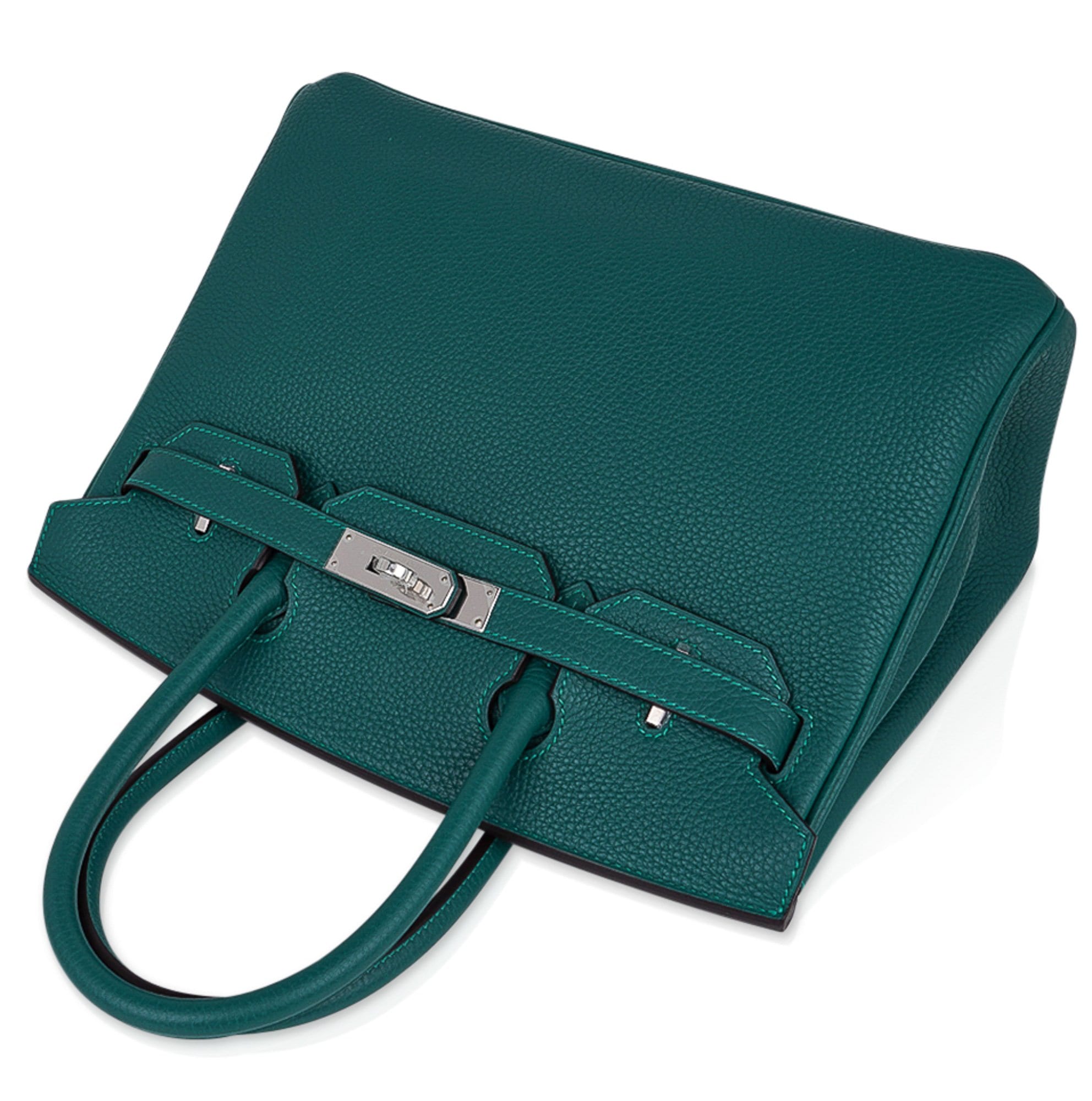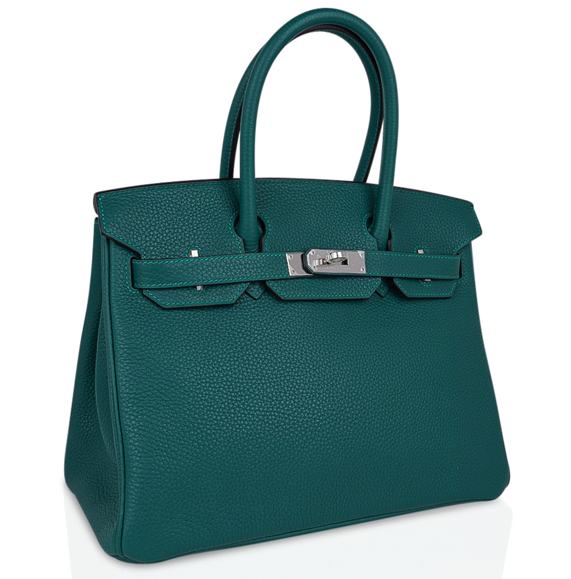 Guaranteed authentic Hermes Birkin 30 bag featured in Malachite.