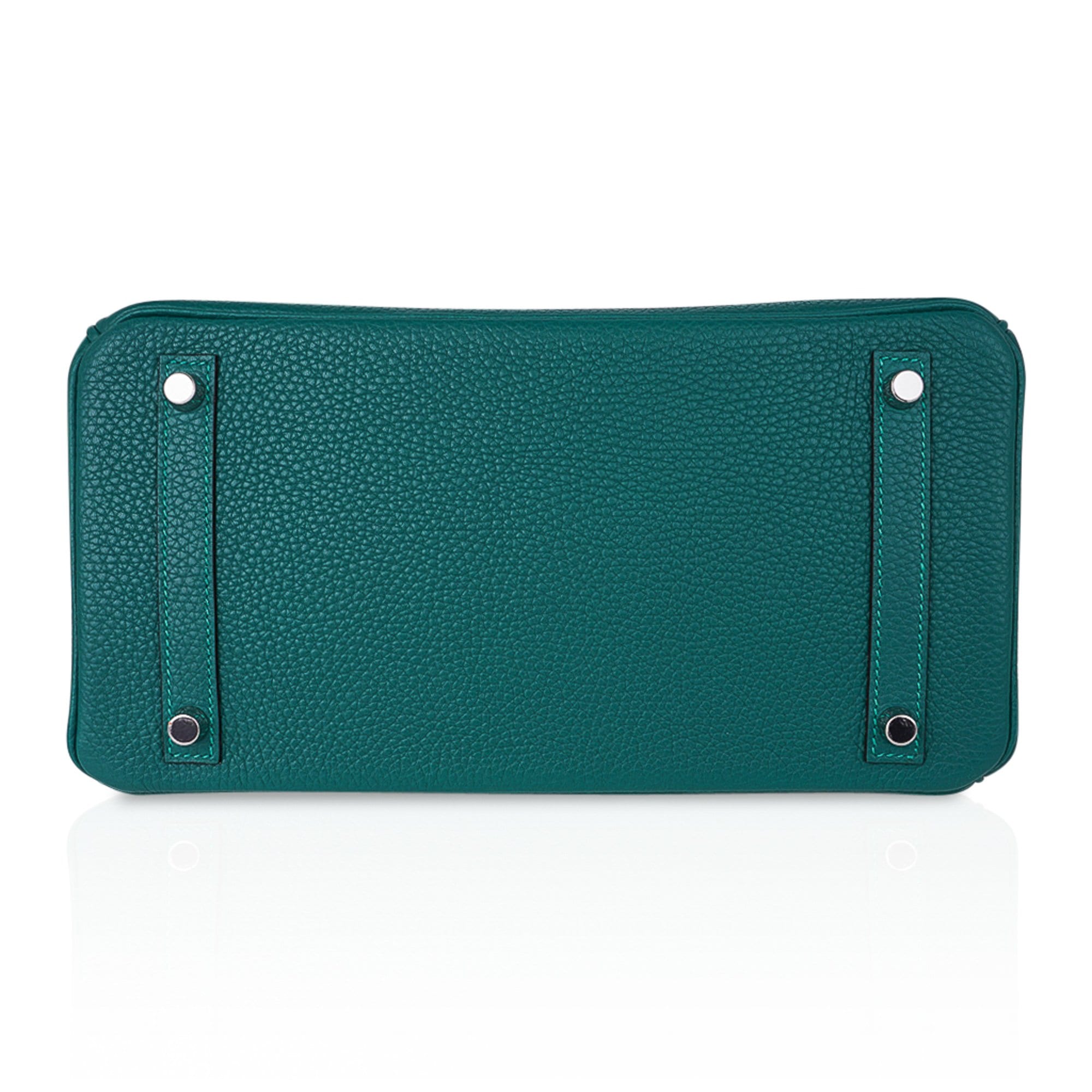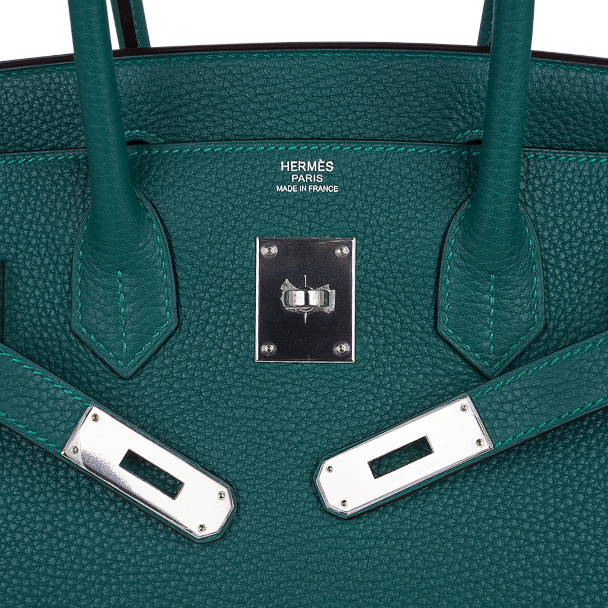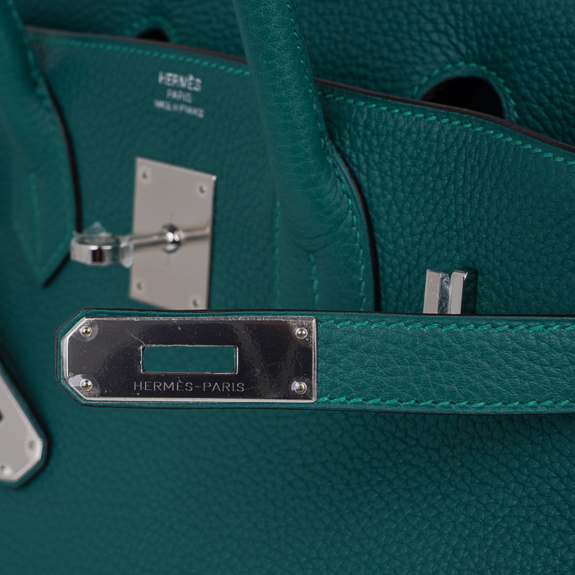 Guaranteed authentic Hermes Birkin 30 bag featured in Malachite.