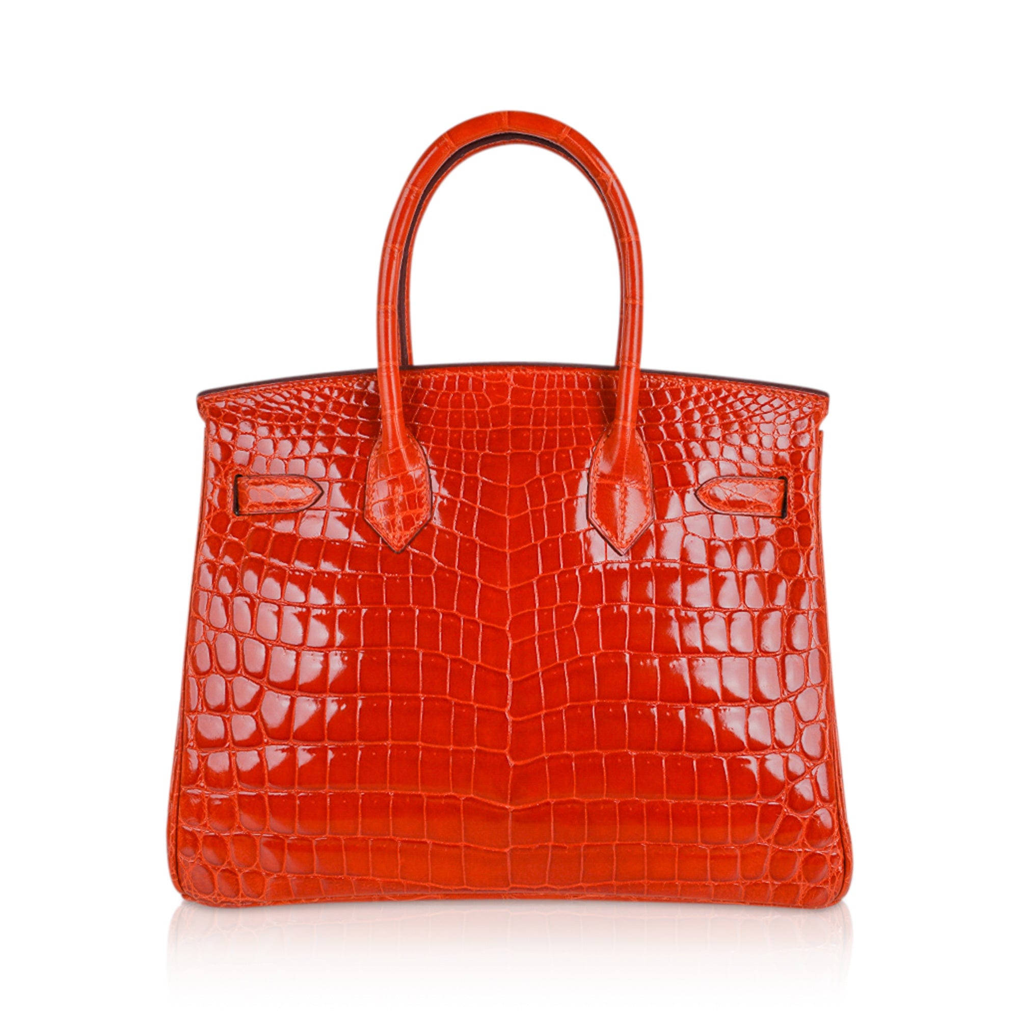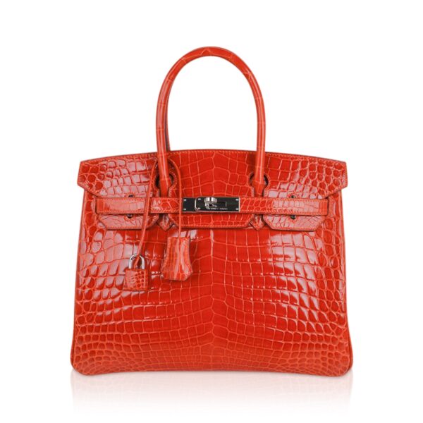 Guaranteed authentic Niloticus Crocodile Hermes Birkin 30 bag featured in Orange.