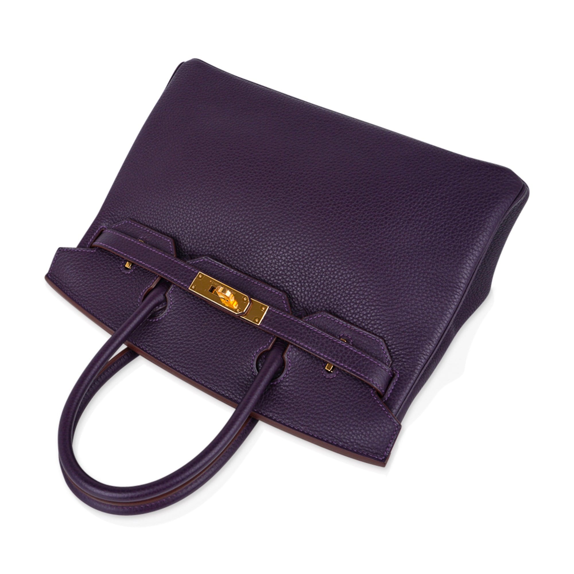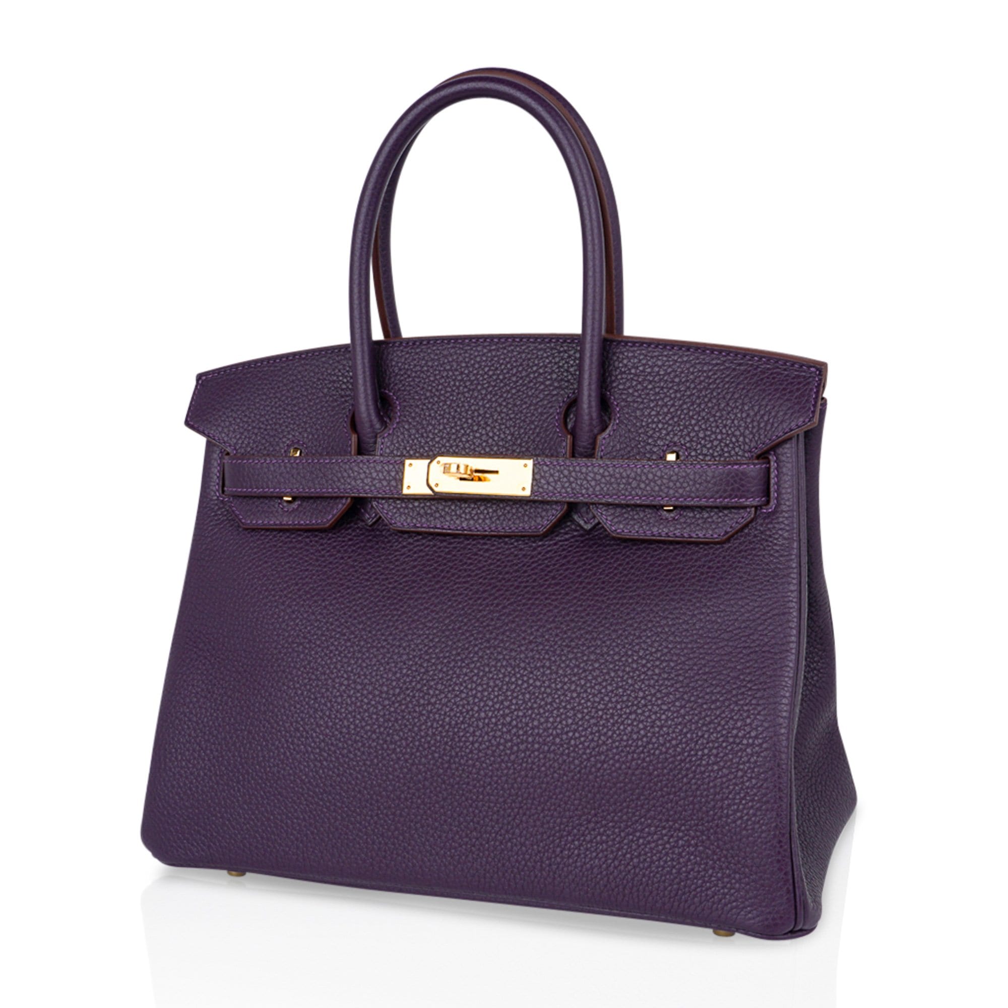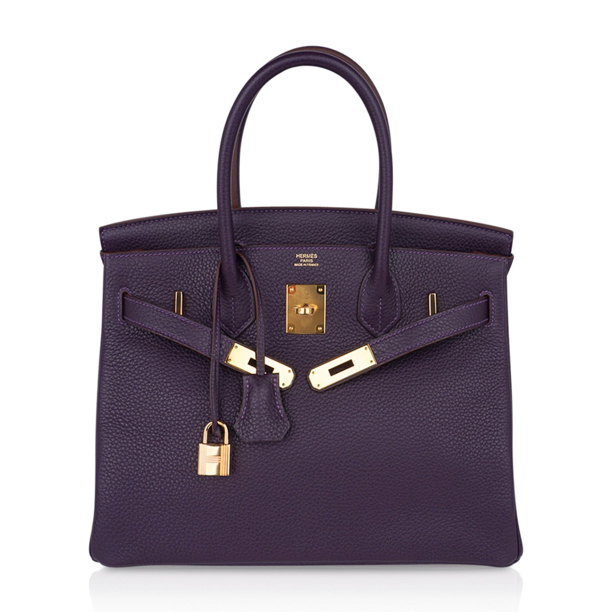 Guaranteed authentic Hermes Birkin 30 bag featured in rich original Raisin.