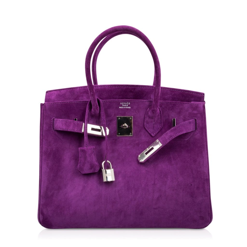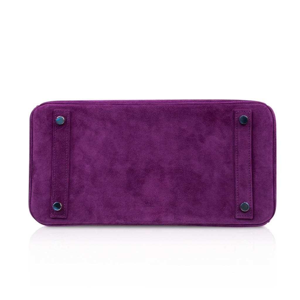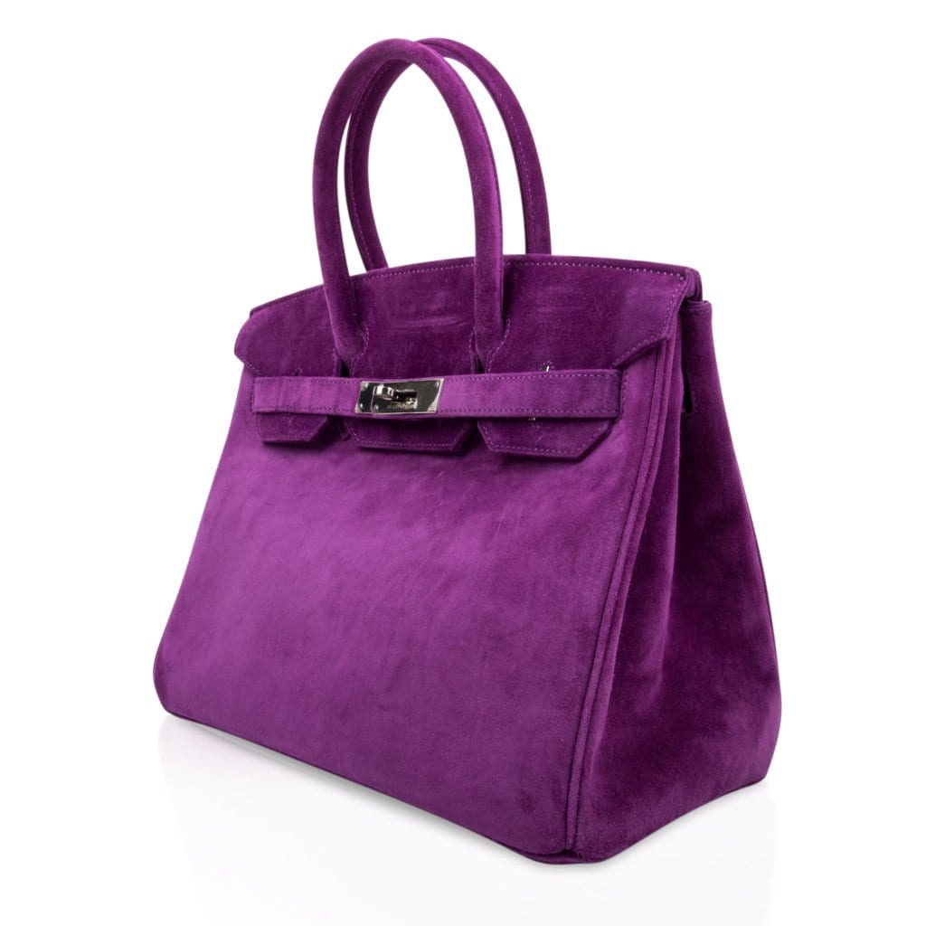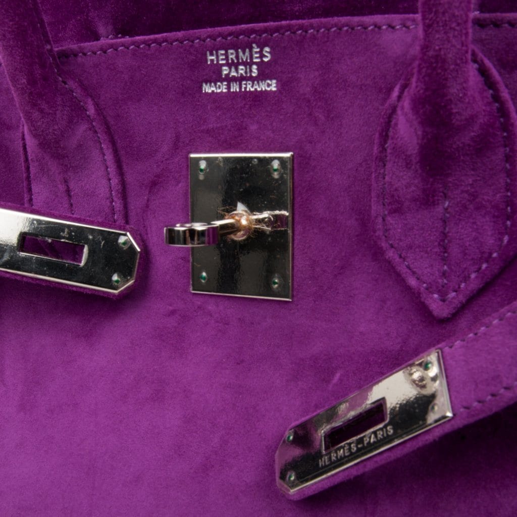 Guaranteed authentic Hermes Birkin 30cm bag features luxurious doblis (suede) in rich Violet.