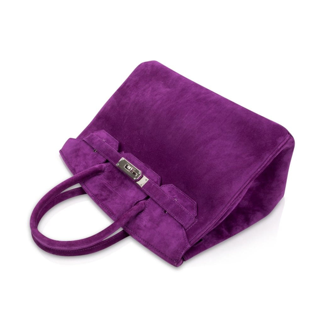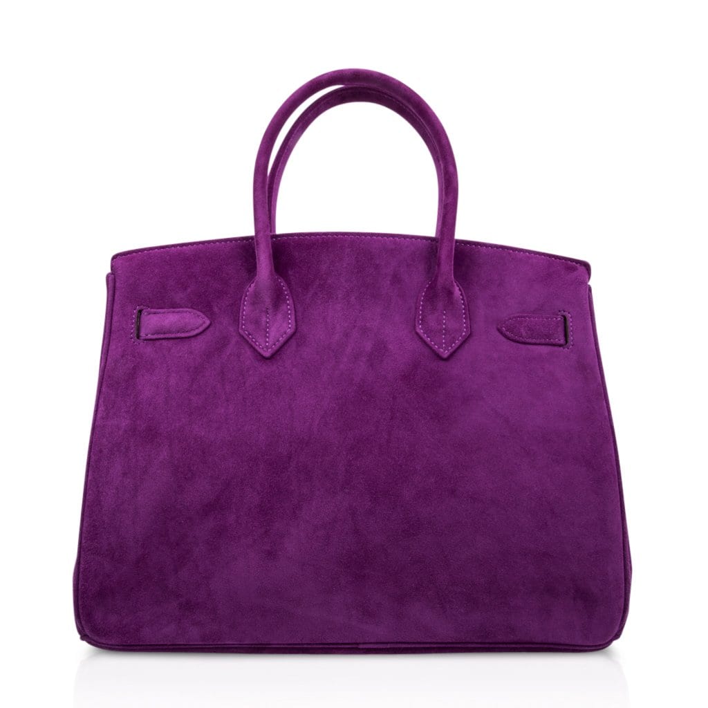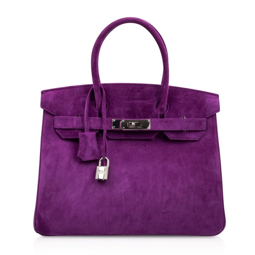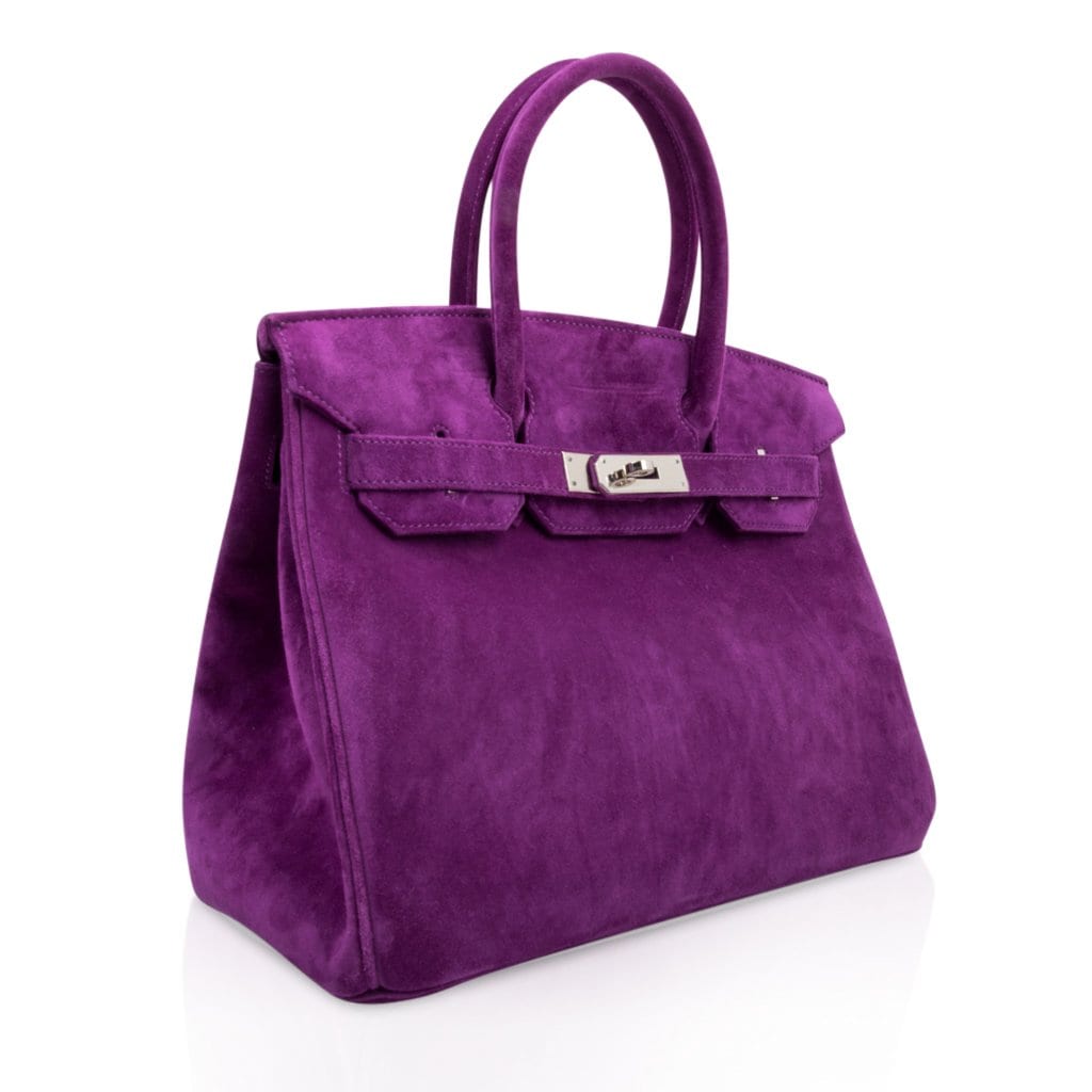 Guaranteed authentic Hermes Birkin 30cm bag features luxurious doblis (suede) in rich Violet.