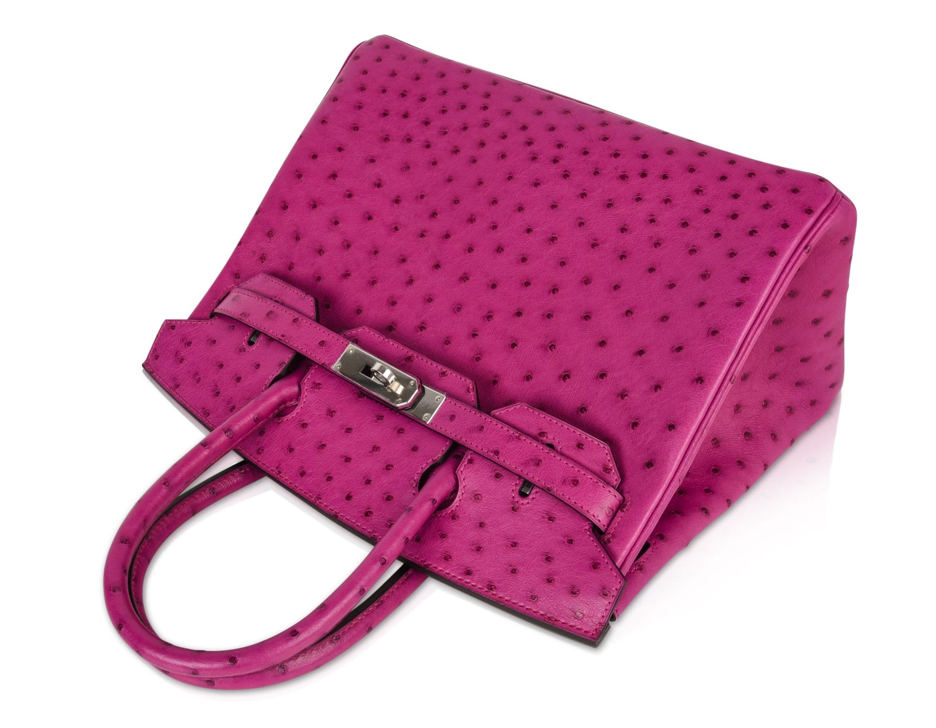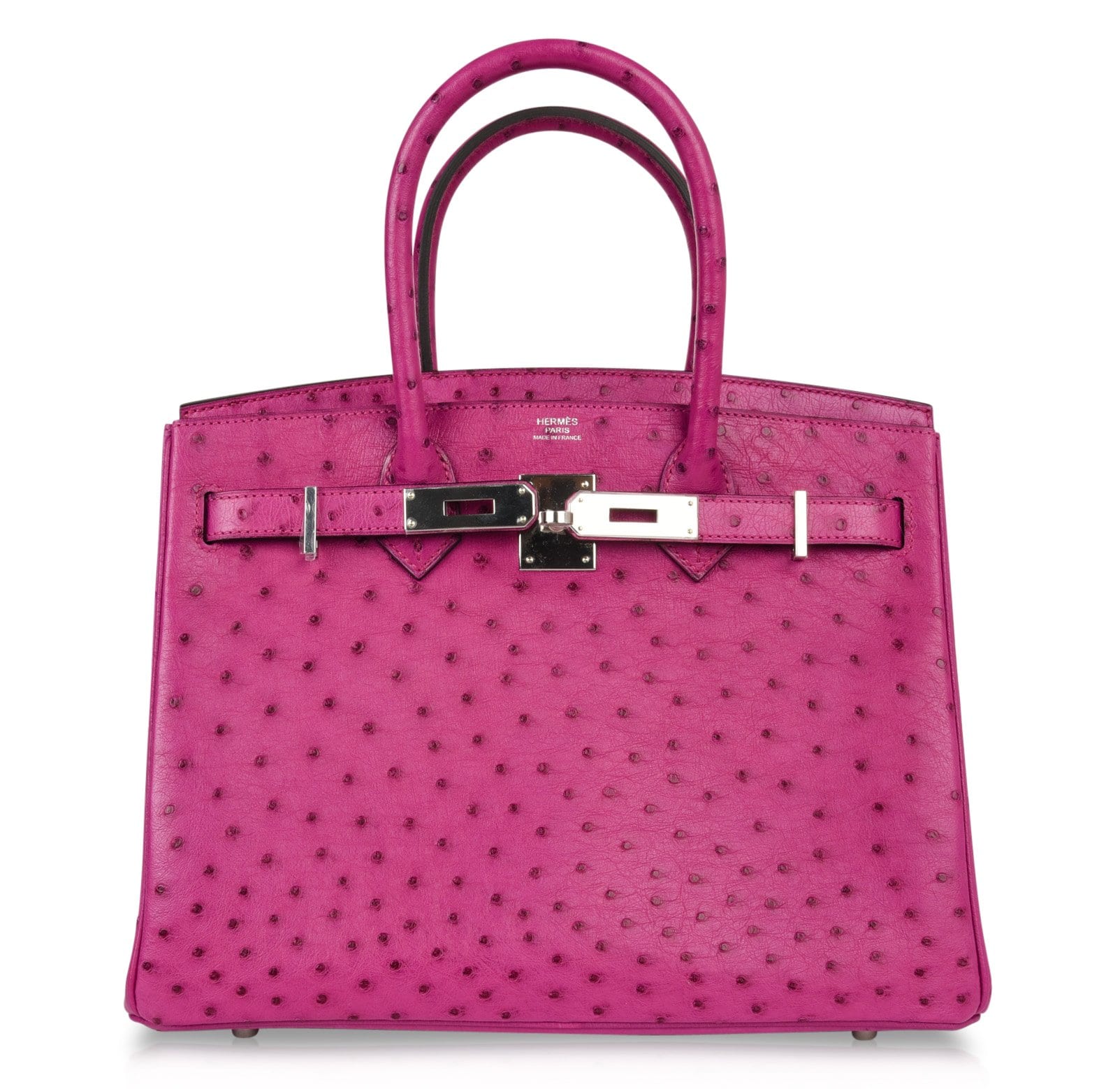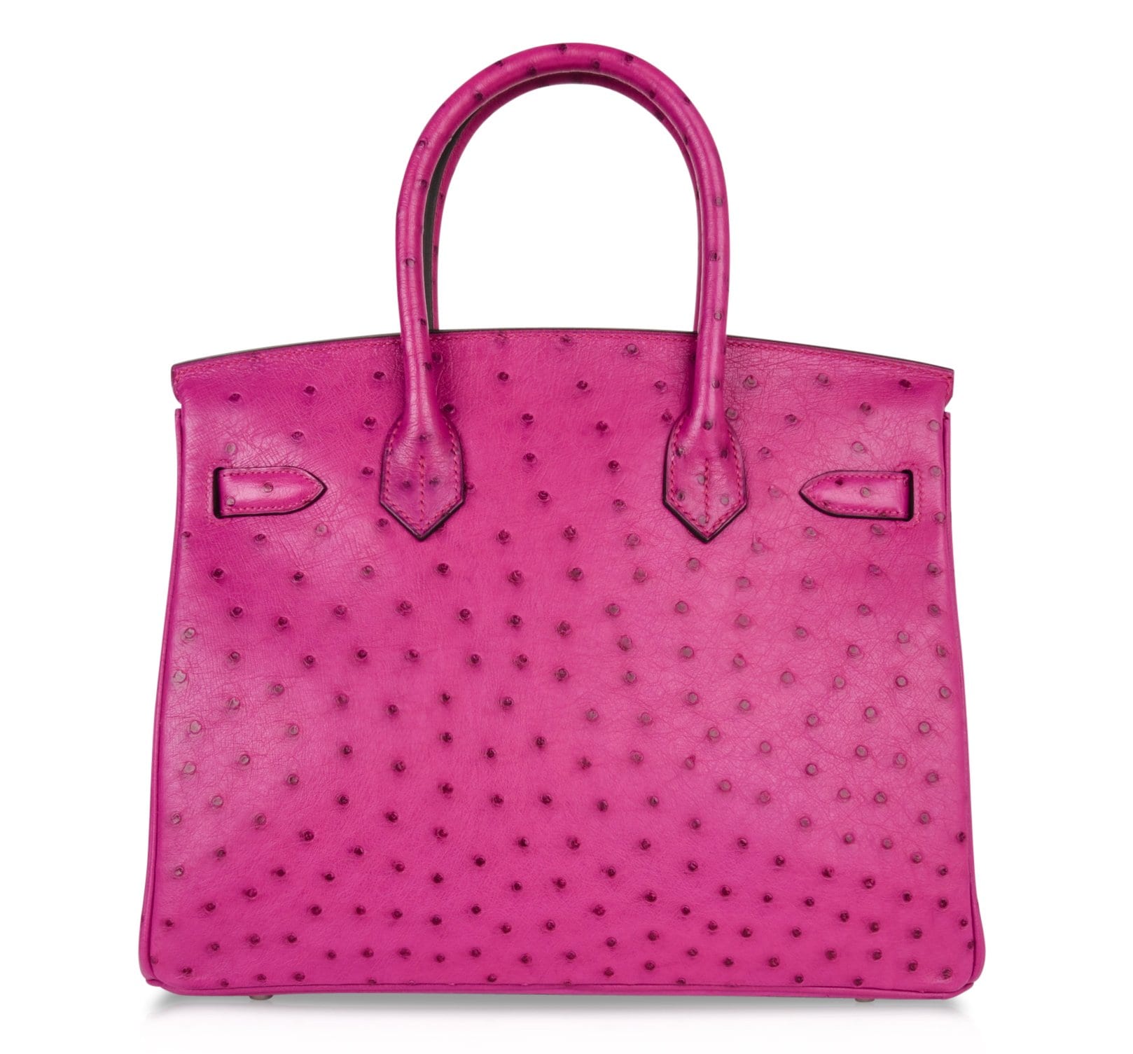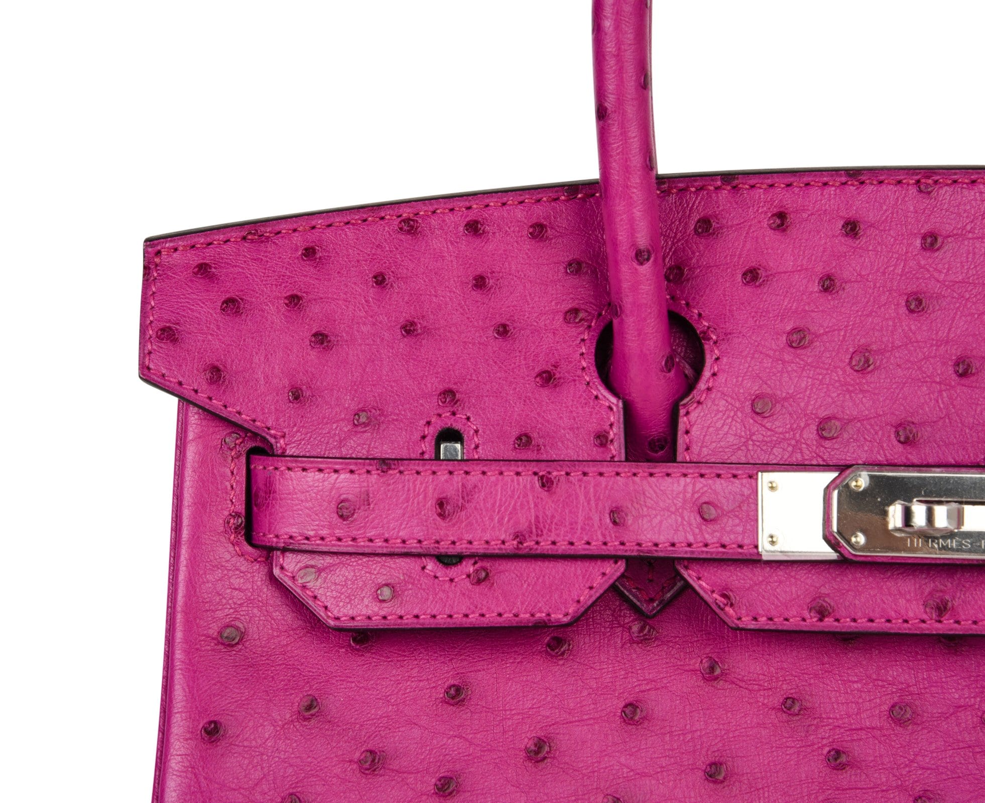 Hermes Birkin 30 Bag Rose Pourpre Pink Ostrich Palladium Hardware