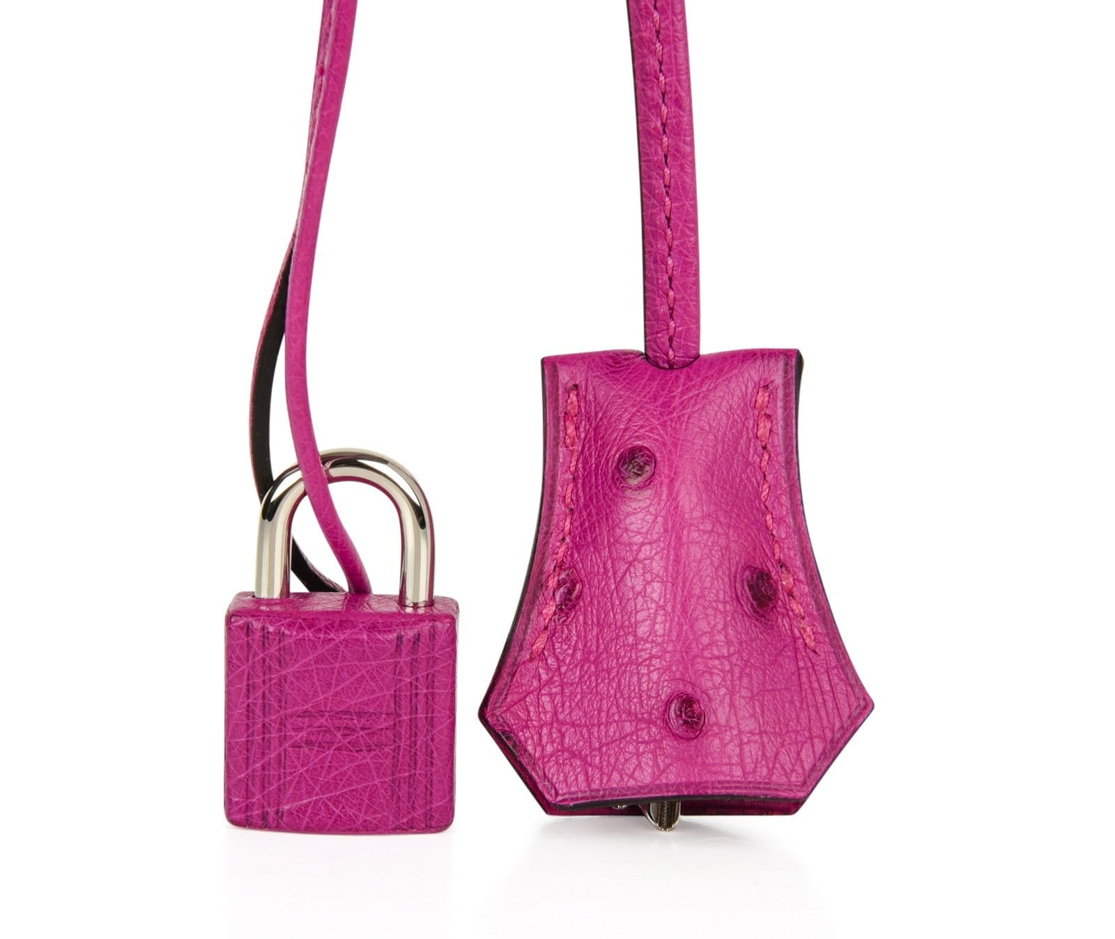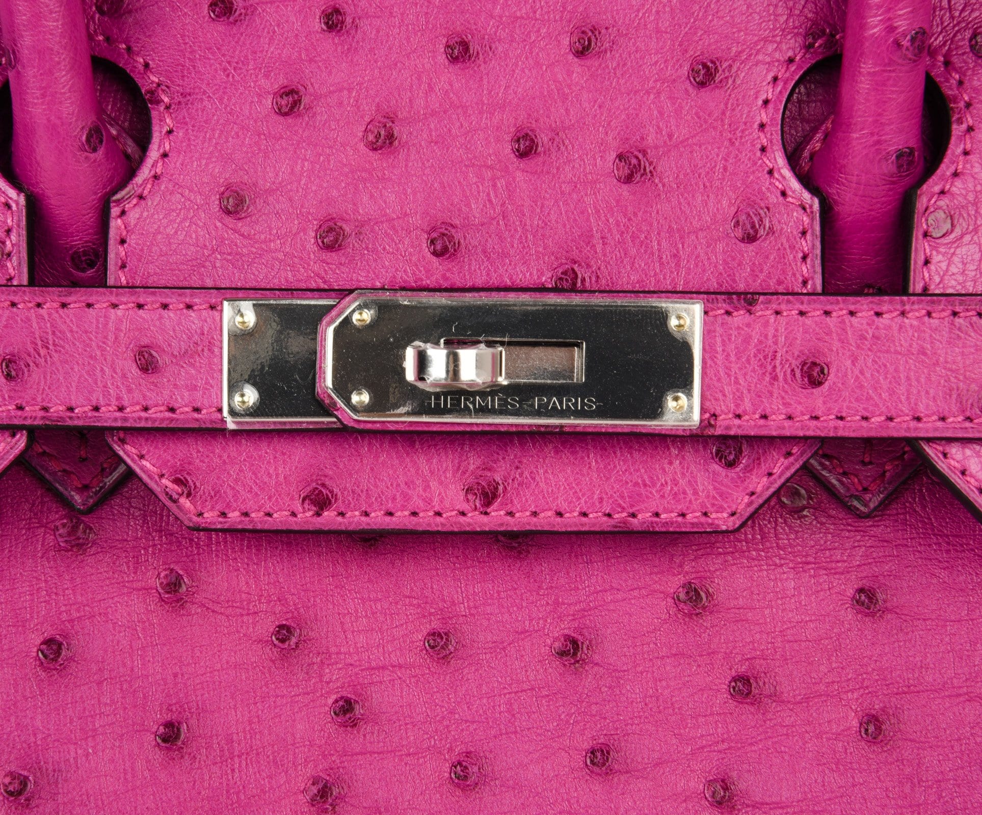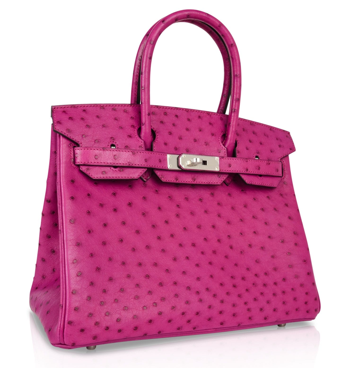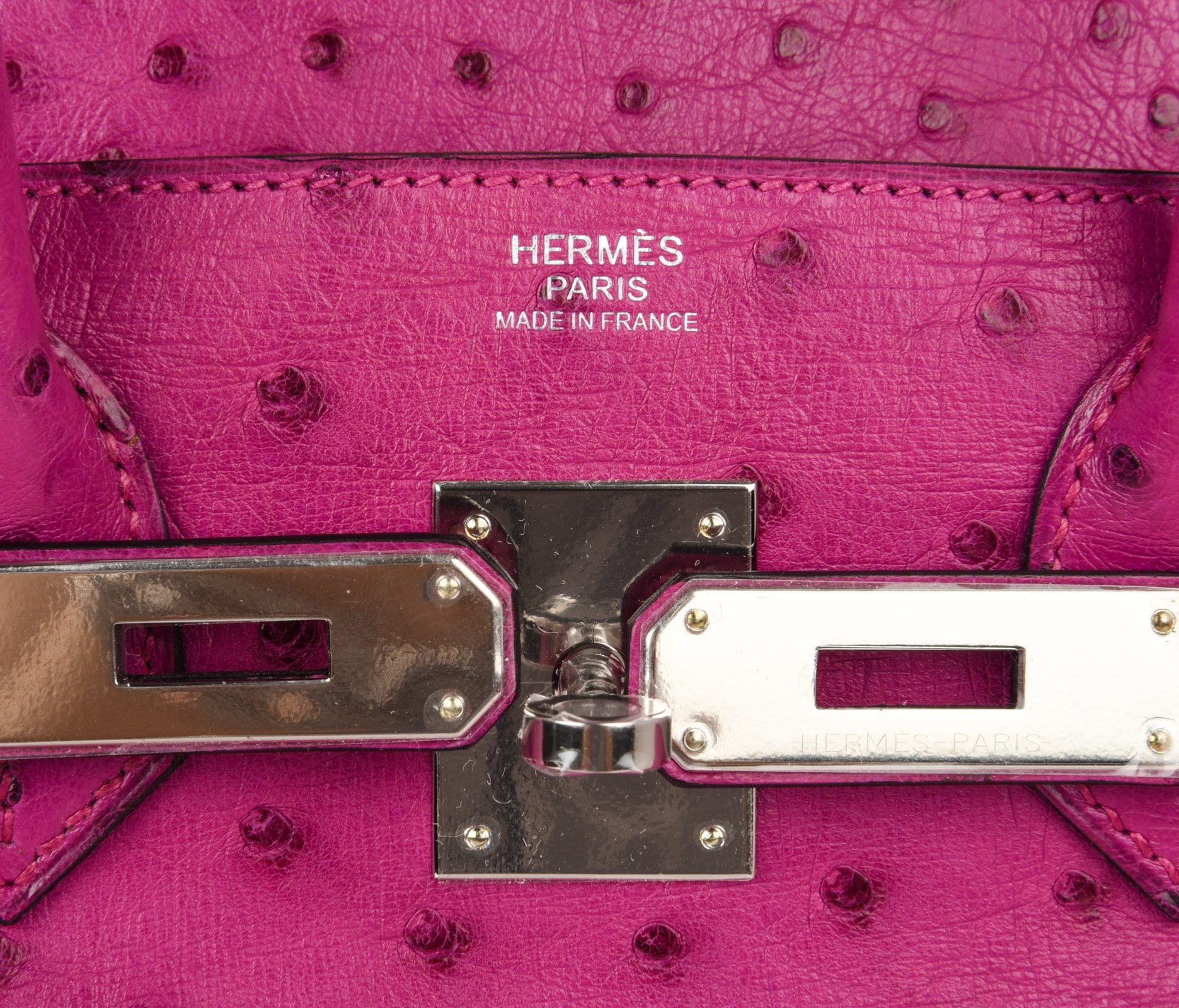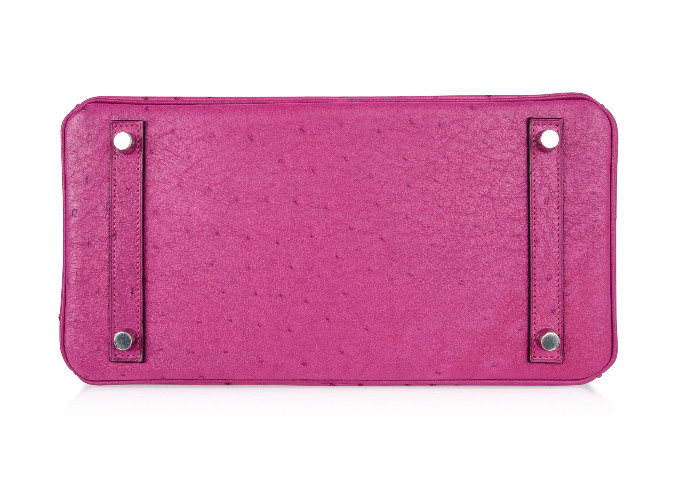 Hermes Birkin 30 Bag Rose Pourpre Pink Ostrich Palladium Hardware