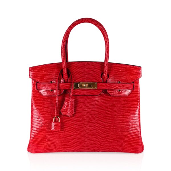 Guaranteed authentic Rouge Exotique Lizard featured in a limited edition Hermes Birkin 30 bag.