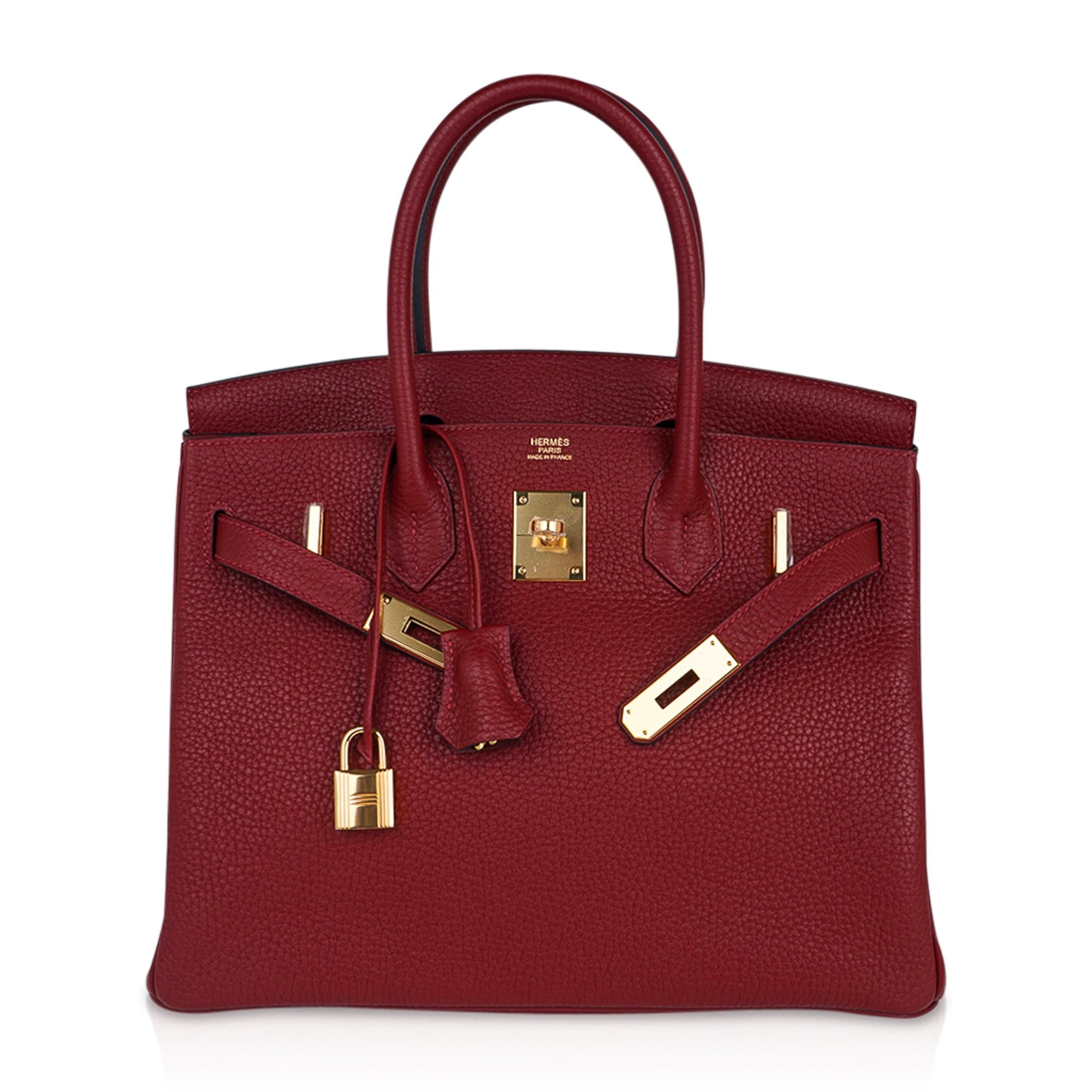 Guaranteed authentic Hermes Birkin 30 bag featured in rich Rouge H.