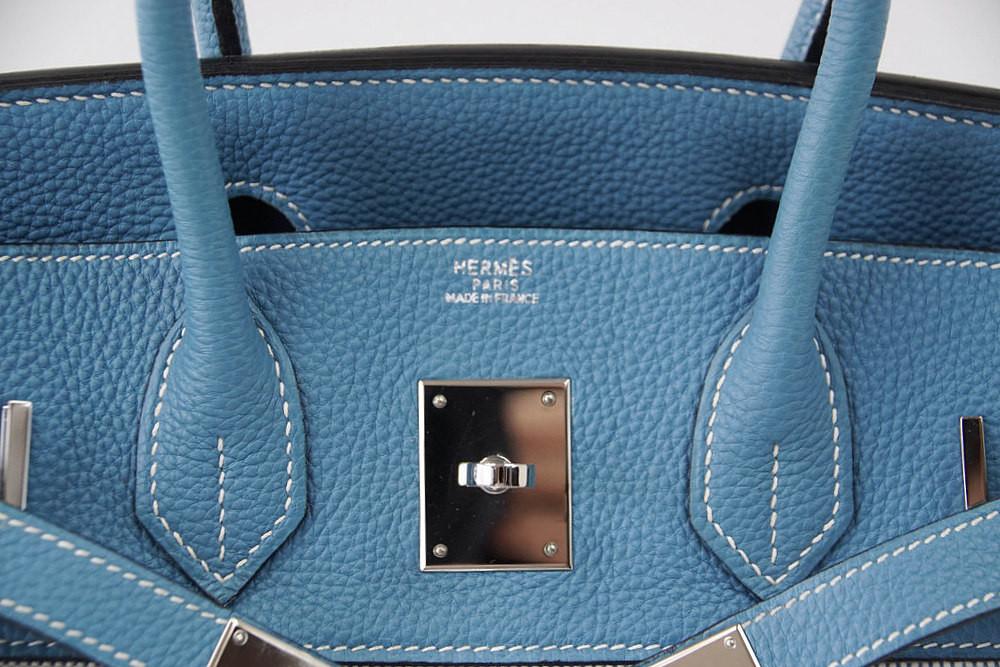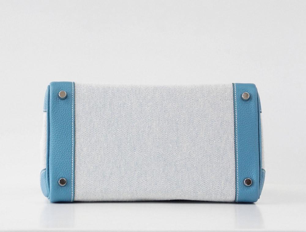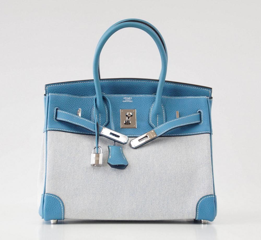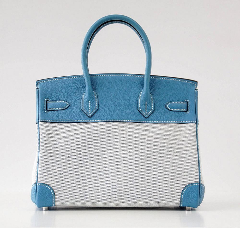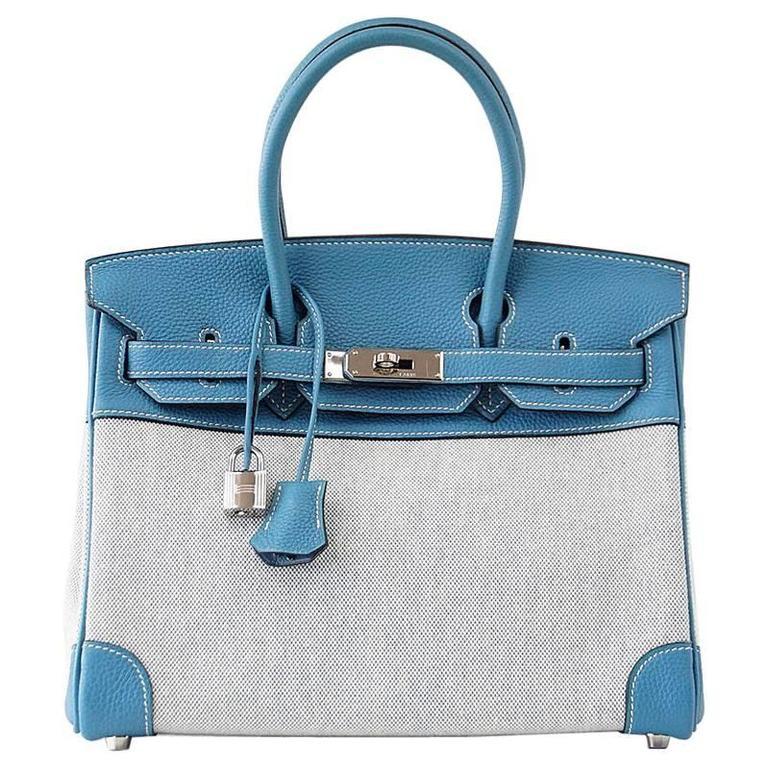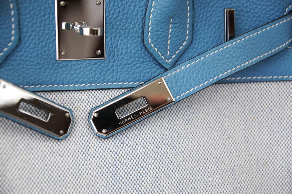 Guaranteed authentic rare Toile Hermes Birkin 30 bag in coveted Blue Jean Togo and Toile.