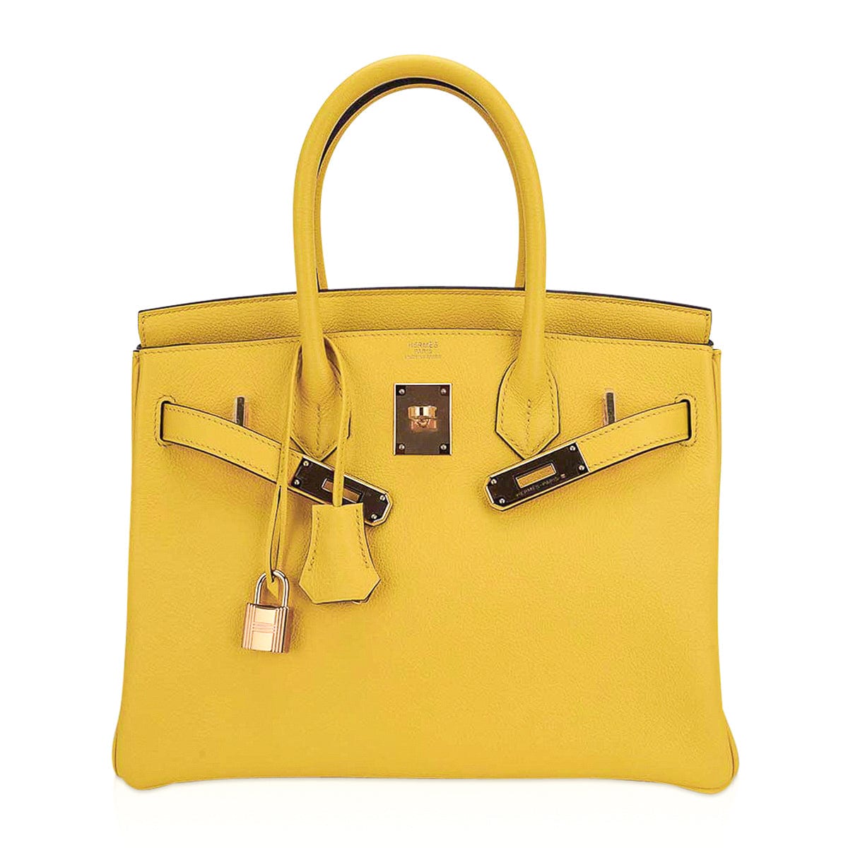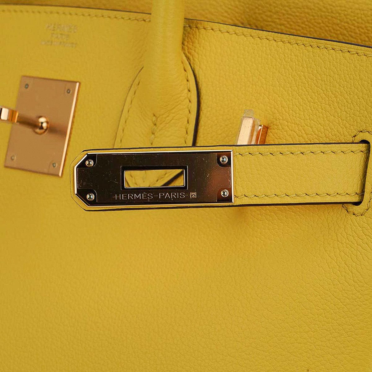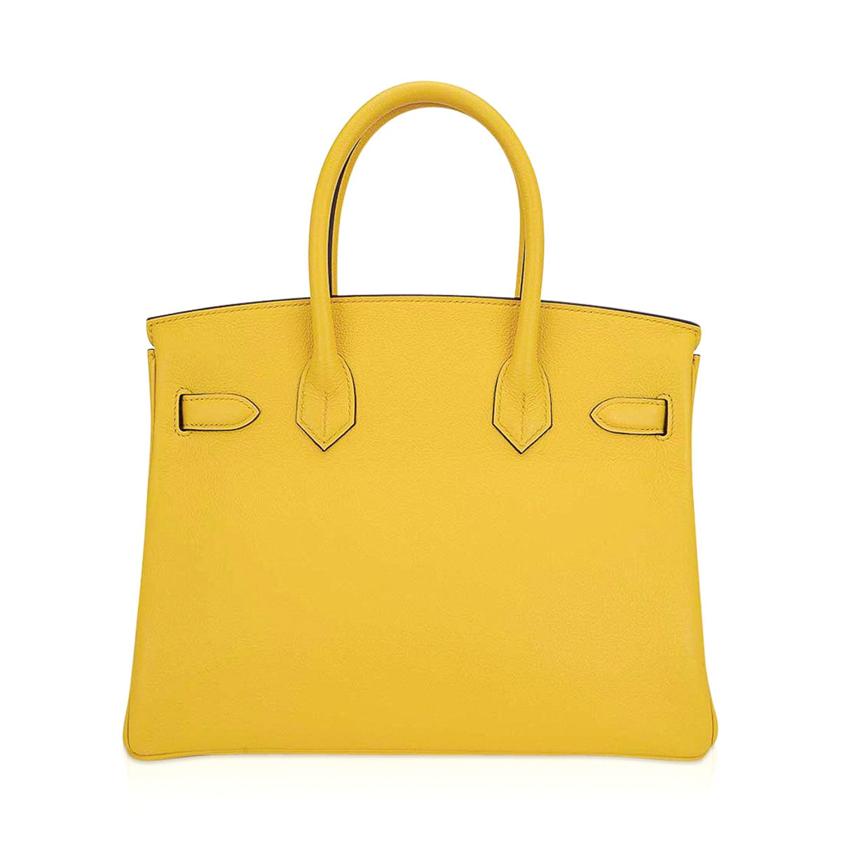 Hermes Birkin 30 bag featured in sunny Jaune de Naples.