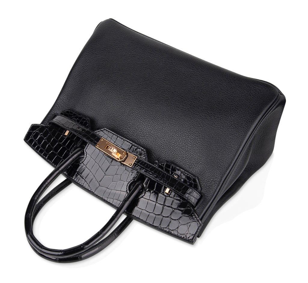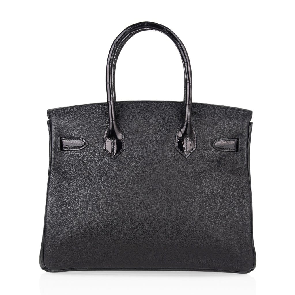 Guaranteed authentic limited edition Hermes Birkin 30 Touch bag featured in Black Crocodile and Black leather.