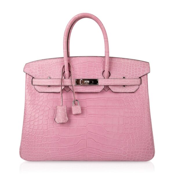 Guaranteed authentic Hermes Birkin 35 bag featured in the rare limited edition 5P Pink matte alligator.
