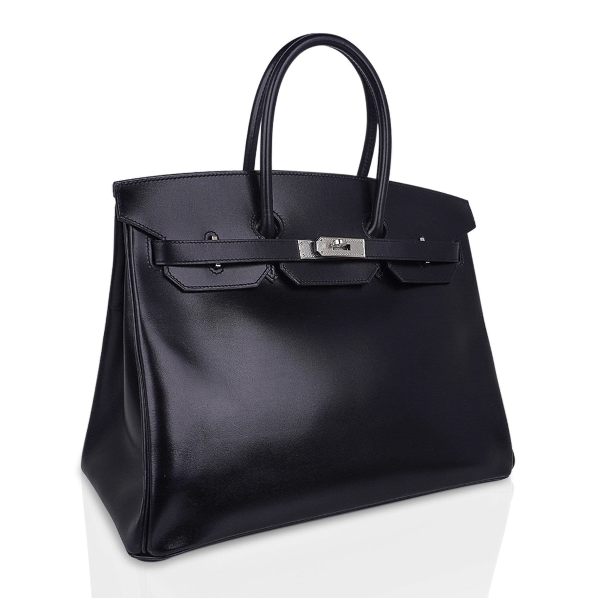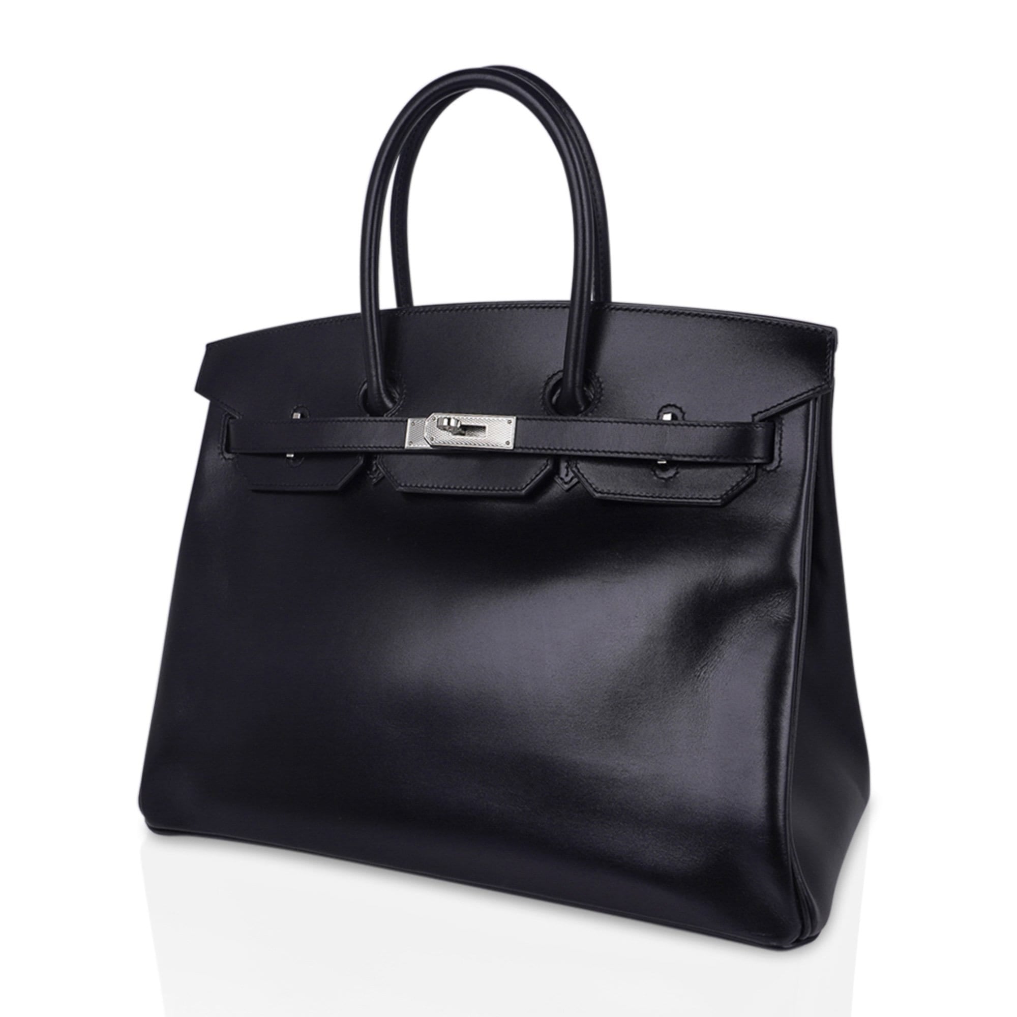 Guaranteed authentic Hermes Birkin 35 bag featured in Black rare Box leather.