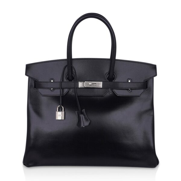 Guaranteed authentic Hermes Birkin 35 bag featured in Black rare Box leather.