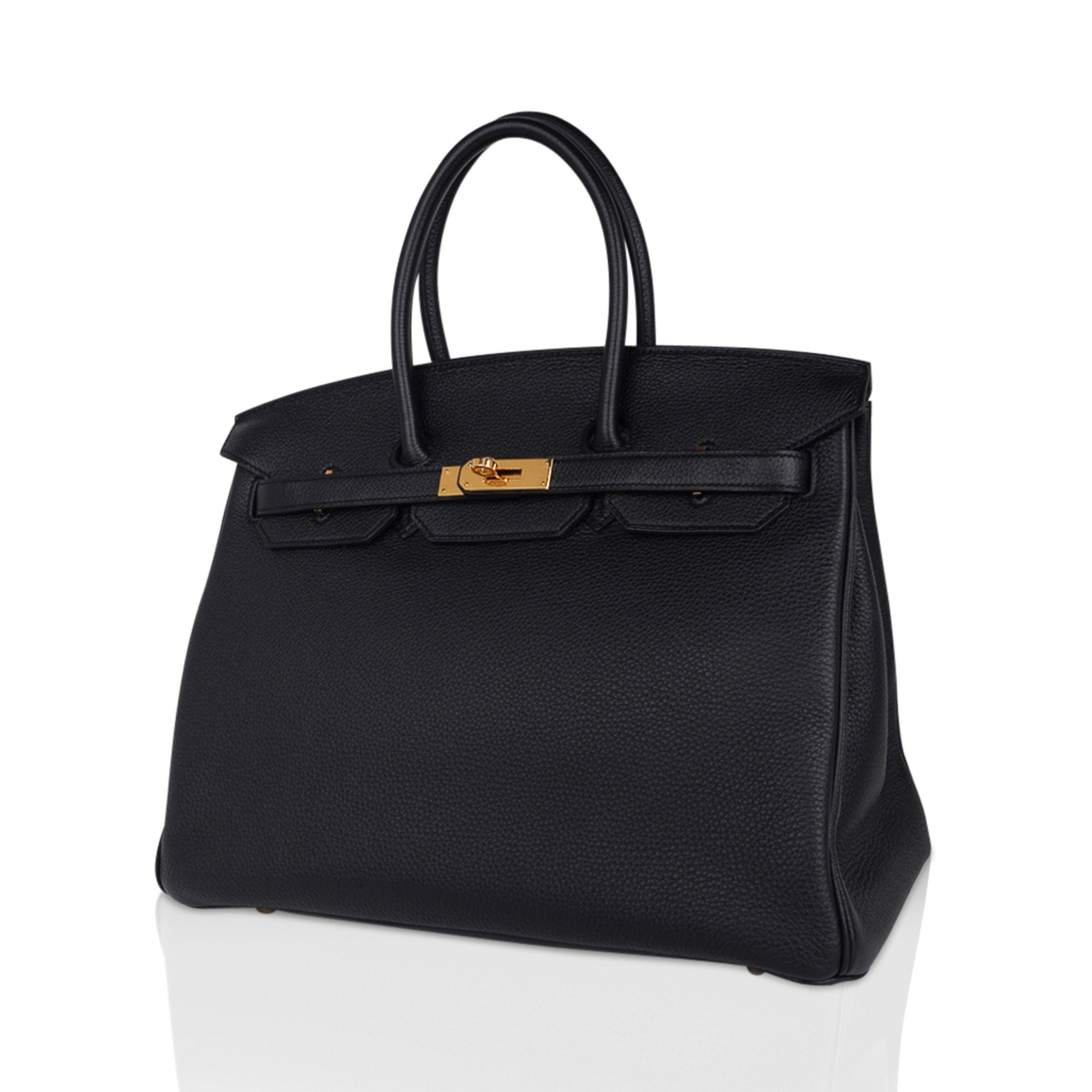 Guaranteed authentic sleek classic Black Hermes Birkin 35 bag.