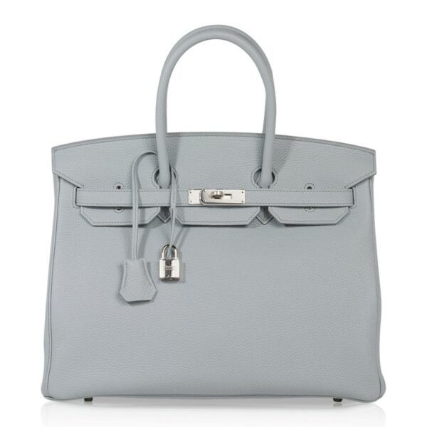 Guaranteed authentic Hermes Birkin 35 bag featured in ( Blue ) Bleu Pale Togo leather.