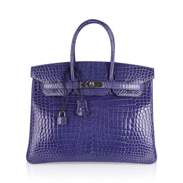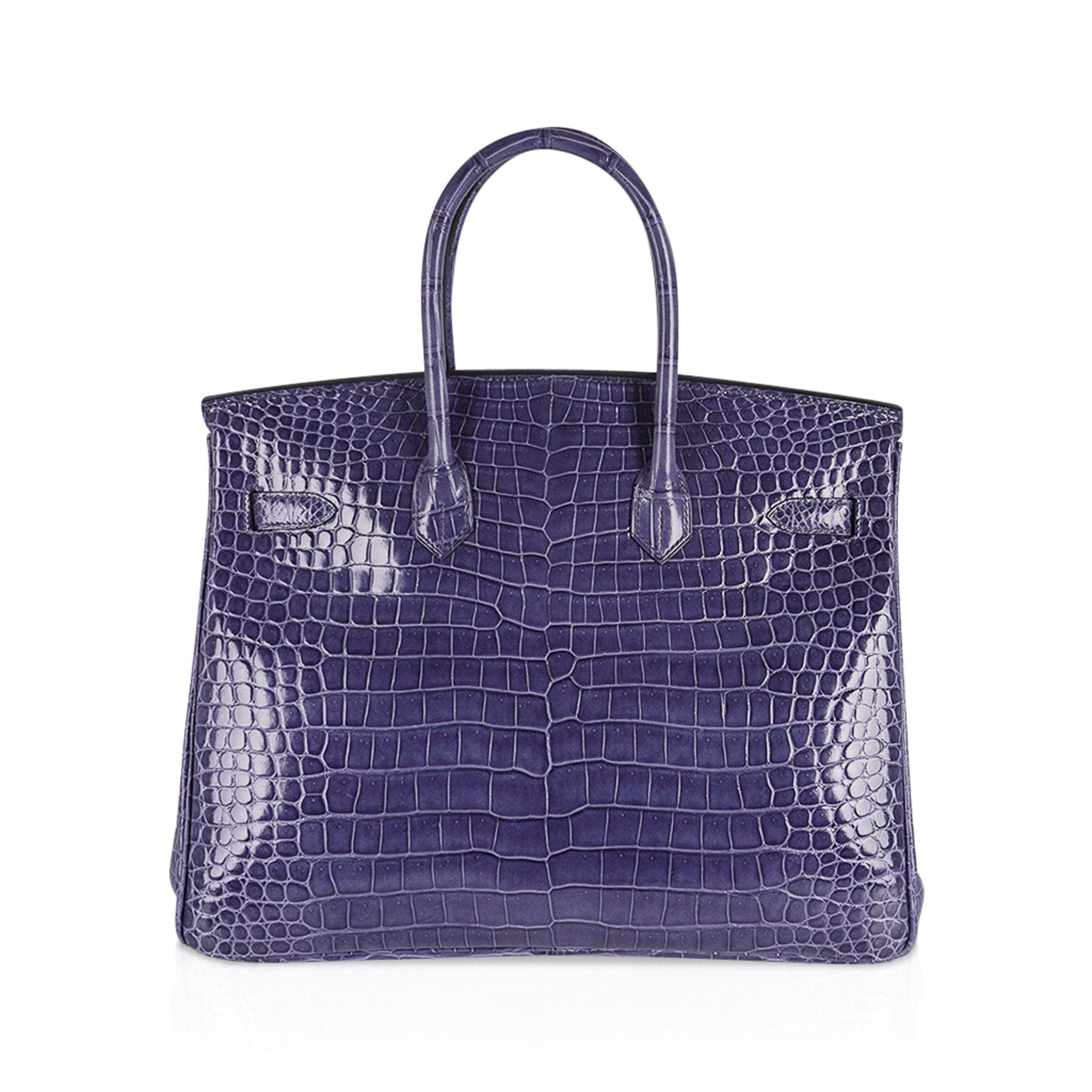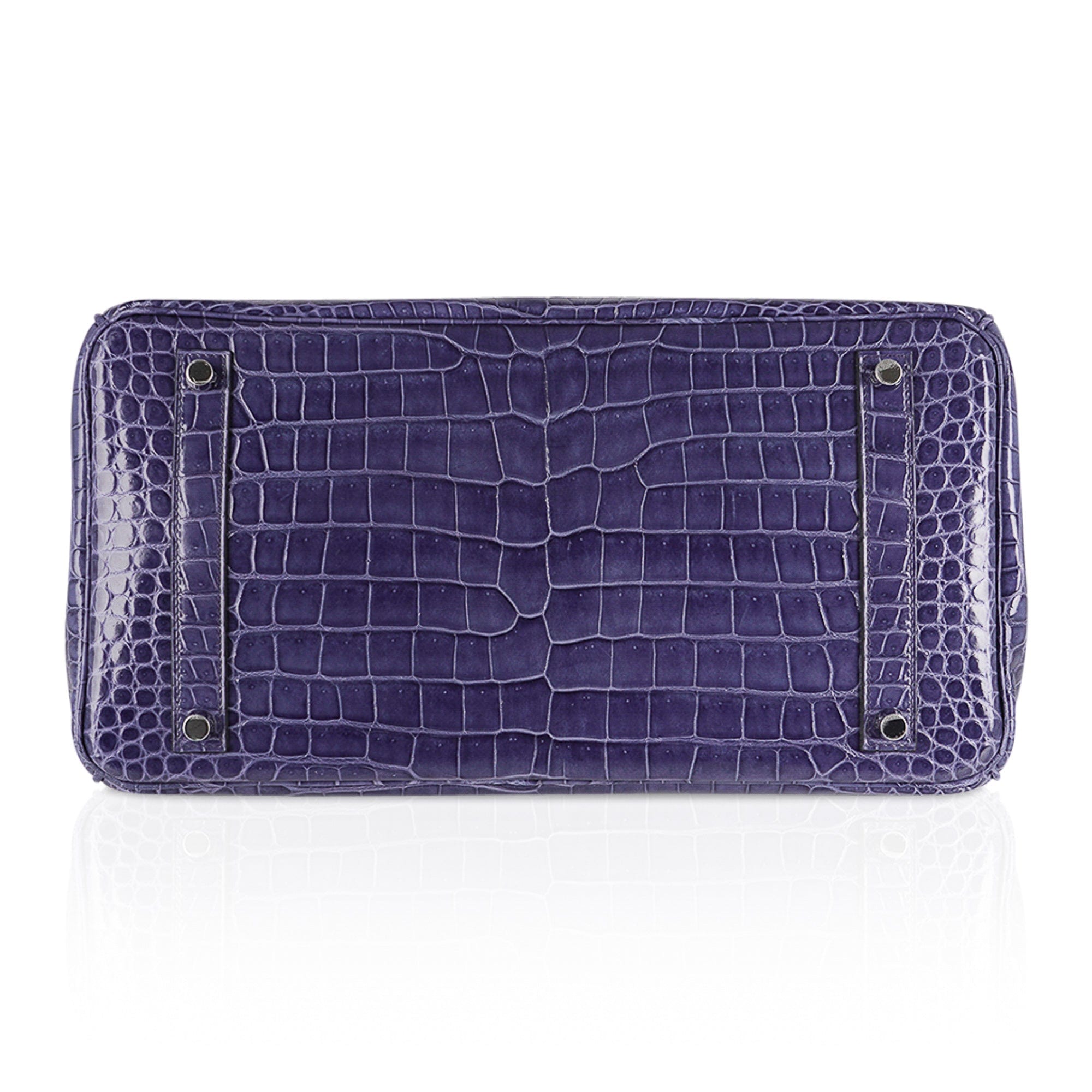 This Hermes crocodile Birkin bag blue has a lavender undertone and changes in different light. Utterly extraordinary, this beautiful rare bag is a superb find..
